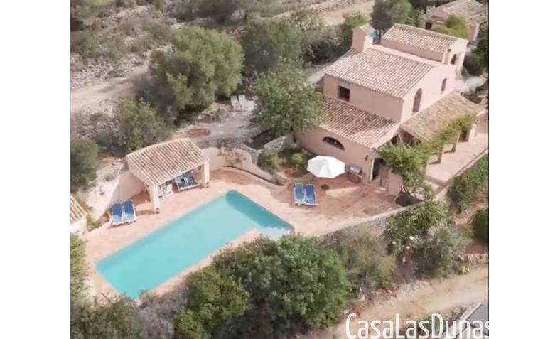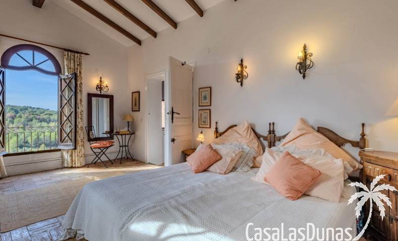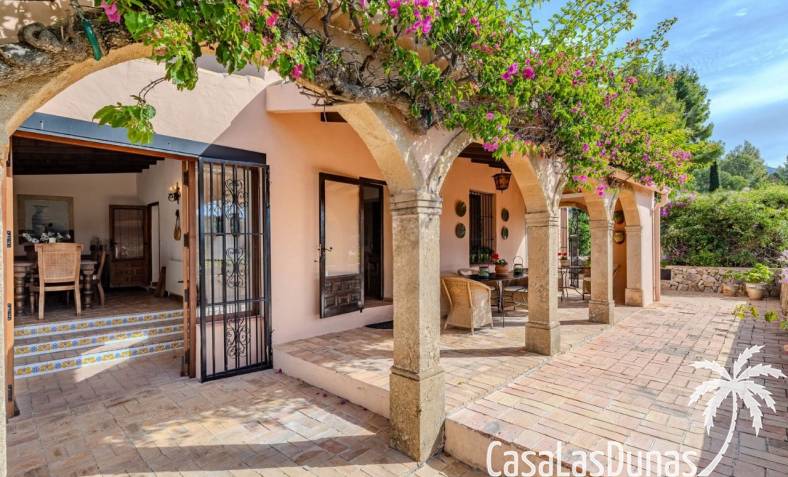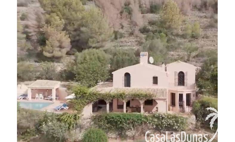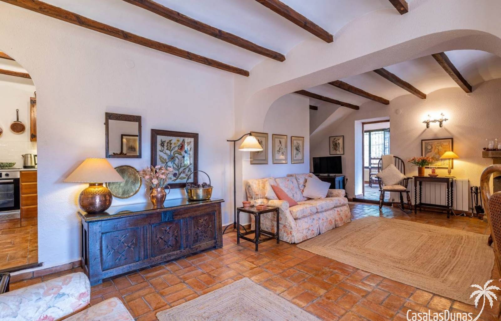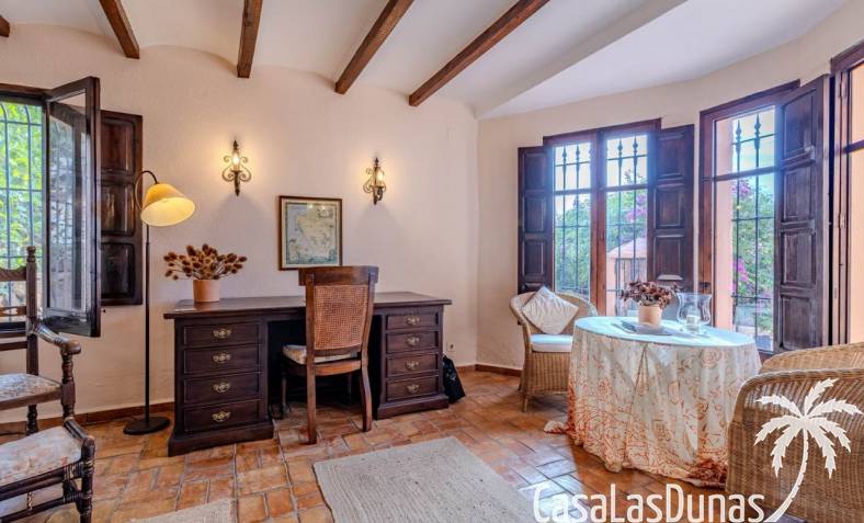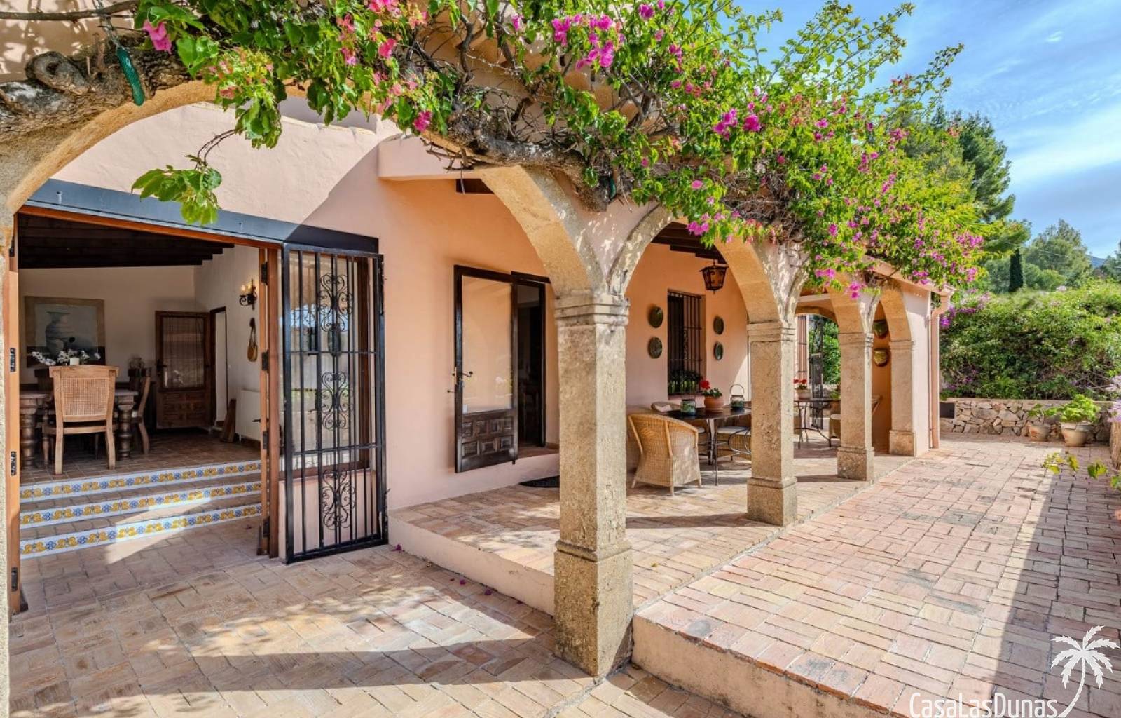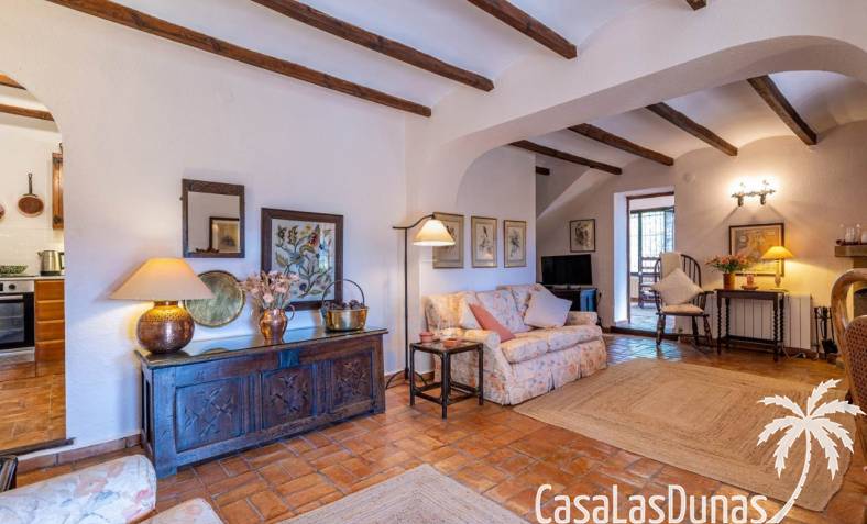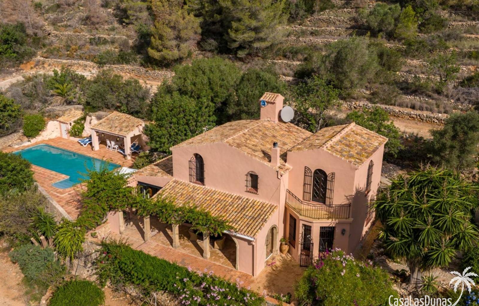 Esta encantadora y característica finca se encuentra en el Parque Natural del Montgó, a poca distancia de Jesús Pobre. Esta casa de campo tradicional irradia elegancia rústica con baldosas de terracota hechas a mano y techos con vigas auténticas. A la llegada, un camino privado conduce más allá de un encantador pozo de agua hasta la aislada terraza naya de seis arcos. Este hermoso espacio, totalmente orientado al sur, ofrece un lugar sombreado en verano y un lugar soleado y acogedor en invierno, perfecto para disfrutar de las hermosas vistas al campo. El cálido interior de la casa comienza en el acogedor salón con una chimenea tradicional, al que se accede fácilmente a través de la naya. Adyacente hay una cocina totalmente equipada con un comedor separado que se conecta perfectamente con las terrazas, ideal para cenar al aire libre y entretenerse. También en la planta baja hay una habitación con ducha y una amplia y luminosa estancia que puede servir como dormitorio, despacho o segundo salón. Una llamativa escalera nos lleva al primer piso, donde se encuentra el espacioso dormitorio principal. Este lujoso refugio cuenta con altos techos abovedados, grandes ventanas personalizadas y un balcón francés. El conjunto es luminoso y ofrece vistas panorámicas al campo. El baño principal tiene dos lavabos, bañera y ducha. Dos dormitorios adicionales comparten un baño familiar con una elegante ducha. Todos los dormitorios han sido equipados recientemente con aire acondicionado frío-calor. El exterior de la propiedad es igualmente impresionante, con una gran piscina de 12x5m, rodeada de una amplia terraza, y una terraza cubierta con vistas a la piscina.