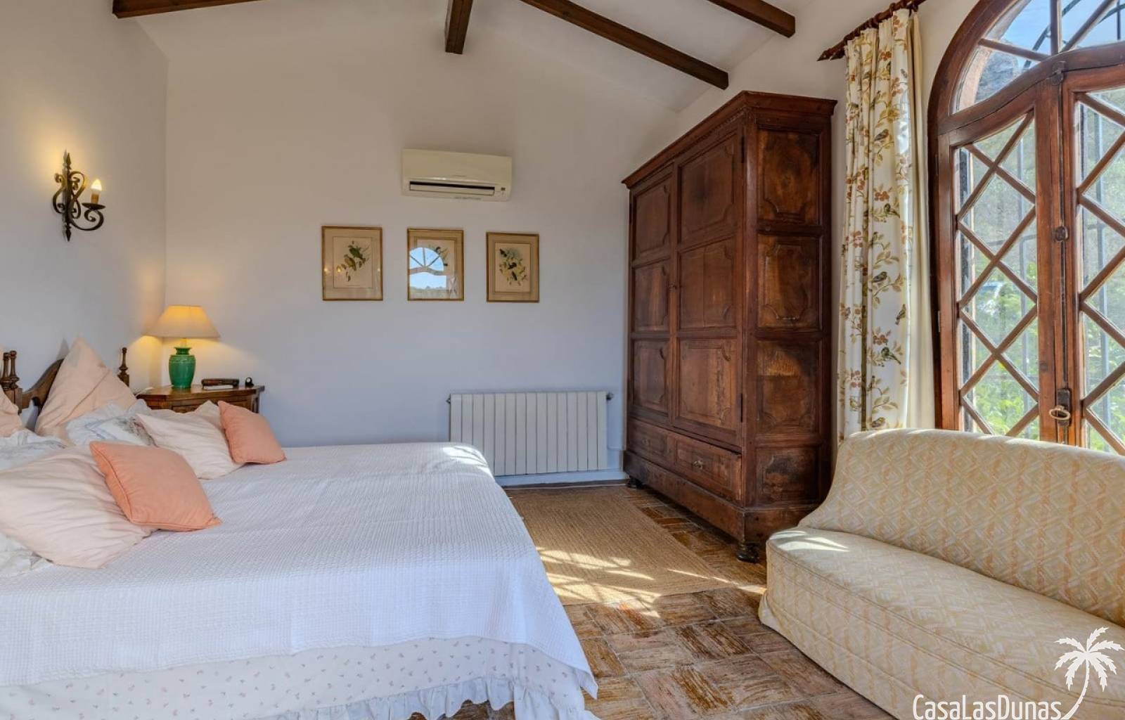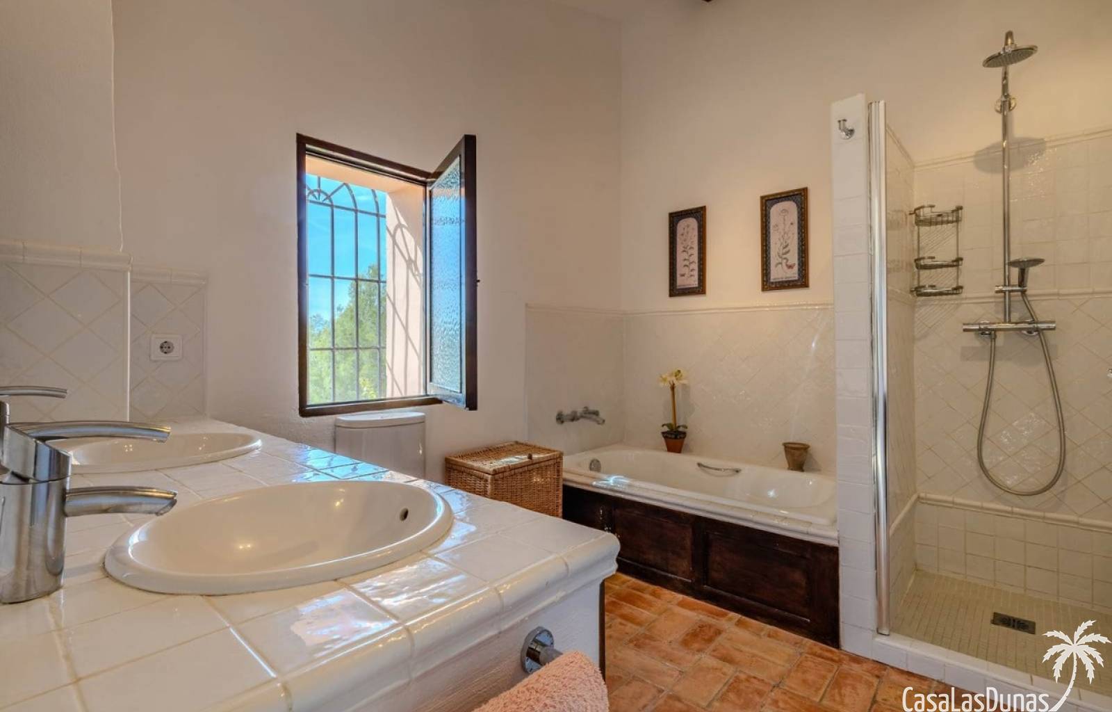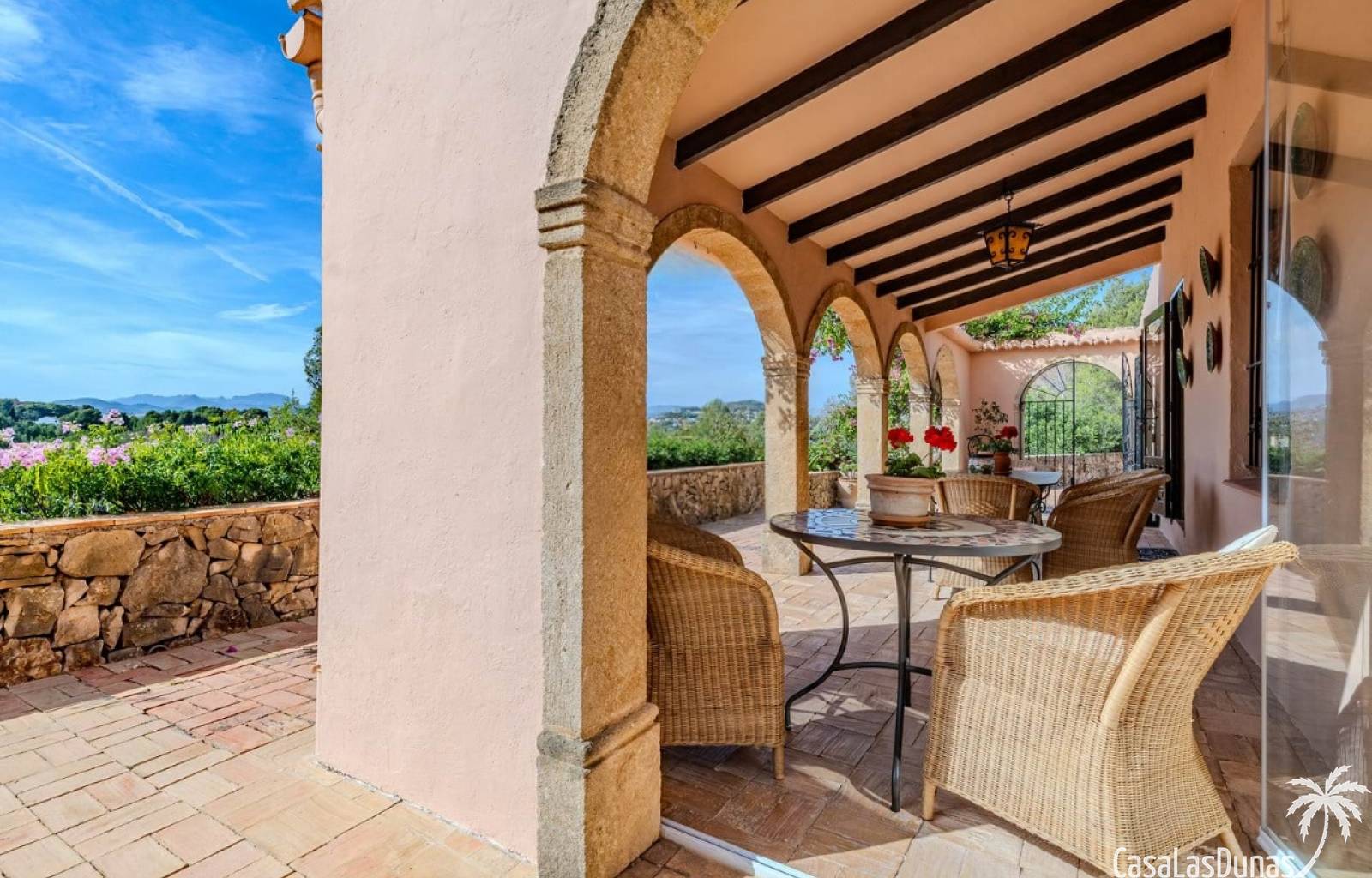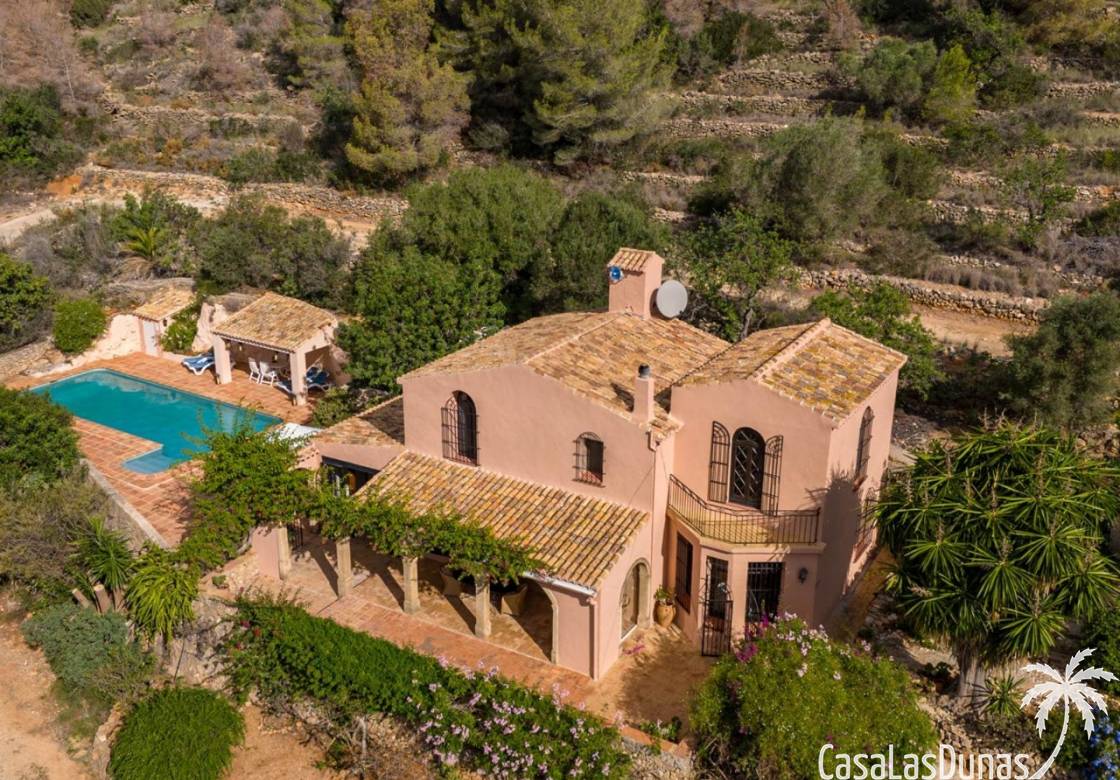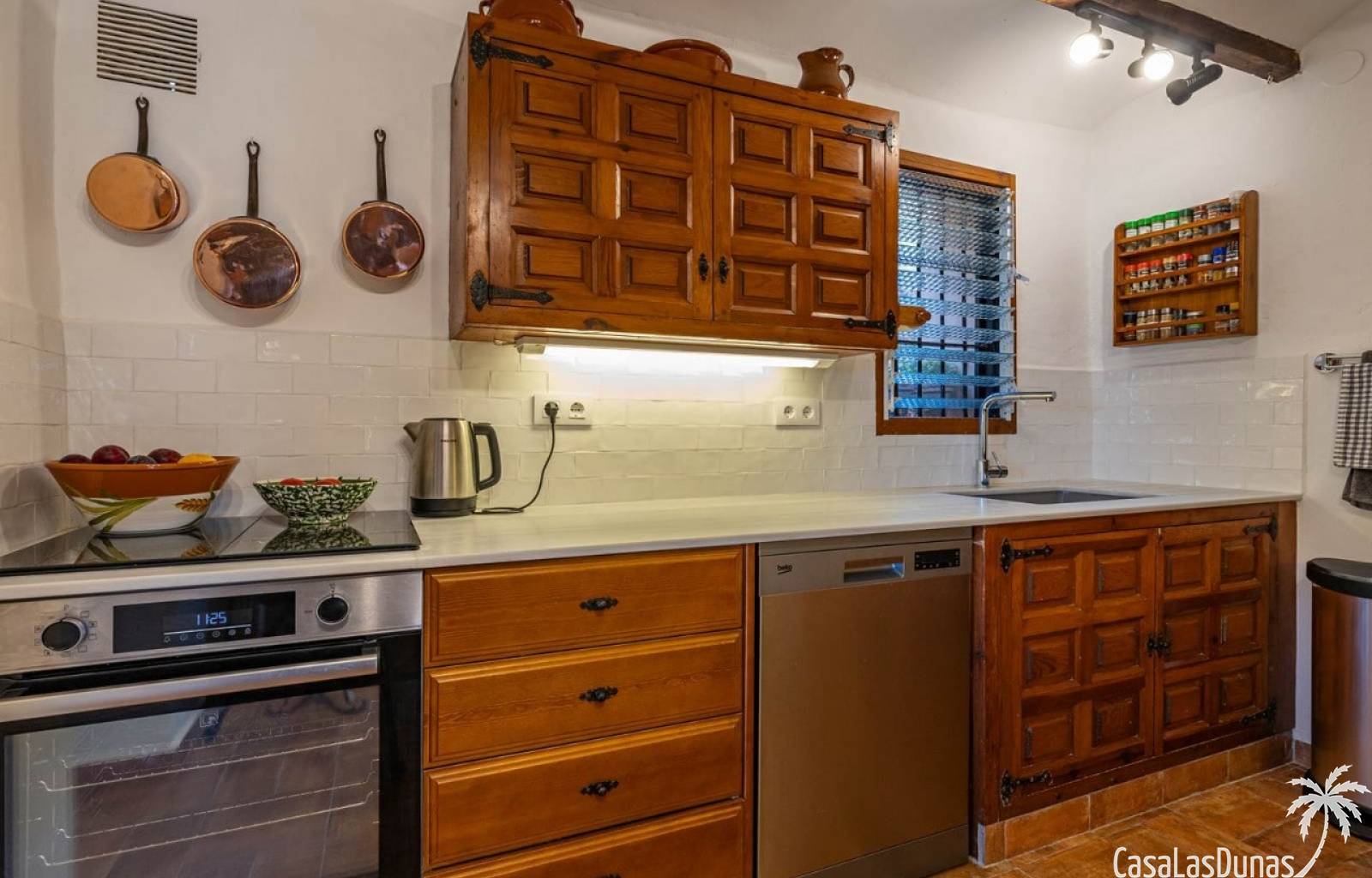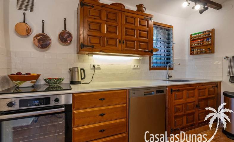 Esta encantadora y característica finca se encuentra en el Parque Natural del Montgó, a poca distancia de Jesús Pobre. Esta casa de campo tradicional irradia elegancia rústica con baldosas de terracota hechas a mano y techos con vigas auténticas. A la llegada, un camino privado conduce más allá de un encantador pozo de agua hasta la aislada terraza naya de seis arcos. Este hermoso espacio, totalmente orientado al sur, ofrece un lugar sombreado en verano y un lugar soleado y acogedor en invierno, perfecto para disfrutar de las hermosas vistas al campo. El cálido interior de la casa comienza en el acogedor salón con una chimenea tradicional, al que se accede fácilmente a través de la naya. Adyacente hay una cocina totalmente equipada con un comedor separado que se conecta perfectamente con las terrazas, ideal para cenar al aire libre y entretenerse. También en la planta baja hay una habitación con ducha y una amplia y luminosa estancia que puede servir como dormitorio, despacho o segundo salón. Una llamativa escalera nos lleva al primer piso, donde se encuentra el espacioso dormitorio principal. Este lujoso refugio cuenta con altos techos abovedados, grandes ventanas personalizadas y un balcón francés. El conjunto es luminoso y ofrece vistas panorámicas al campo. El baño principal tiene dos lavabos, bañera y ducha. Dos dormitorios adicionales comparten un baño familiar con una elegante ducha. Todos los dormitorios han sido equipados recientemente con aire acondicionado frío-calor. El exterior de la propiedad es igualmente impresionante, con una gran piscina de 12x5m, rodeada de una amplia terraza, y una terraza cubierta con vistas a la piscina.