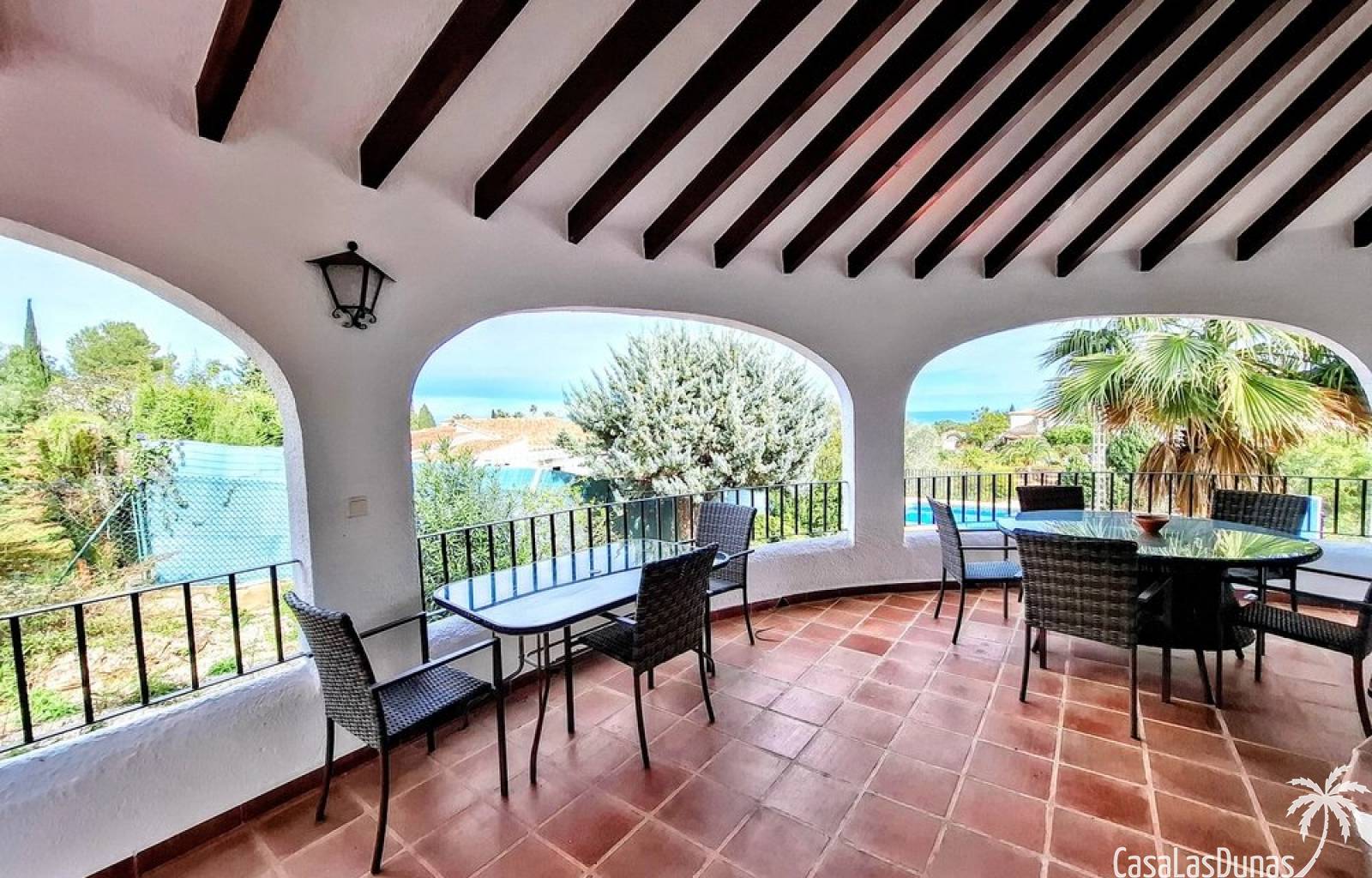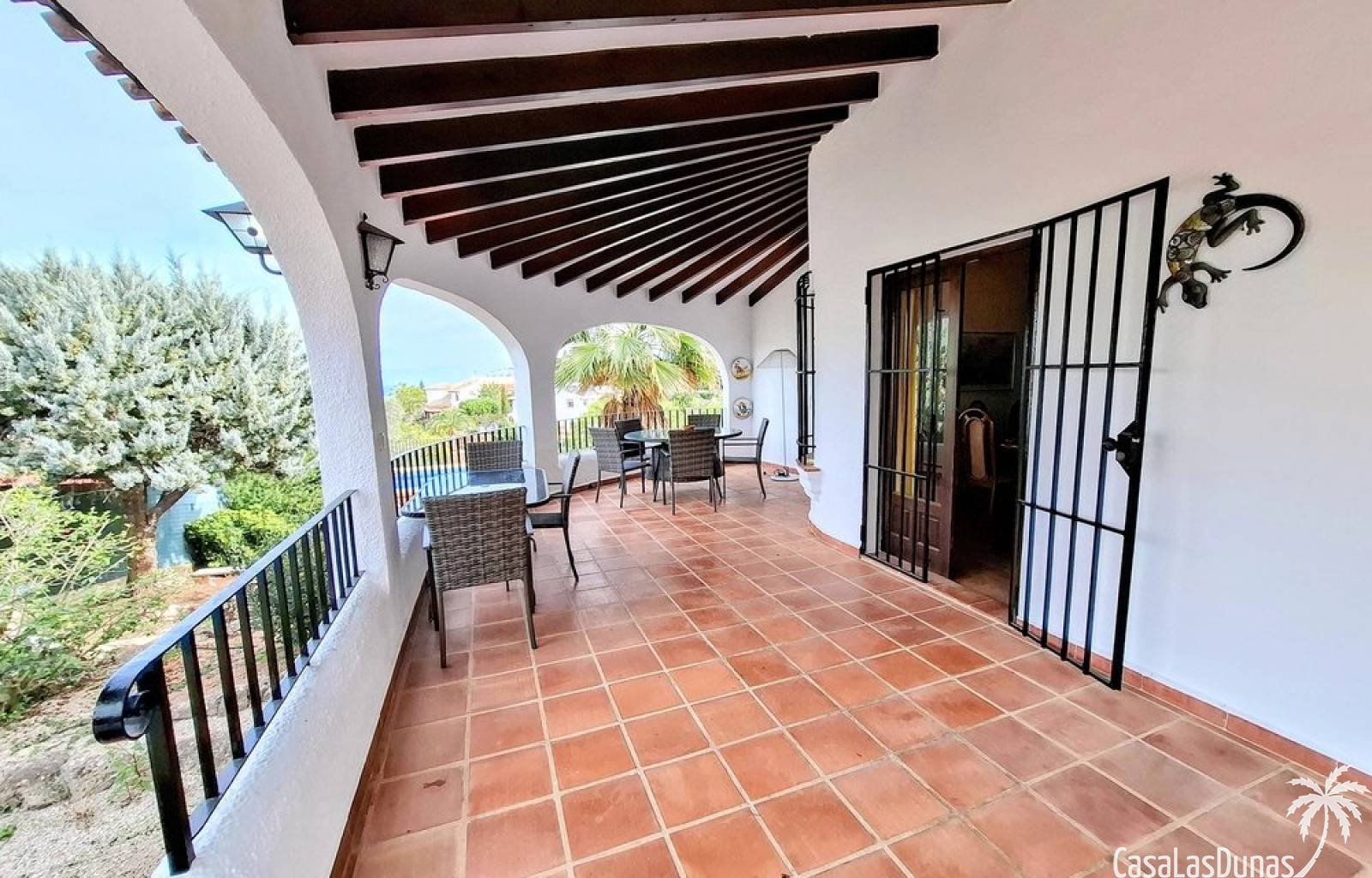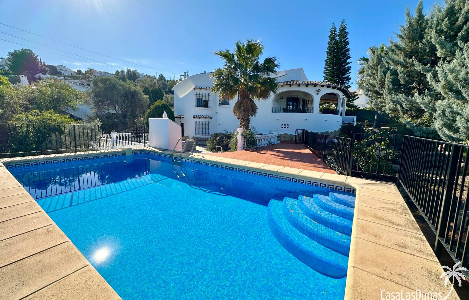Esta villa de 4 dormitorios con piscina privada se encuentra en la zona residencial de Monte Pego y ofrece hermosas vistas al mar y a la montaña. Esta encantadora villa ofrece la distribución perfecta para disfrutar de la tranquilidad y las hermosas vistas al mar. La casa se distribuye en dos plantas, con tres dormitorios en la planta superior, un baño y otro dormitorio con baño en suite en la planta baja, ideal para mayor privacidad o invitados. Los dormitorios están equipados con armarios empotrados y disponen de aire acondicionado y calefacción central para el máximo confort durante todo el año. El amplio salón, con una acogedora chimenea, se abre a la terraza y al jardín. En el exterior hay un gran jardín con limoneros, palmeras, granados, uvas y laureles, una piscina privada, un solárium y una zona de barbacoa para comer al aire libre.