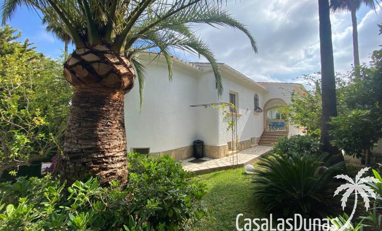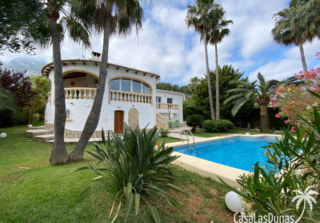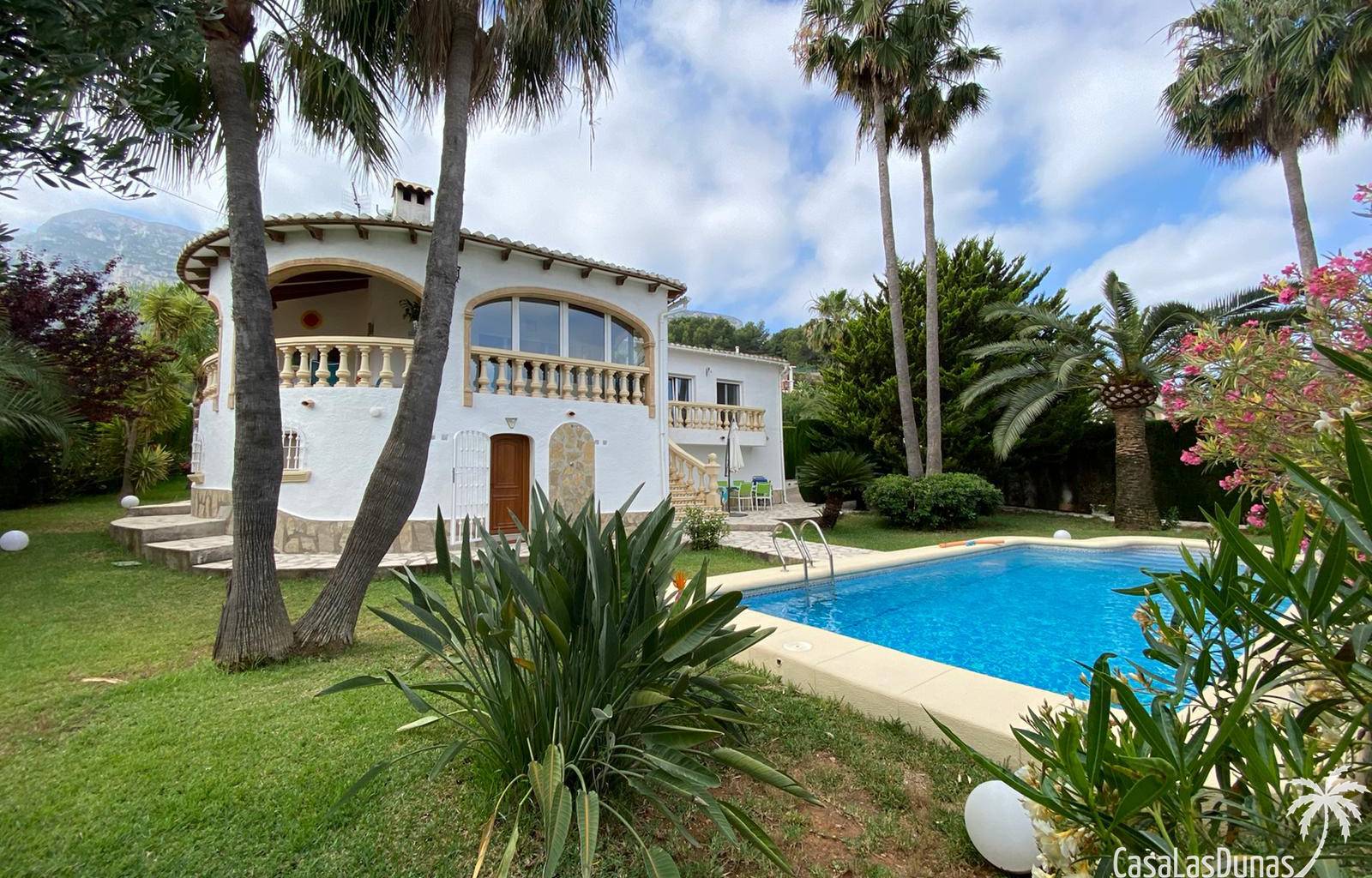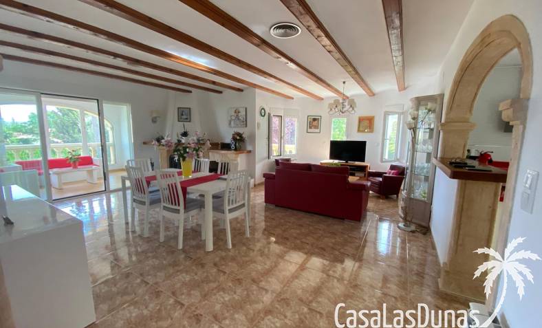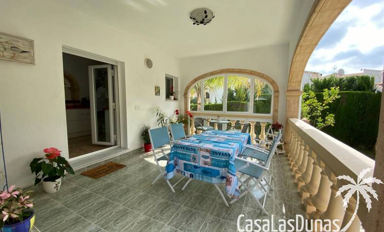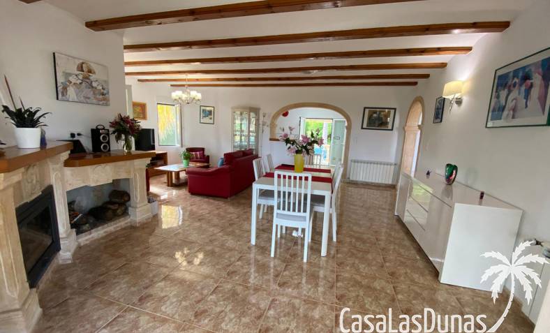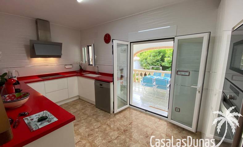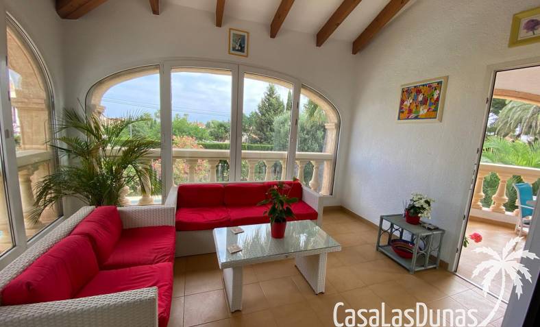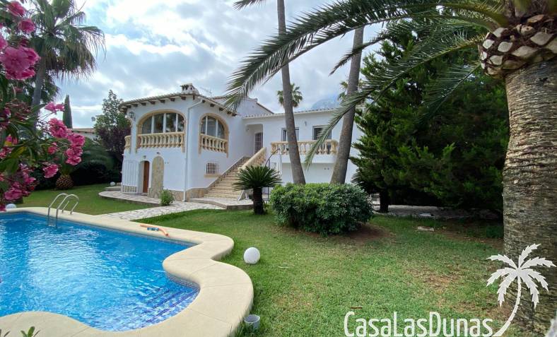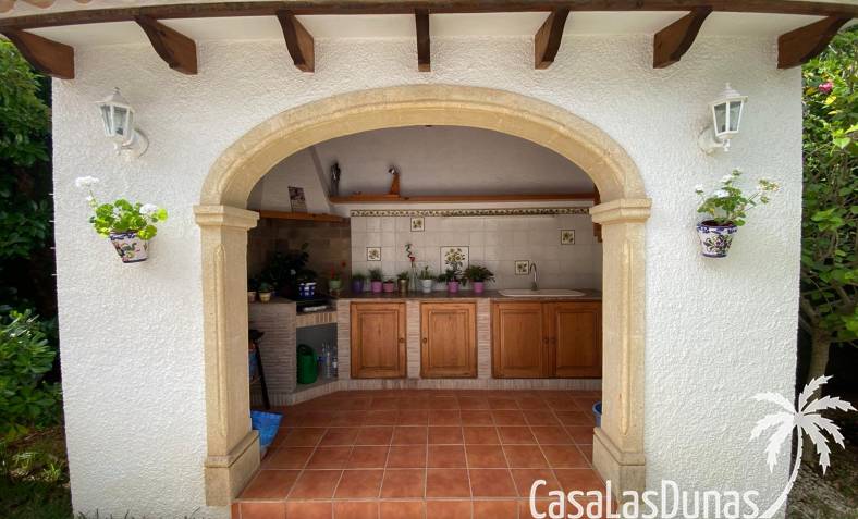 Esta encantadora villa se encuentra en una tranquila zona residencial a poca distancia del centro de Denia y fue construida en 1996 y renovada en 2015. La propiedad tiene una residencia principal en el piso superior y una casa de invitados en la planta baja con garaje independiente y trastero. La casa principal ofrece un amplio salón-comedor con chimenea y cocina abierta, dos terrazas cubiertas y una terraza acristalada, que puede servir perfectamente como segundo comedor. En este nivel hay 3 dormitorios y 2 baños. El apartamento de invitados en la planta baja ofrece una sala de estar, cocina, dos dormitorios, un baño privado con ducha y sauna y un baño con bañera separada. La casa está rodeada de un hermoso jardín con piscina privada, solárium y cocina exterior.