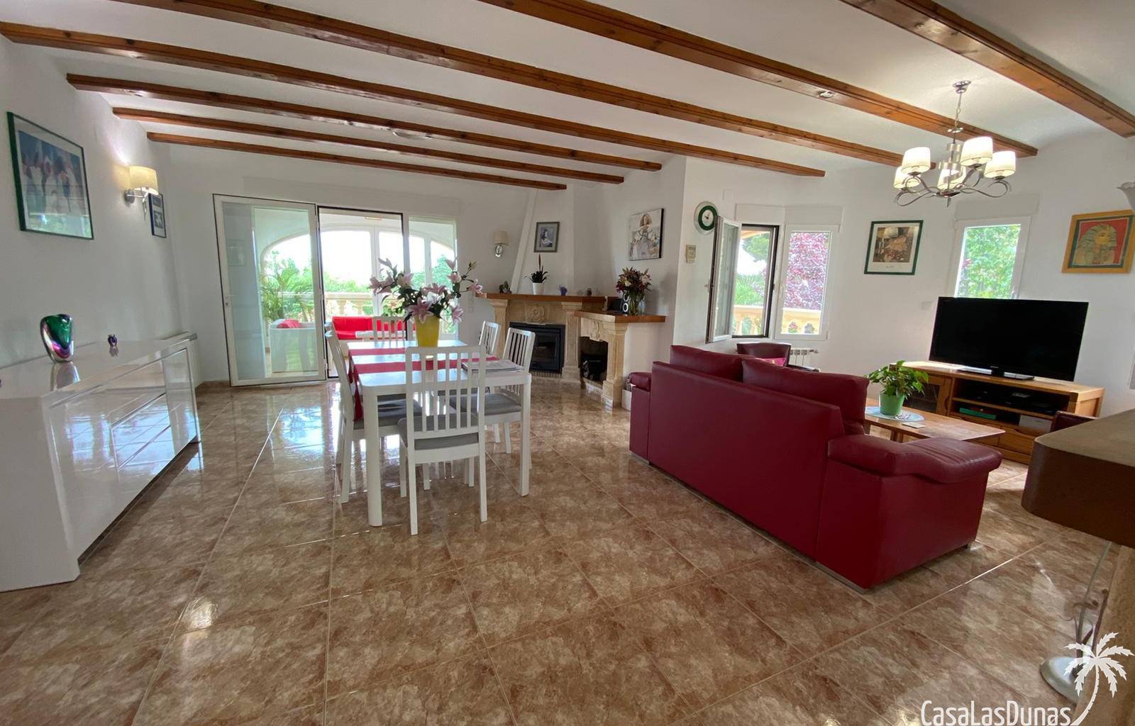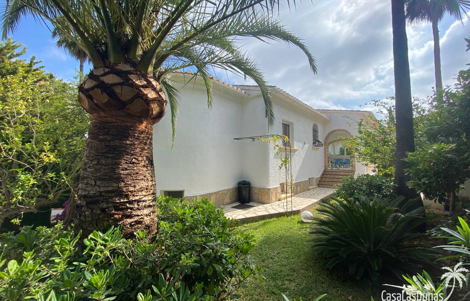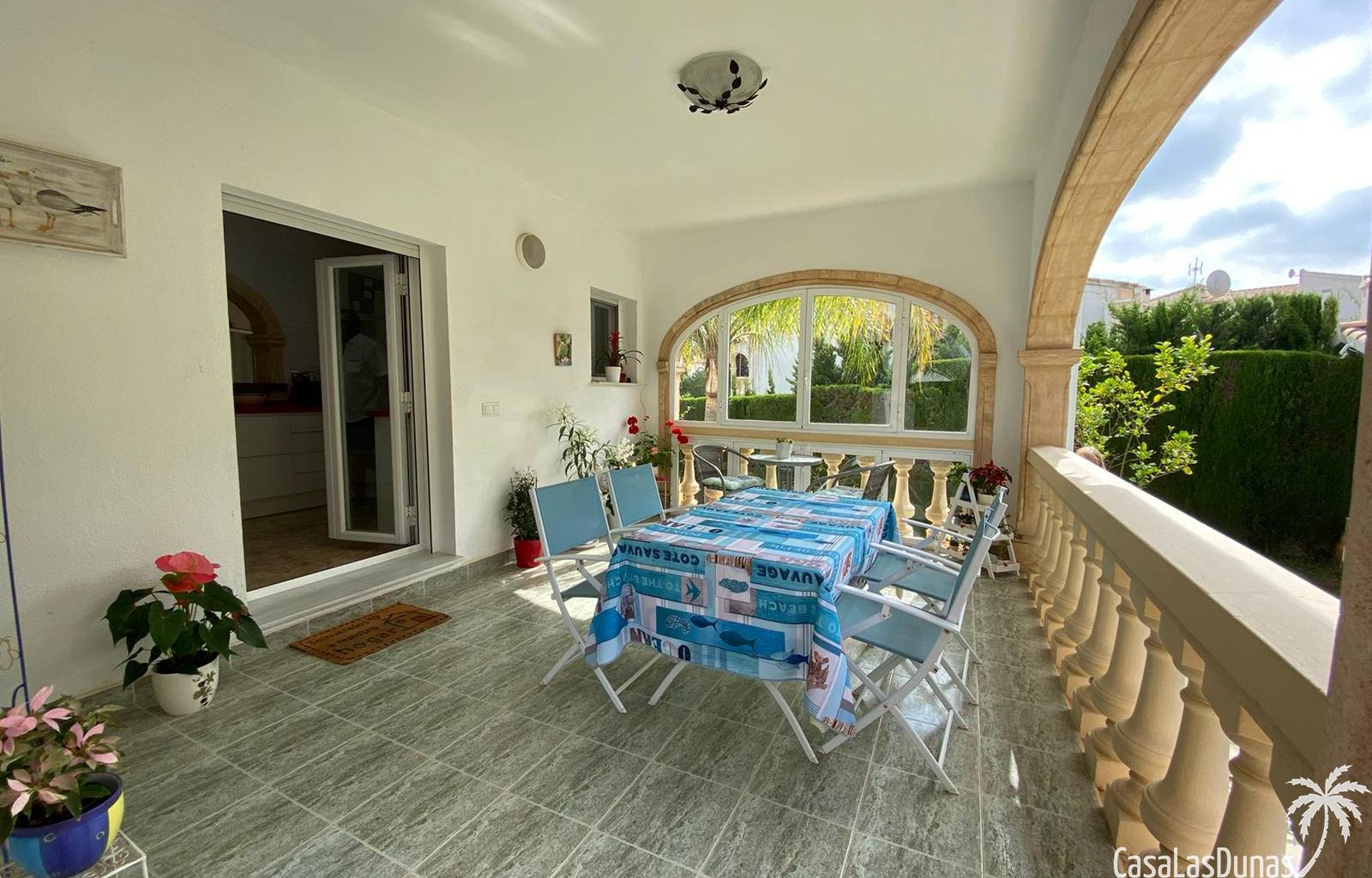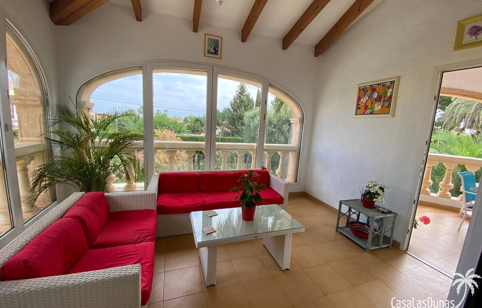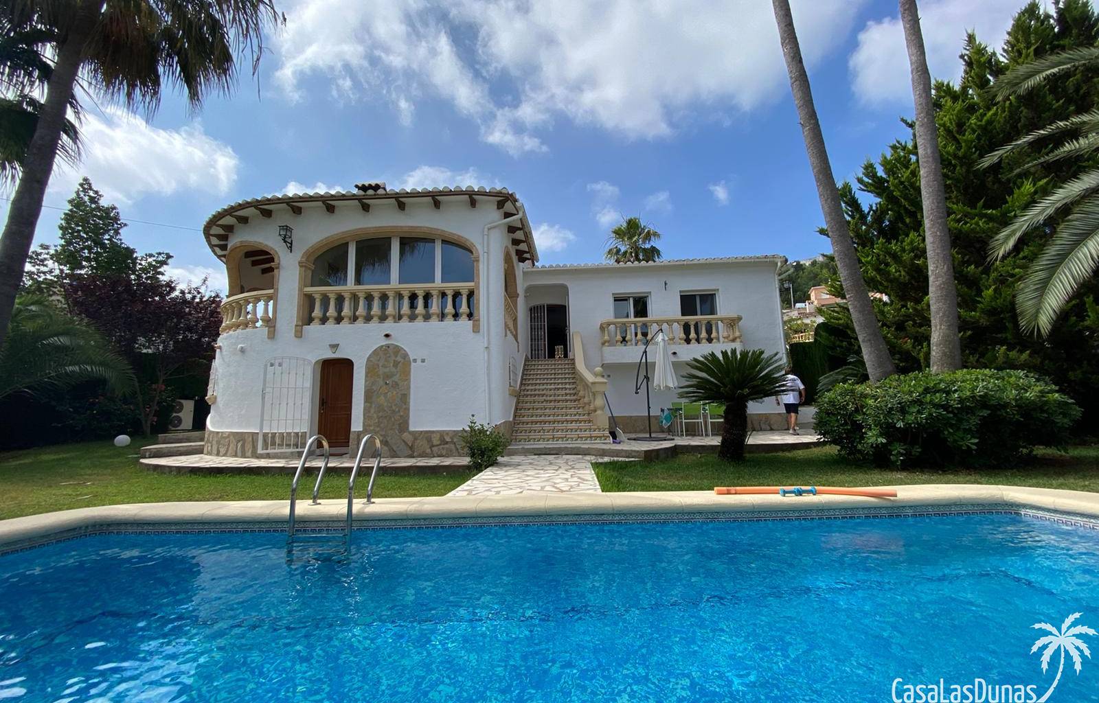 Esta encantadora villa se encuentra en una tranquila zona residencial a poca distancia del centro de Denia y fue construida en 1996 y renovada en 2015. La propiedad tiene una residencia principal en el piso superior y una casa de invitados en la planta baja con garaje independiente y trastero. La casa principal ofrece un amplio salón-comedor con chimenea y cocina abierta, dos terrazas cubiertas y una terraza acristalada, que puede servir perfectamente como segundo comedor. En este nivel hay 3 dormitorios y 2 baños. El apartamento de invitados en la planta baja ofrece una sala de estar, cocina, dos dormitorios, un baño privado con ducha y sauna y un baño con bañera separada. La casa está rodeada de un hermoso jardín con piscina privada, solárium y cocina exterior.