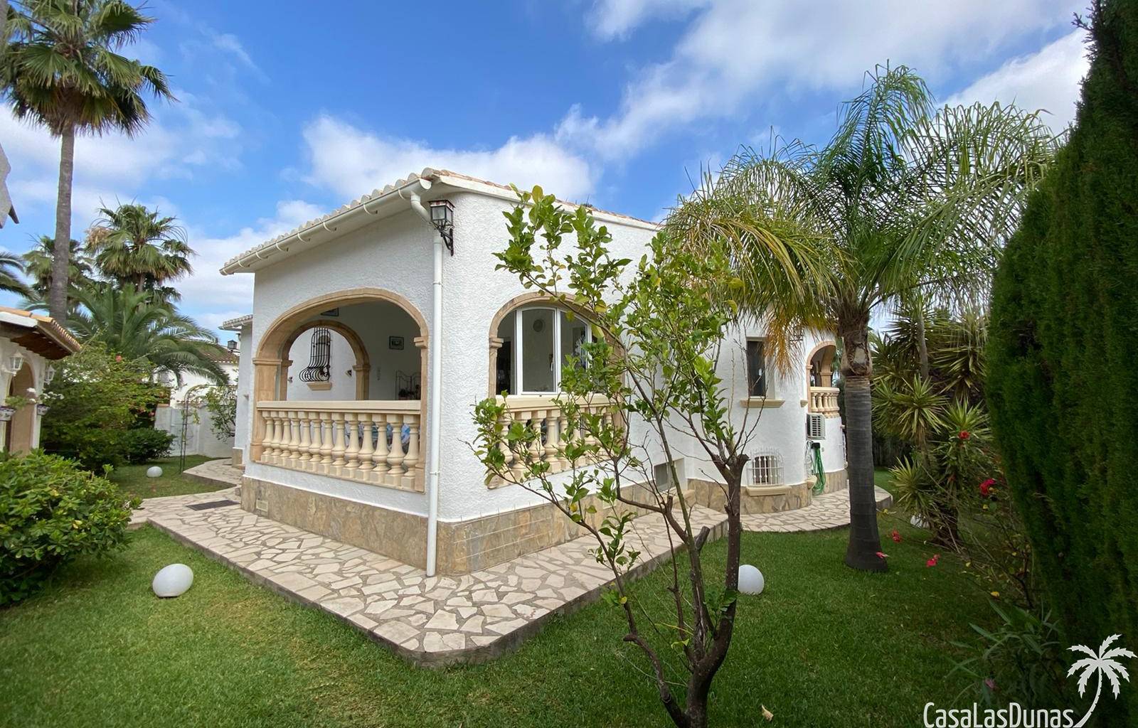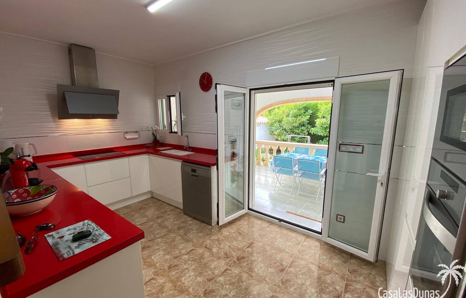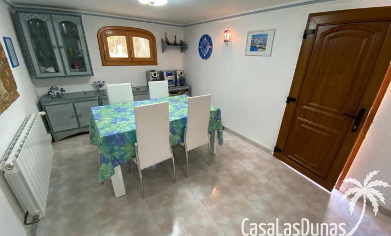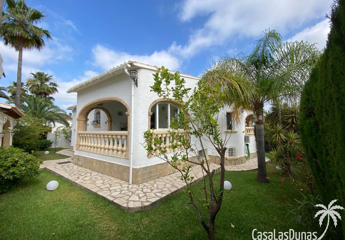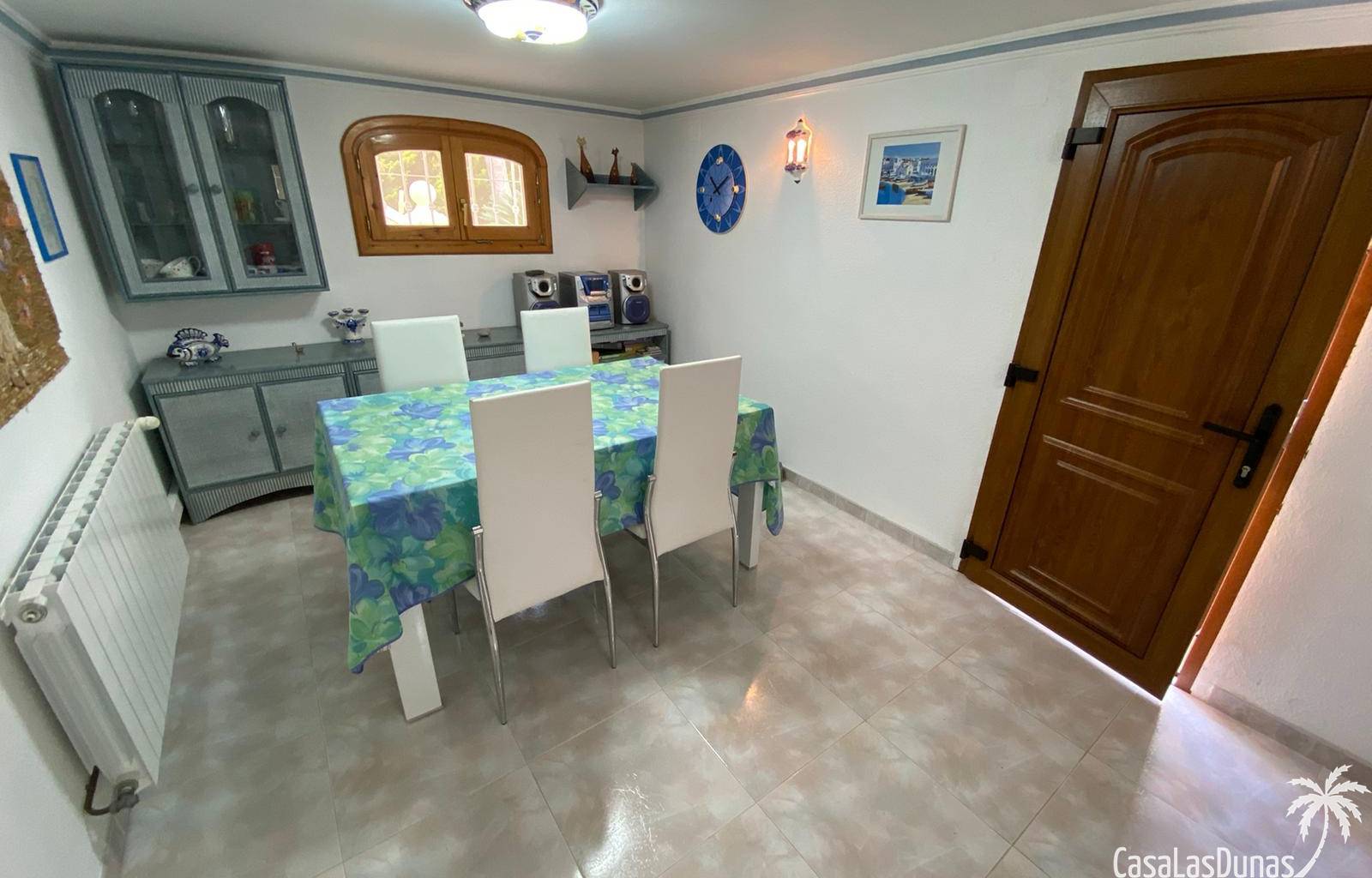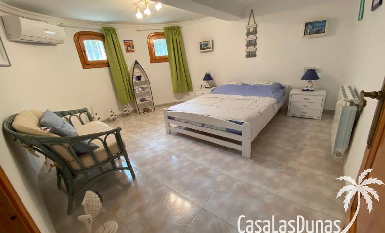 Esta encantadora villa se encuentra en una tranquila zona residencial a poca distancia del centro de Denia y fue construida en 1996 y renovada en 2015. La propiedad tiene una residencia principal en el piso superior y una casa de invitados en la planta baja con garaje independiente y trastero. La casa principal ofrece un amplio salón-comedor con chimenea y cocina abierta, dos terrazas cubiertas y una terraza acristalada, que puede servir perfectamente como segundo comedor. En este nivel hay 3 dormitorios y 2 baños. El apartamento de invitados en la planta baja ofrece una sala de estar, cocina, dos dormitorios, un baño privado con ducha y sauna y un baño con bañera separada. La casa está rodeada de un hermoso jardín con piscina privada, solárium y cocina exterior.