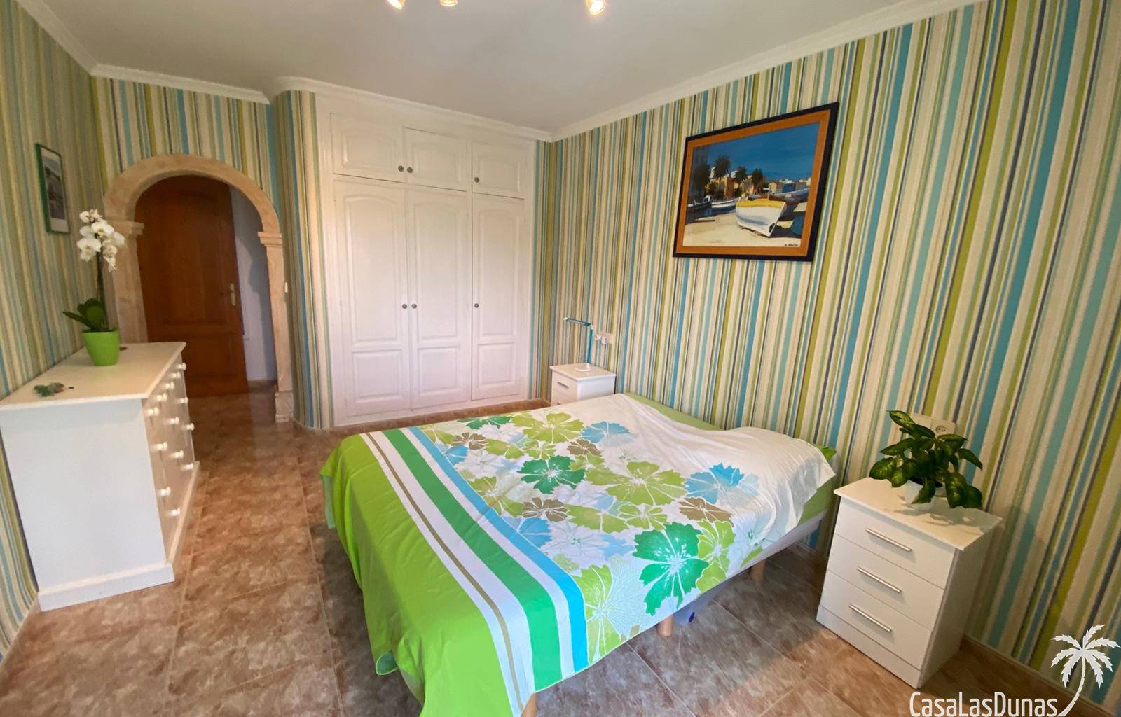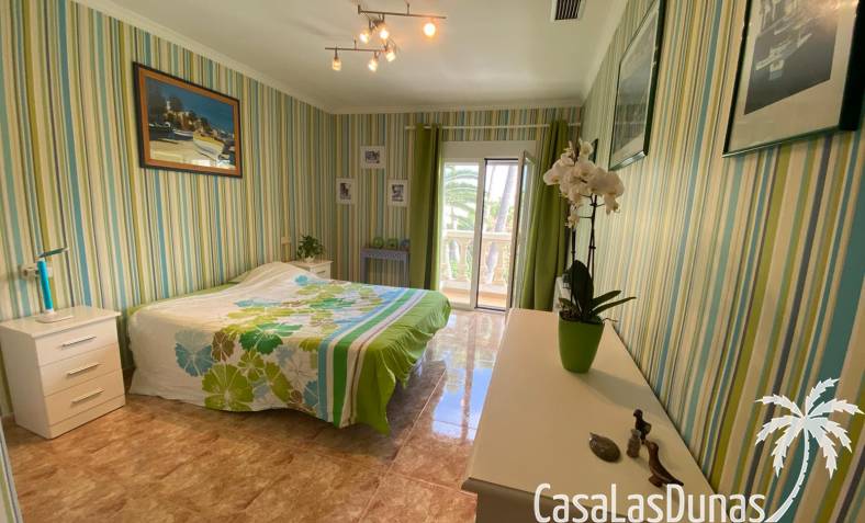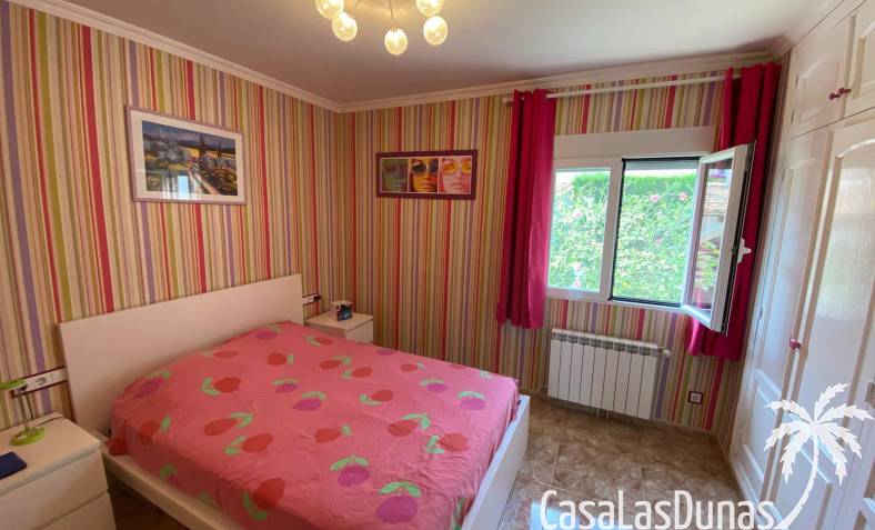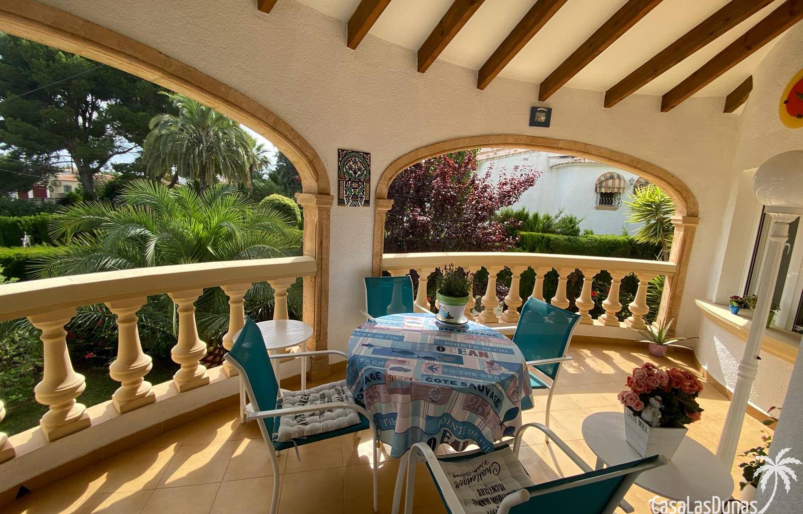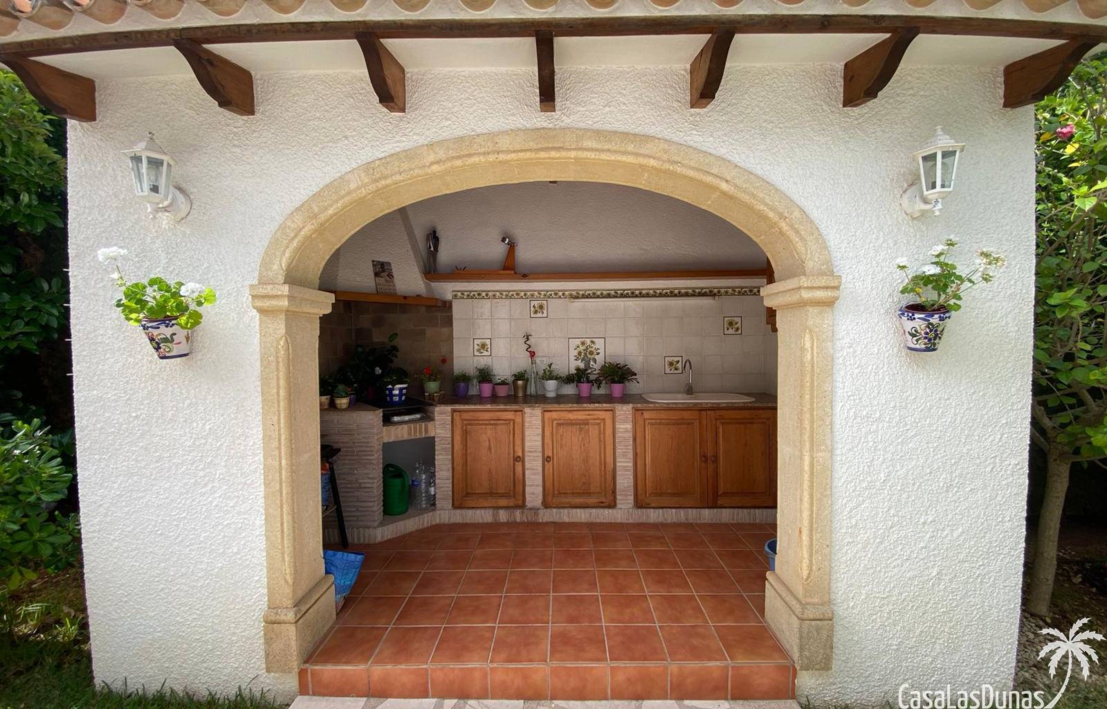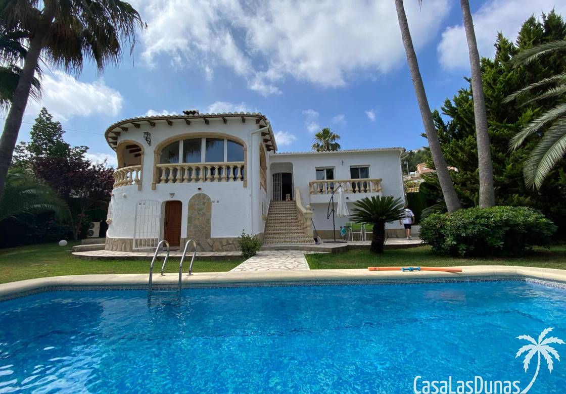 Esta encantadora villa se encuentra en una tranquila zona residencial a poca distancia del centro de Denia y fue construida en 1996 y renovada en 2015. La propiedad tiene una residencia principal en el piso superior y una casa de invitados en la planta baja con garaje independiente y trastero. La casa principal ofrece un amplio salón-comedor con chimenea y cocina abierta, dos terrazas cubiertas y una terraza acristalada, que puede servir perfectamente como segundo comedor. En este nivel hay 3 dormitorios y 2 baños. El apartamento de invitados en la planta baja ofrece una sala de estar, cocina, dos dormitorios, un baño privado con ducha y sauna y un baño con bañera separada. La casa está rodeada de un hermoso jardín con piscina privada, solárium y cocina exterior.
