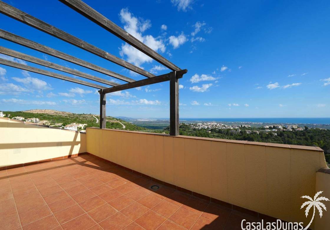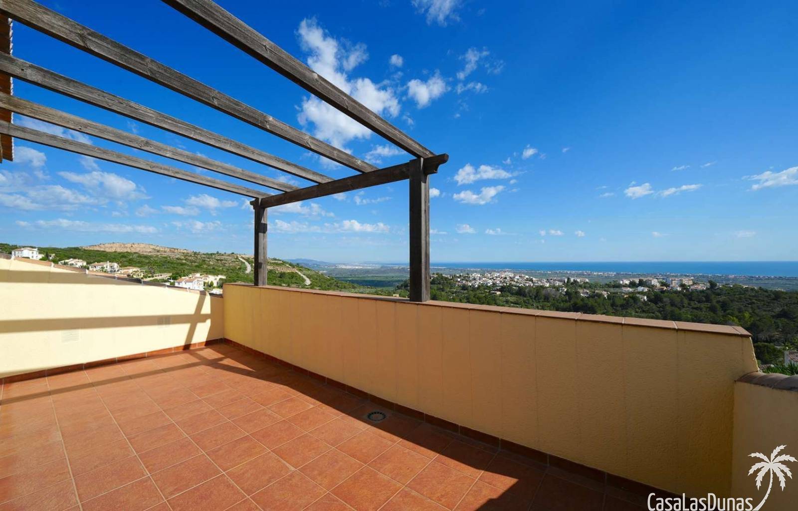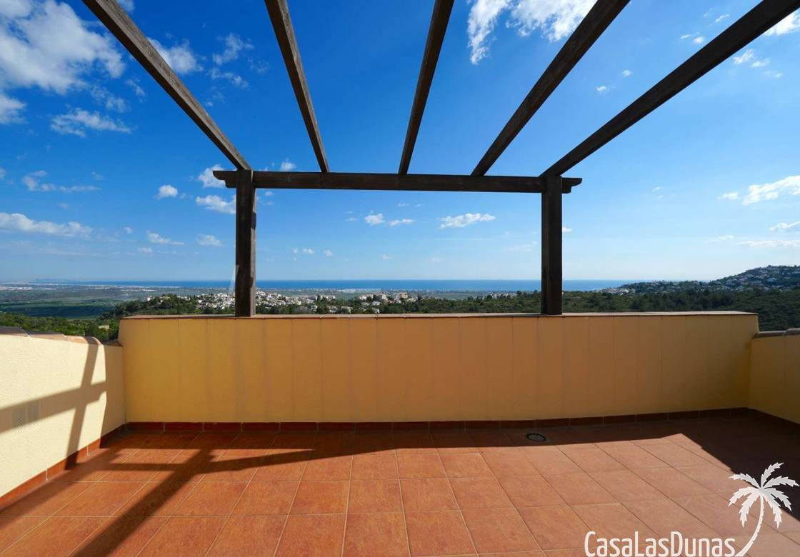 Esta hermosa casa esquinera se distribuye en dos plantas y está ubicada en un pequeño complejo de 16 casas que ofrecen vistas panorámicas sobre la costa de Denia. En la planta superior se encuentra un amplio y luminoso salón-comedor con una acogedora chimenea, una cocina abierta y acceso a una amplia terraza con vistas al mar. En esta planta también hay un lavadero con espacio para la lavadora. En la planta inferior hay 3 amplios dormitorios y 2 baños (dormitorio principal con baño en suite). Hay una plaza de aparcamiento privado y acceso a una hermosa piscina con una amplia terraza y vistas panorámicas al mar.