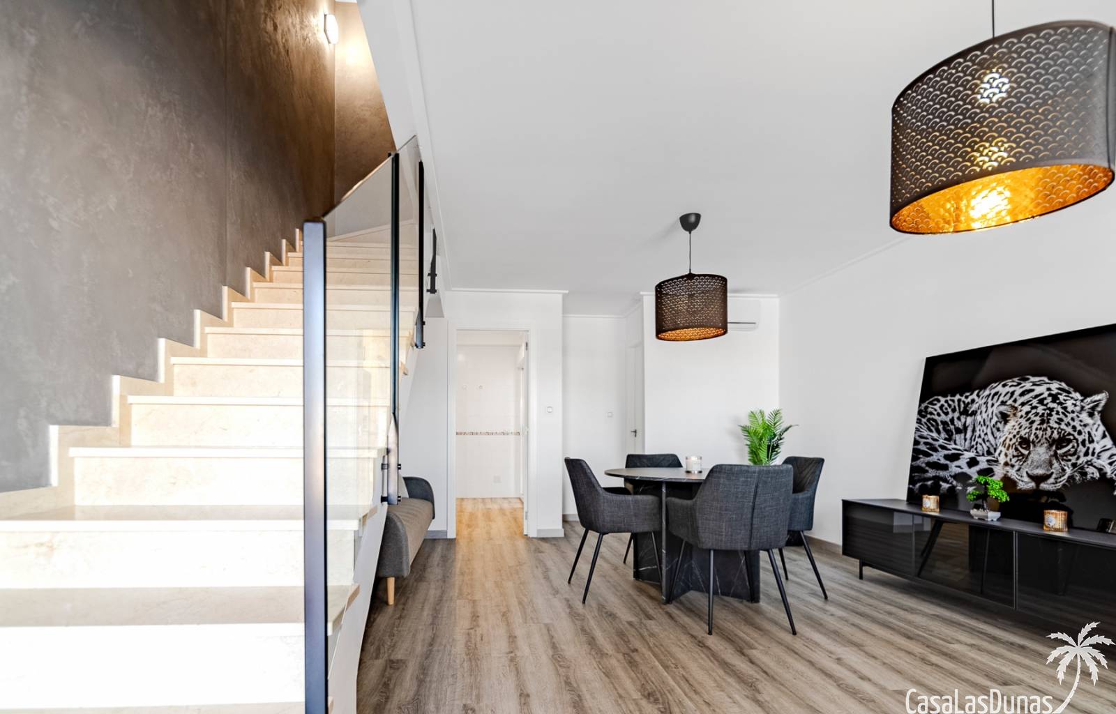 La vivienda es un dúplex de dos plantas conectadas por una escalera interior. Tiene una superficie construida total de aproximadamente 74,69 m², con un espacio interior útil de unos 69,69 m². La distribución incluye varias habitaciones y un porche.