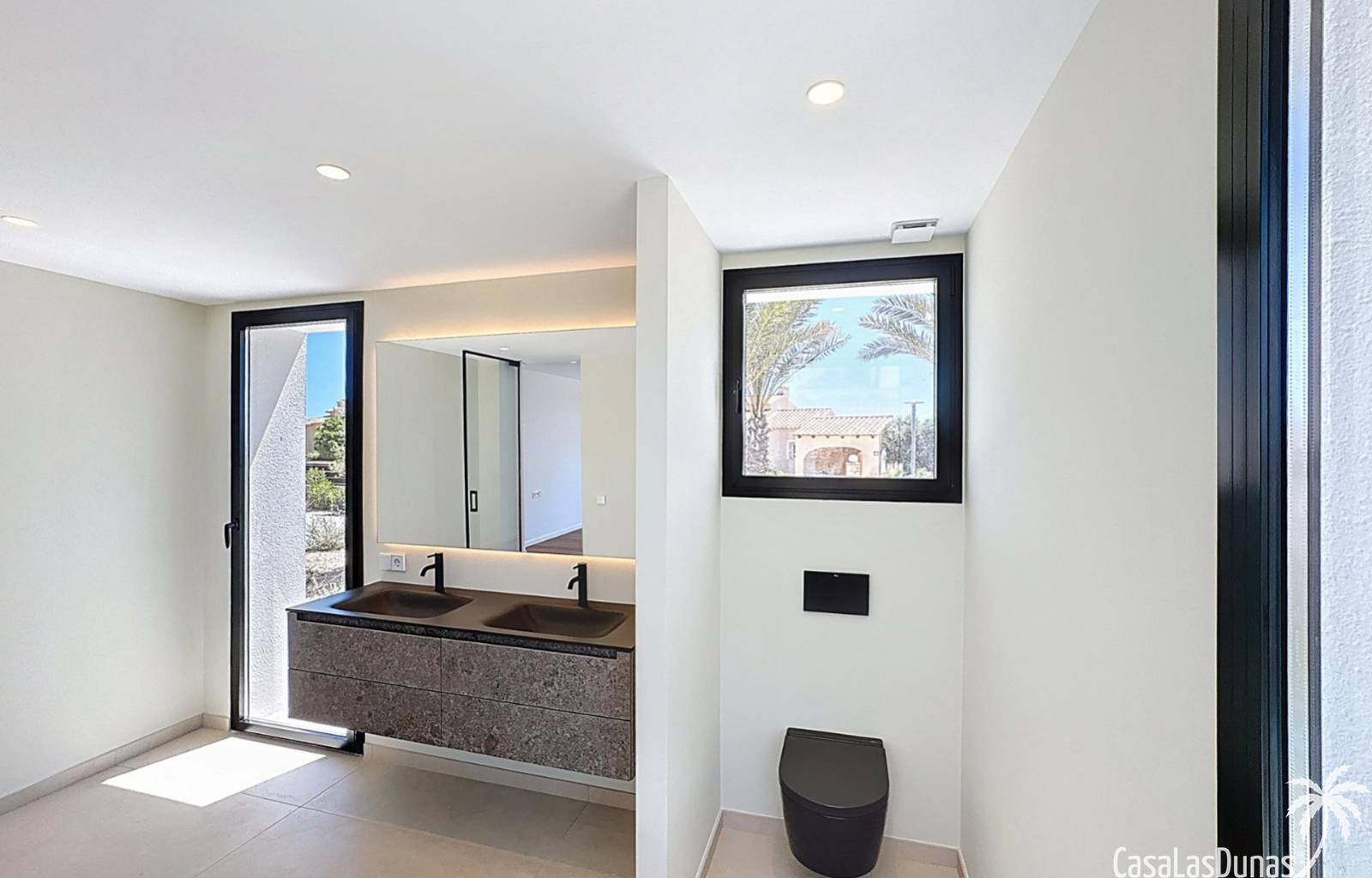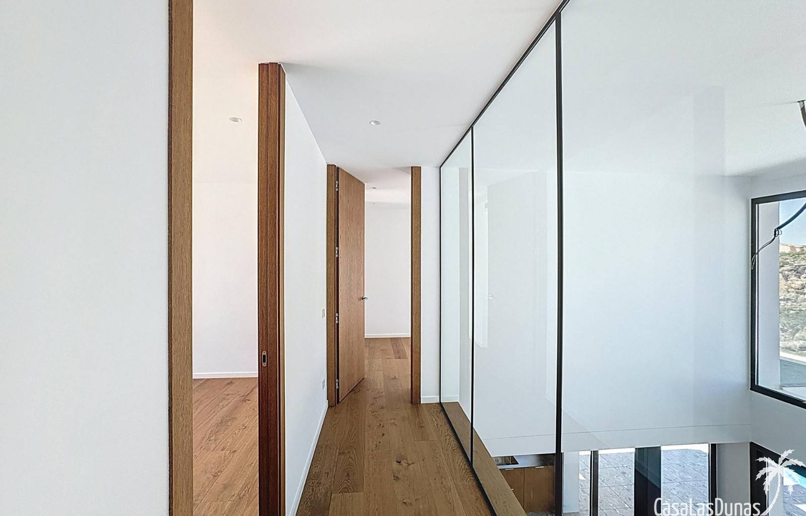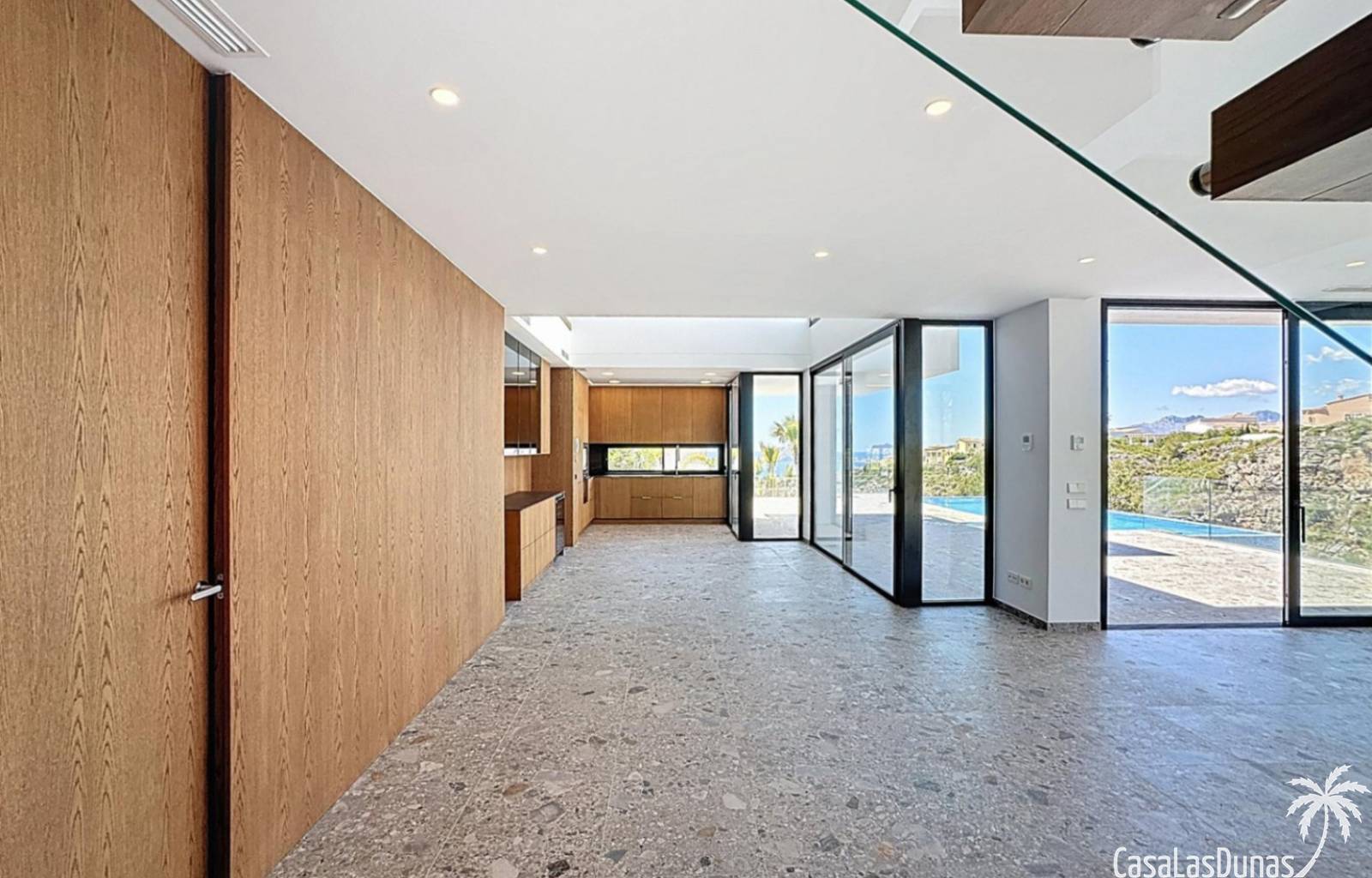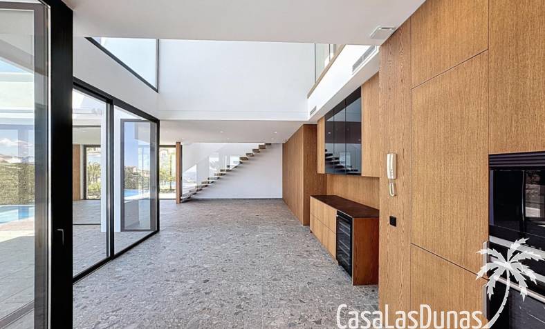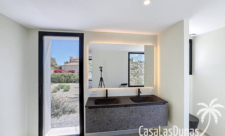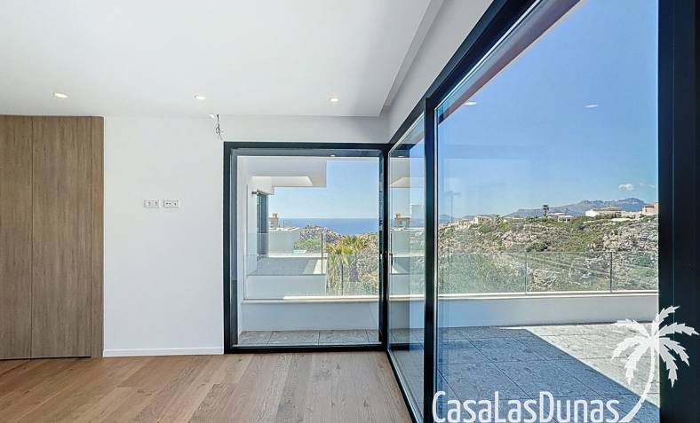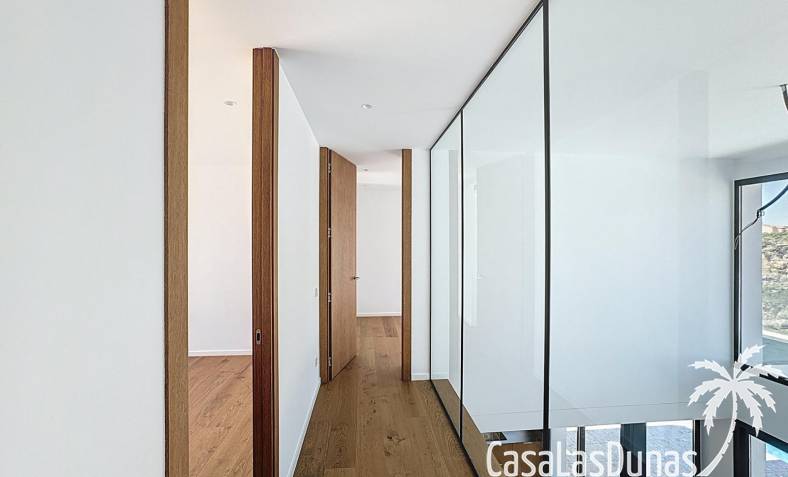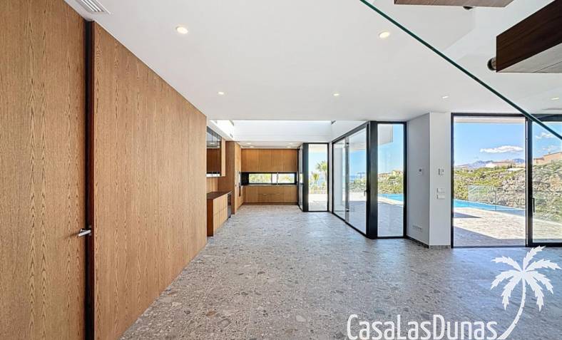 Esta elegante y moderna villa se sitúa en una parcela con orientación suroeste en Cumbre, con impresionantes vistas al mar y al Peñón de Ifach. La casa cuenta con 240 m² de superficie habitable, un sótano de 45 m², un lavadero de 4 m² y 153 m² de terrazas exteriores, ideales para disfrutar del clima mediterráneo y las vistas panorámicas. La villa cuenta con tres dormitorios dobles, todos con armarios empotrados o vestidores y baño privado, lo que garantiza comodidad y privacidad. Dos de los dormitorios tienen terraza privada con vistas al mar. Una elegante escalera interior conduce a la planta baja, donde encontramos un amplio salón-comedor con chimenea, una moderna cocina americana con zona de comedor, un aseo de invitados y un lavadero independiente. Tanto el salón como la cocina ofrecen acceso directo a la terraza con piscina privada, un lugar perfecto para relajarse o recibir invitados mientras disfruta de las impresionantes vistas al mar Mediterráneo.