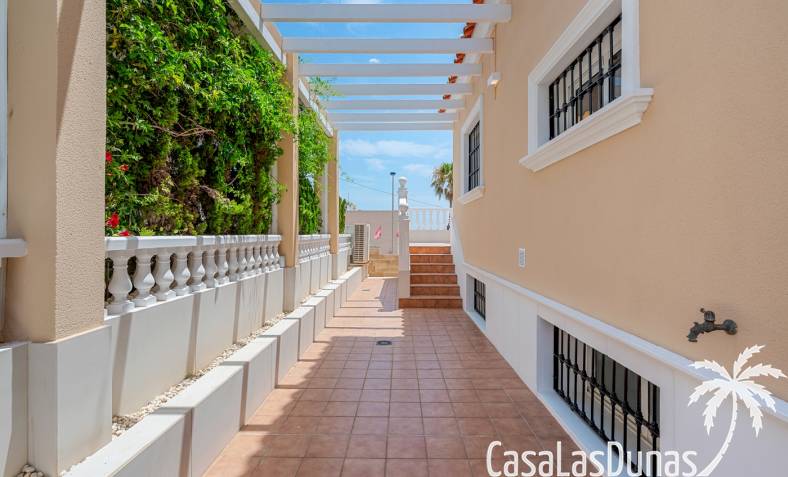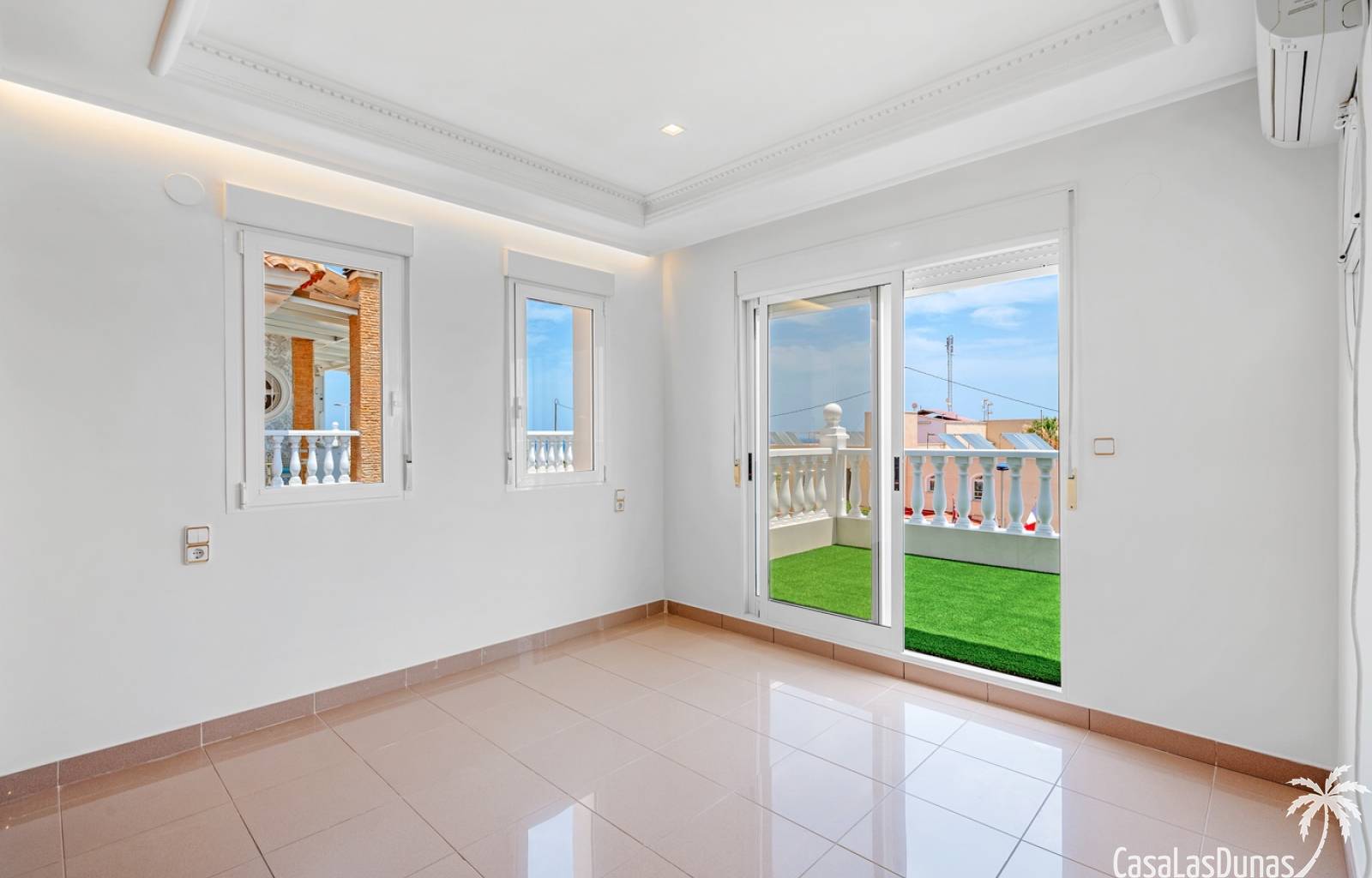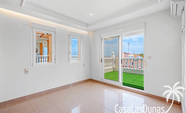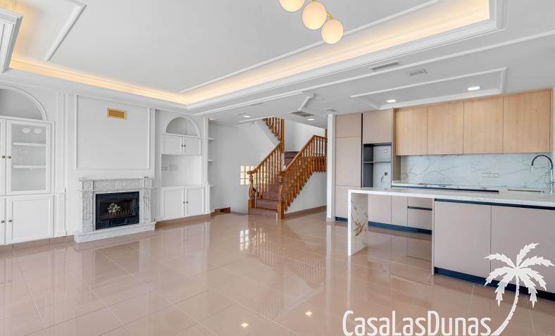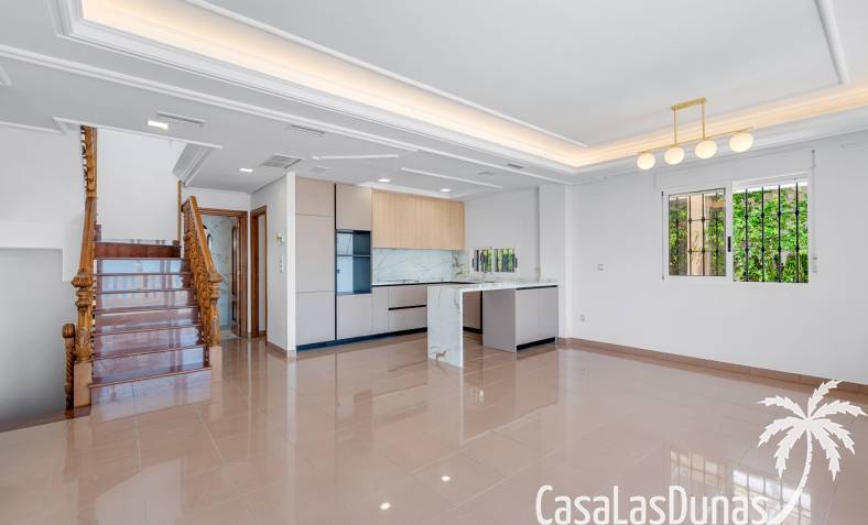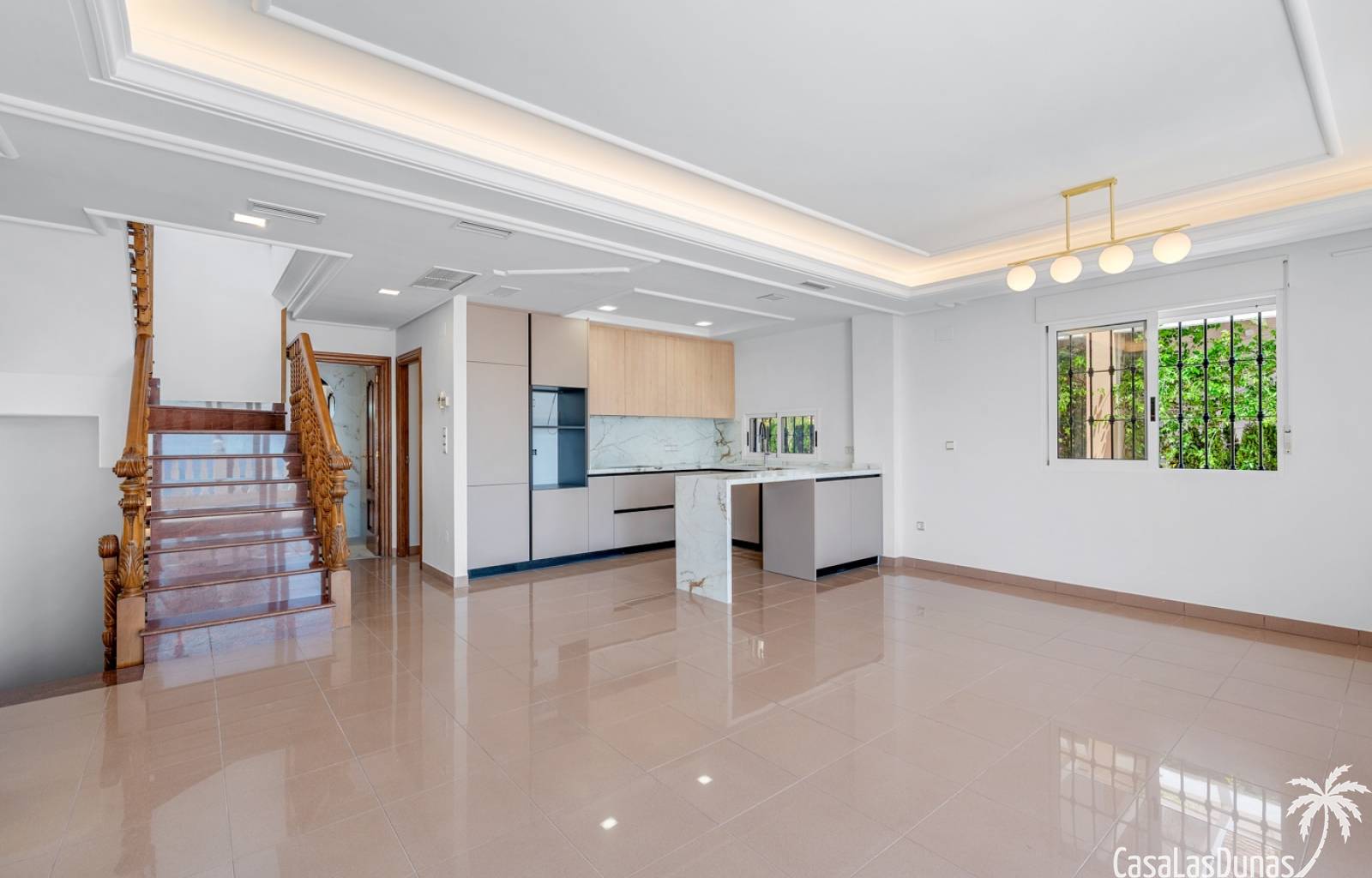 Esta elegante villa independiente de 290 m², ubicada en el reconocido Residencial El Faro de Torrevieja, ha sido recientemente reformada y combina diseño moderno, funcionalidad y una ubicación privilegiada con vistas despejadas al mar Mediterráneo.