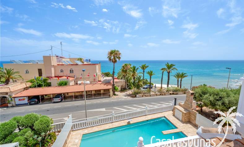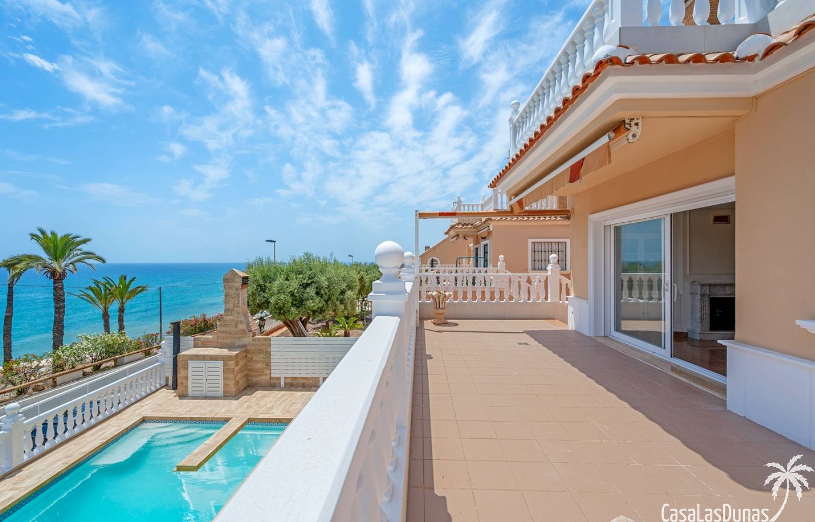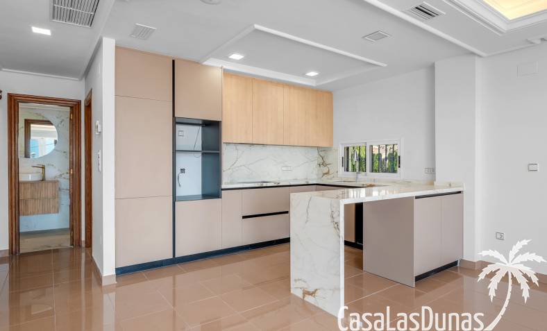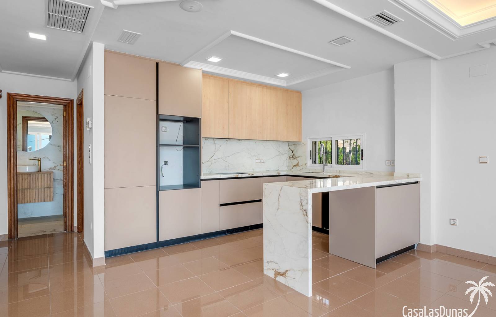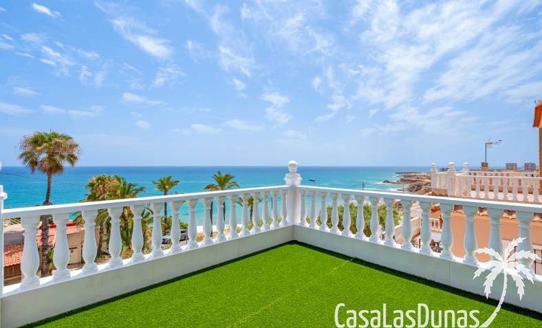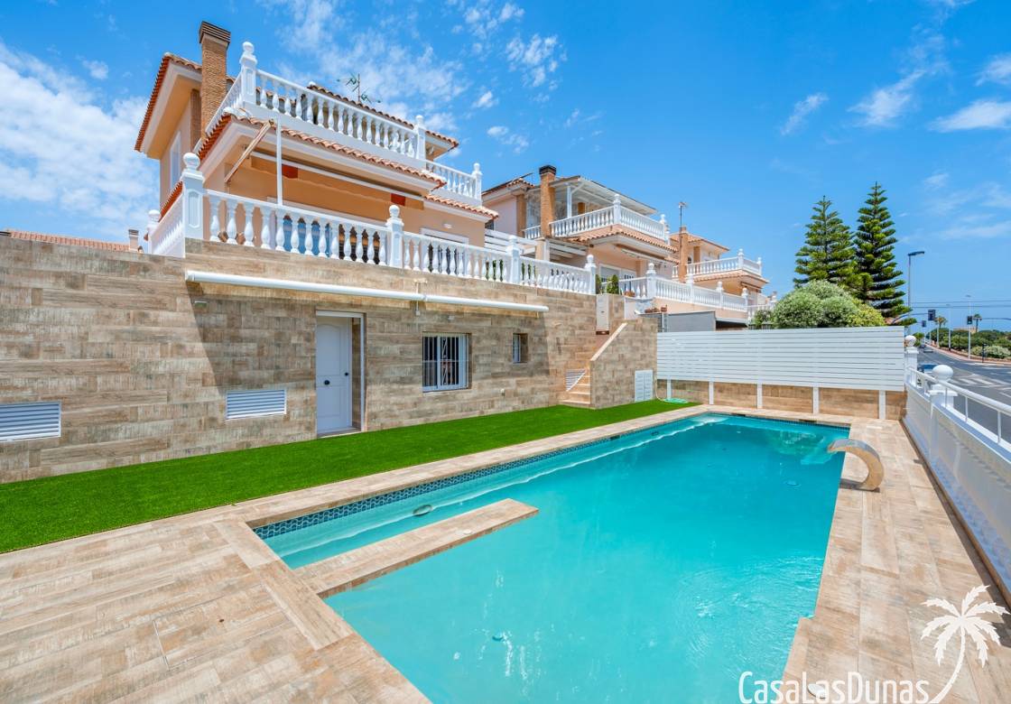 Esta elegante villa independiente de 290 m², ubicada en el reconocido Residencial El Faro de Torrevieja, ha sido recientemente reformada y combina diseño moderno, funcionalidad y una ubicación privilegiada con vistas despejadas al mar Mediterráneo.