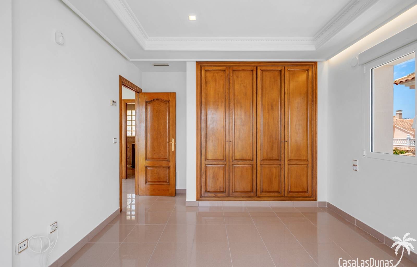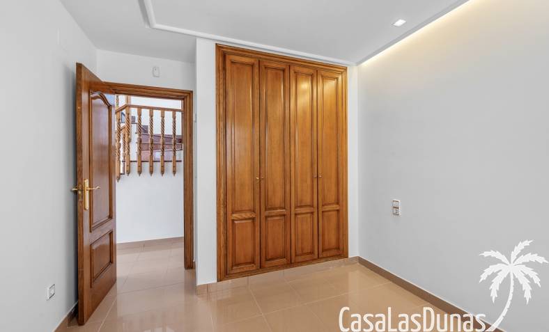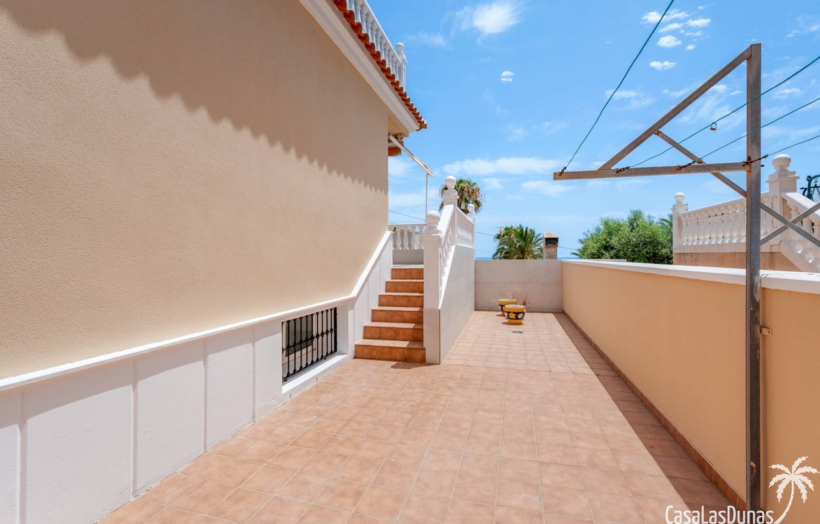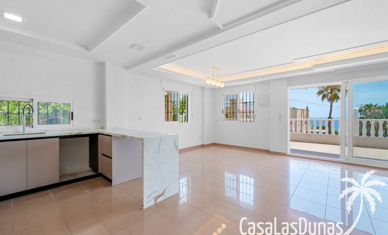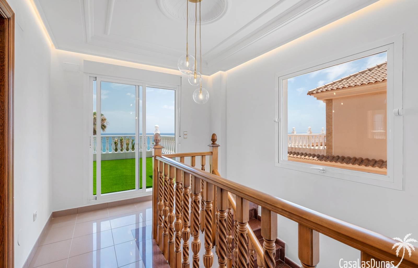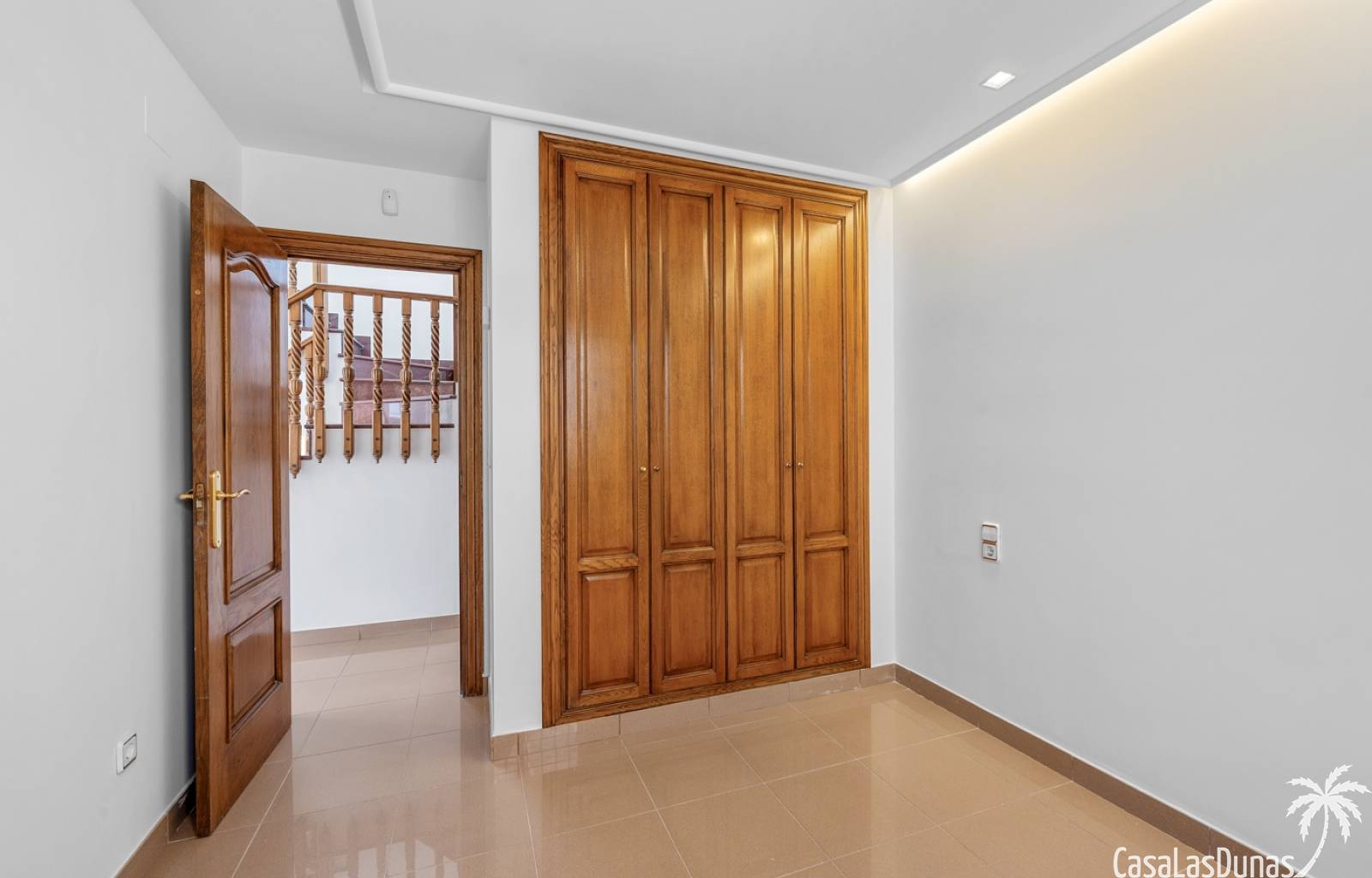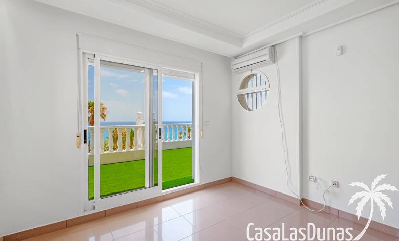 En la planta superior se encuentran dos dormitorios adicionales, ambos con acceso a un amplio balcón con vistas al mar, y un baño completo. Las estancias son amplias, luminosas y cuentan con armarios empotrados.
