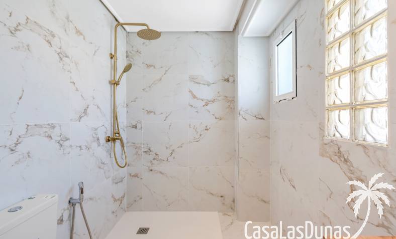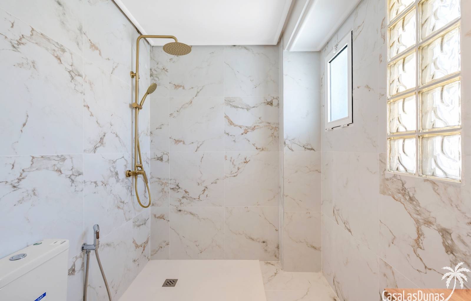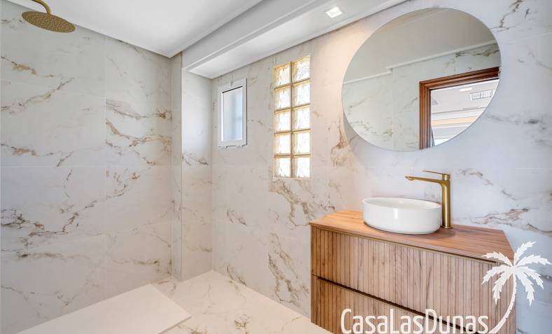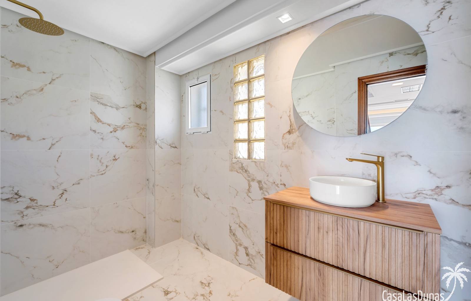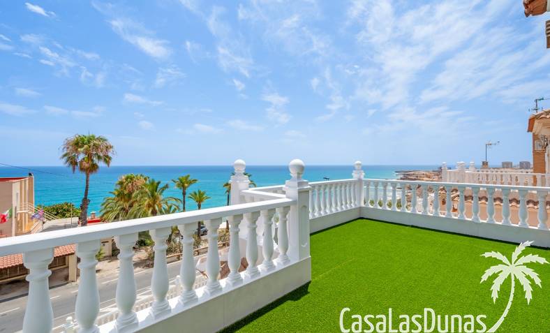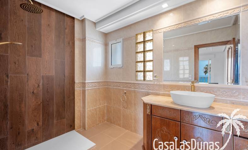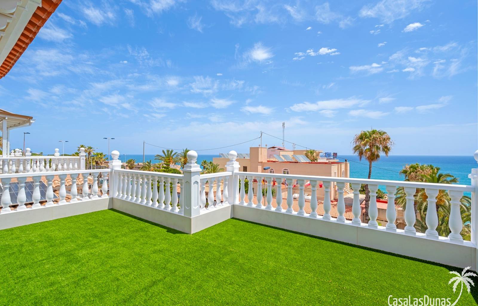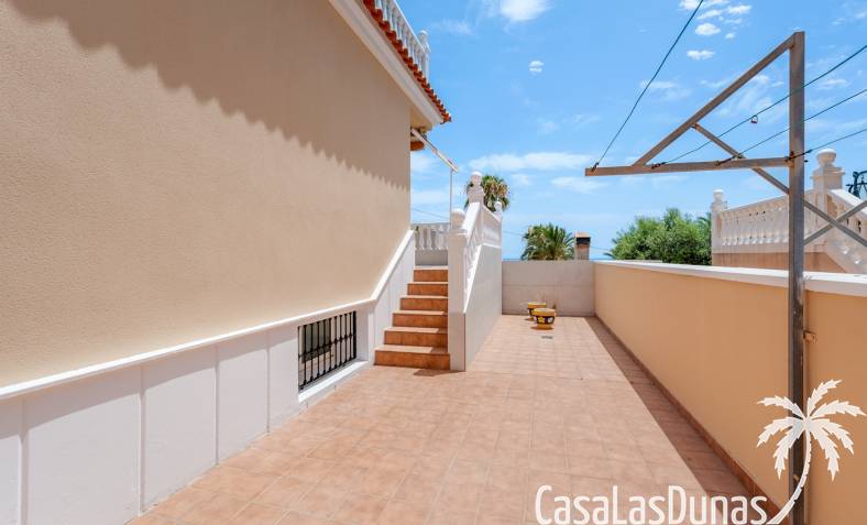 En la planta superior se encuentran dos dormitorios adicionales, ambos con acceso a un amplio balcón con vistas al mar, y un baño completo. Las estancias son amplias, luminosas y cuentan con armarios empotrados.