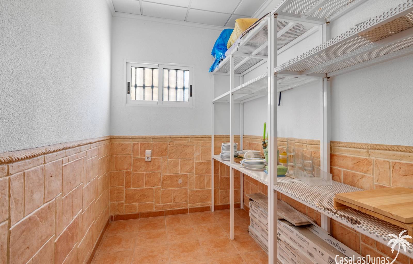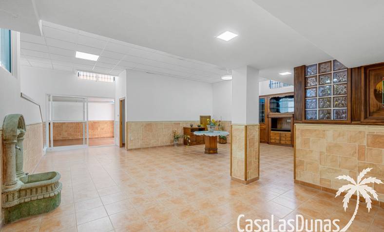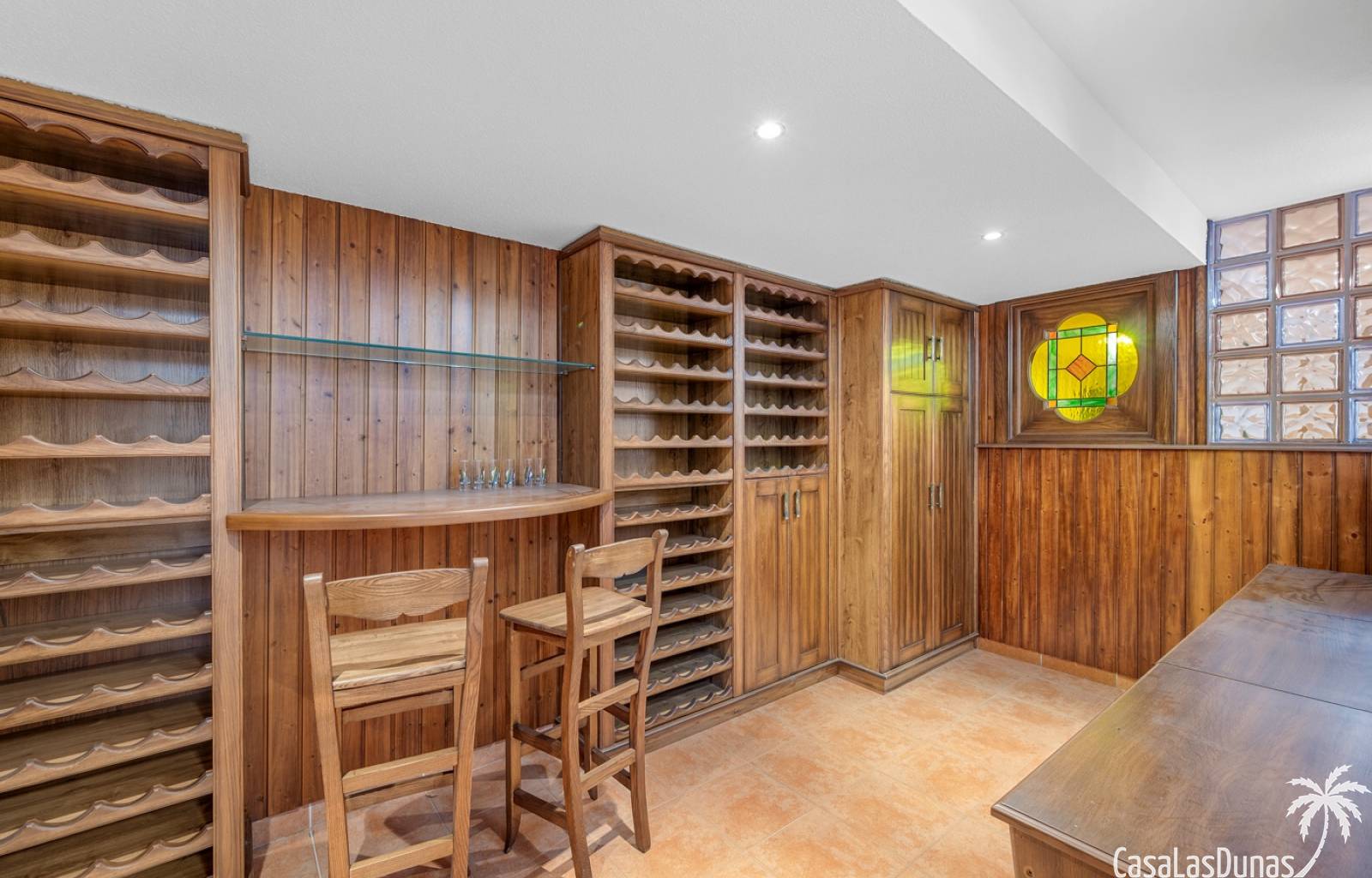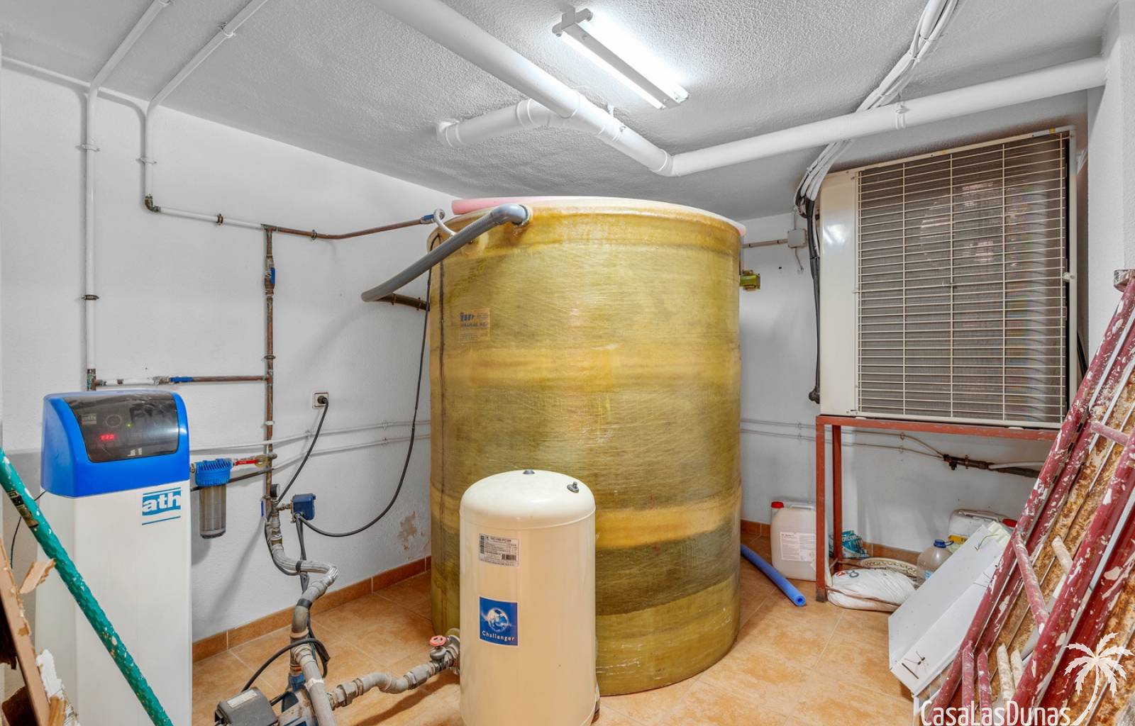 Distribuida en tres plantas, la vivienda ofrece en la planta baja un doble garaje privado con acceso directo a la casa, una amplia sala de recreo ideal para cine en casa o zona de juegos, una bodega, un dormitorio adicional, un baño completo, cuarto técnico con depósito de gasoil y varios espacios de almacenamiento. Desde esta planta se accede directamente al exterior, donde se encuentra una gran zona de patio con piscina privada y jardín de césped artificial, perfecto para disfrutar del clima y la tranquilidad del entorno.