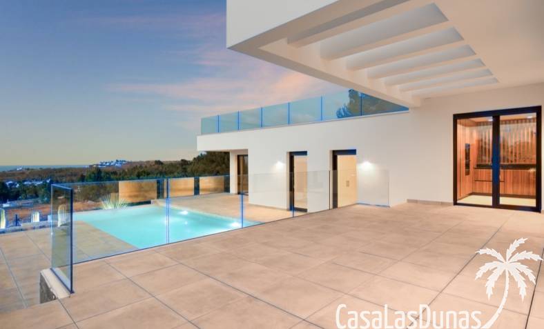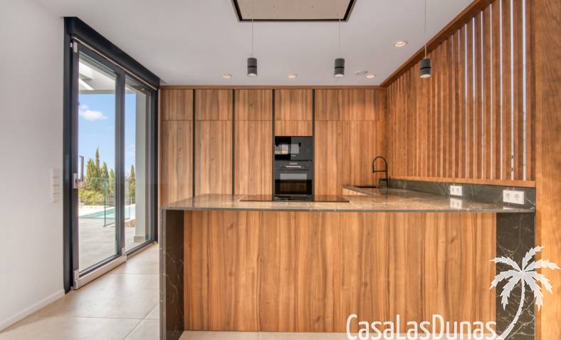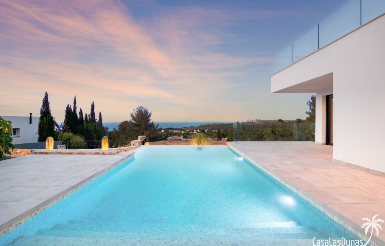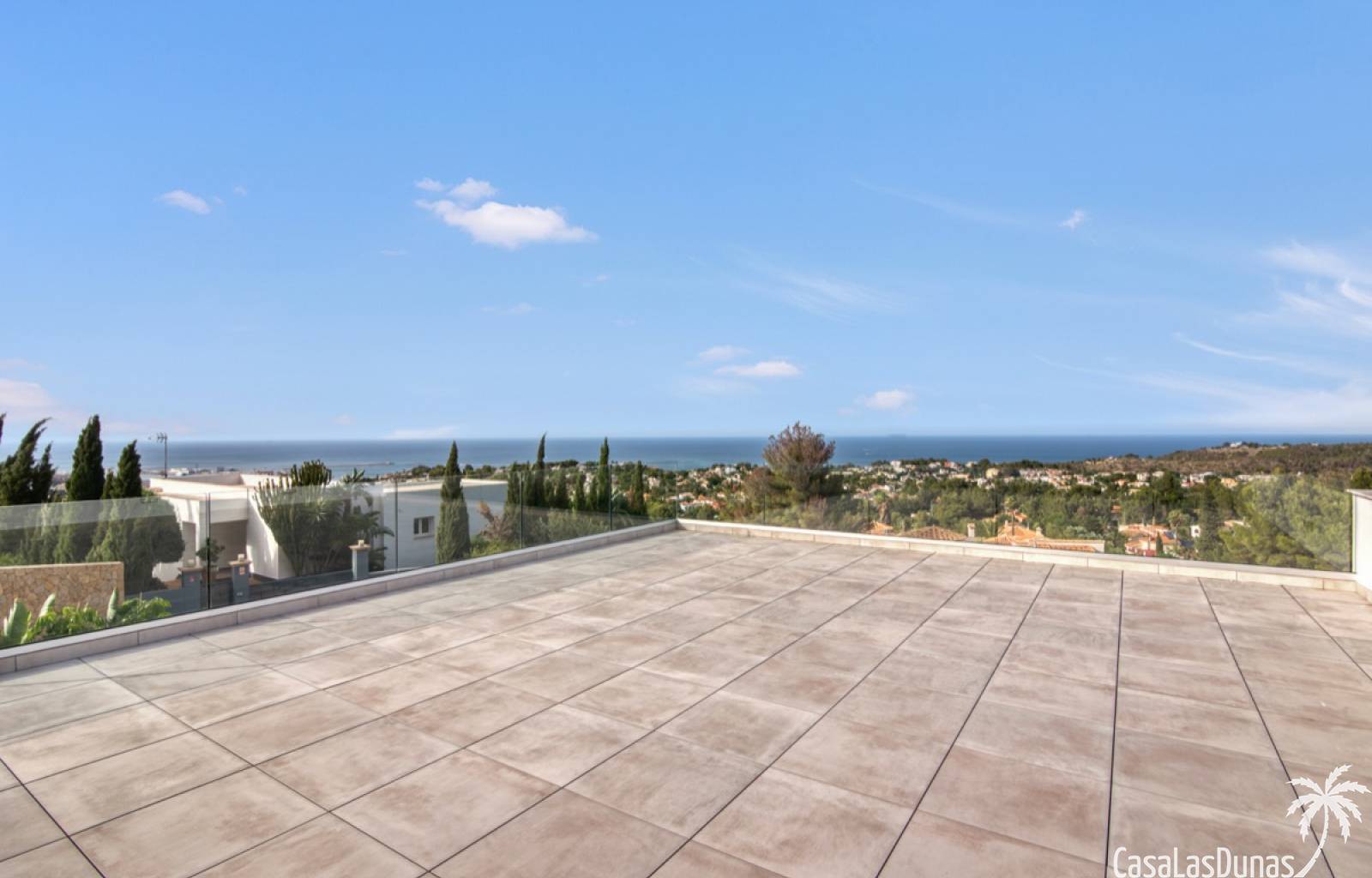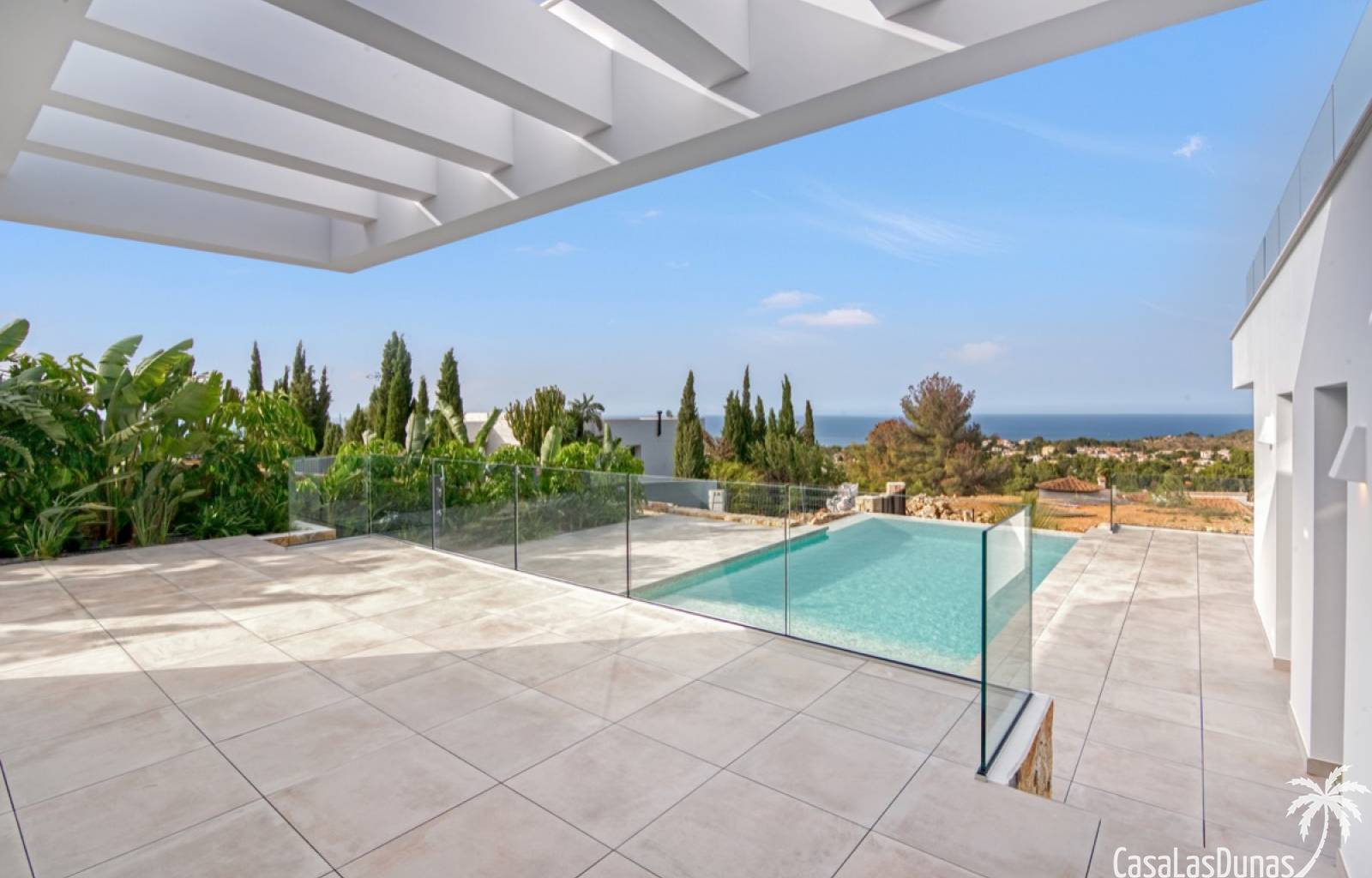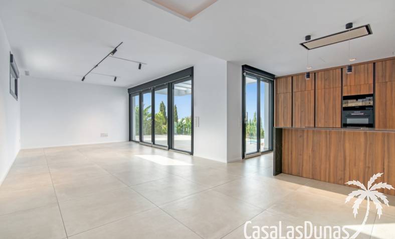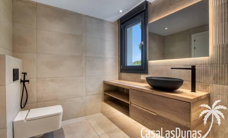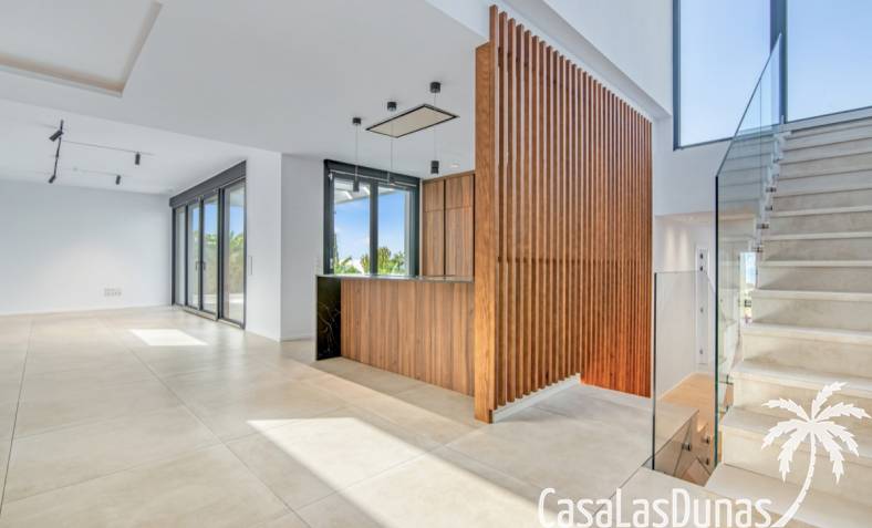 Villa de lujo a estrenar con impresionantes vistas al mar, rodeada de naturaleza y lindando con el Parque Natural del Montgó. La casa está construida con los mejores materiales del mercado y acabados de alta calidad, cuidando cada detalle, cuidadosamente pensado y diseñado por profesionales. La villa, con una superficie total de 295 m², se distribuye en dos plantas de la siguiente manera: Planta baja: amplio salón-comedor, cocina de diseño abierta equipada con electrodomésticos de última generación, dormitorio principal con baño en suite y vestidor, dos dormitorios y un baño completo. En esta planta, el salón, la cocina y los dormitorios tienen acceso directo a las terrazas y a la piscina. Desde esta planta también se accede a un amplio solárium con vistas panorámicas, desde donde se pueden disfrutar de espectaculares puestas de sol. El sótano cuenta con un espacio multifuncional que puede utilizarse como dormitorio, sala de fitness o home cinema, con un proyector preinstalado, un dormitorio adicional, un baño completo, un lavadero, una sala de máquinas y un amplio garaje. Esta villa está construida y equipada con tecnología de última generación y tiene una calificación energética A. Cuenta con calefacción por suelo radiante con aerotermia, sistema de recuperación de calor, aire acondicionado central con conductos de frío y calor y termostatos en cada estancia, persianas eléctricas, alarma, controles termostáticos electrónicos en los baños de la planta baja que permiten regular la temperatura y el caudal de agua, y preinstalación de persianas motorizadas. En el exterior, sobre una parcela de 850 m², podrás disfrutar de amplias terrazas, una piscina infinity de 8x4 m con iluminación LED a elegir entre 4 colores diferentes, y un precioso jardín con riego automático que requiere un mantenimiento mínimo.