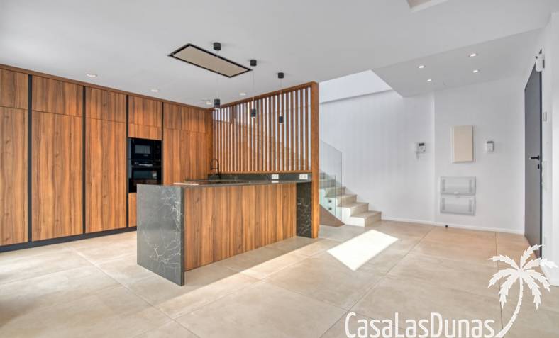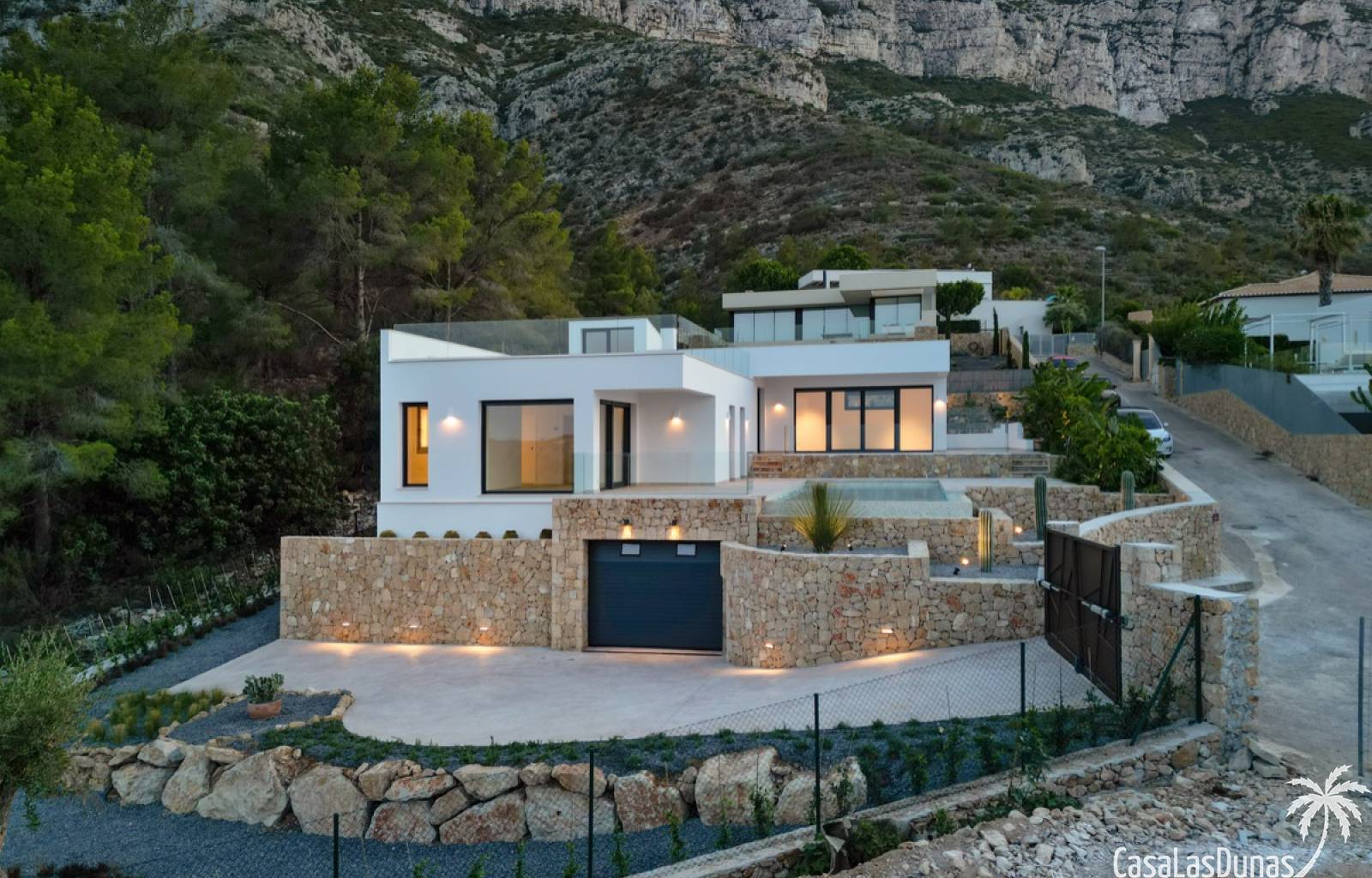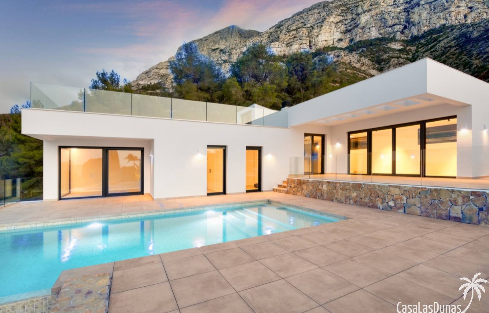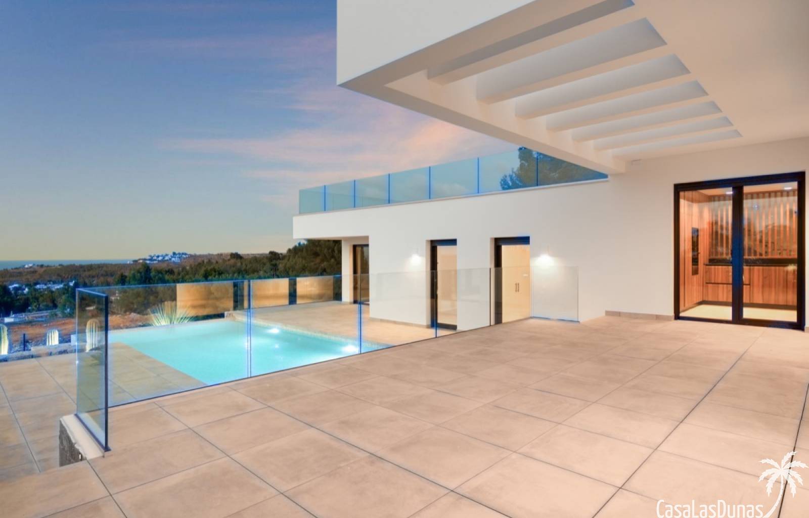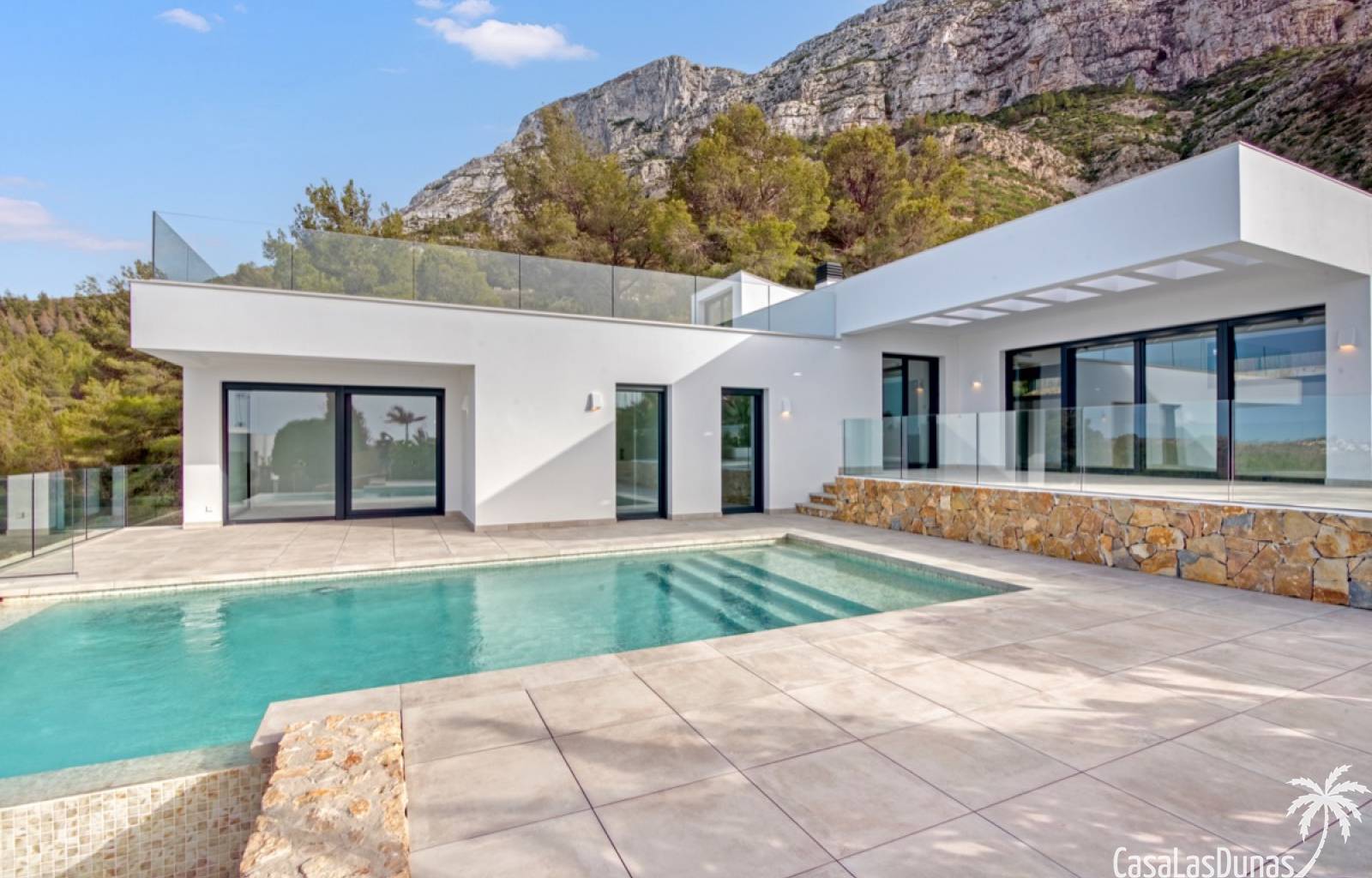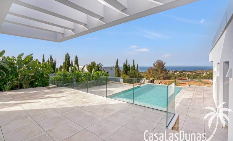 Villa de lujo a estrenar con impresionantes vistas al mar, rodeada de naturaleza y lindando con el Parque Natural del Montgó. La casa está construida con los mejores materiales del mercado y acabados de alta calidad, cuidando cada detalle, cuidadosamente pensado y diseñado por profesionales. La villa, con una superficie total de 295 m², se distribuye en dos plantas de la siguiente manera: Planta baja: amplio salón-comedor, cocina de diseño abierta equipada con electrodomésticos de última generación, dormitorio principal con baño en suite y vestidor, dos dormitorios y un baño completo. En esta planta, el salón, la cocina y los dormitorios tienen acceso directo a las terrazas y a la piscina. Desde esta planta también se accede a un amplio solárium con vistas panorámicas, desde donde se pueden disfrutar de espectaculares puestas de sol. El sótano cuenta con un espacio multifuncional que puede utilizarse como dormitorio, sala de fitness o home cinema, con un proyector preinstalado, un dormitorio adicional, un baño completo, un lavadero, una sala de máquinas y un amplio garaje. Esta villa está construida y equipada con tecnología de última generación y tiene una calificación energética A. Cuenta con calefacción por suelo radiante con aerotermia, sistema de recuperación de calor, aire acondicionado central con conductos de frío y calor y termostatos en cada estancia, persianas eléctricas, alarma, controles termostáticos electrónicos en los baños de la planta baja que permiten regular la temperatura y el caudal de agua, y preinstalación de persianas motorizadas. En el exterior, sobre una parcela de 850 m², podrás disfrutar de amplias terrazas, una piscina infinity de 8x4 m con iluminación LED a elegir entre 4 colores diferentes, y un precioso jardín con riego automático que requiere un mantenimiento mínimo.