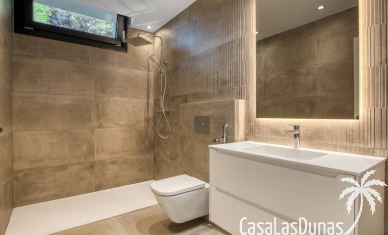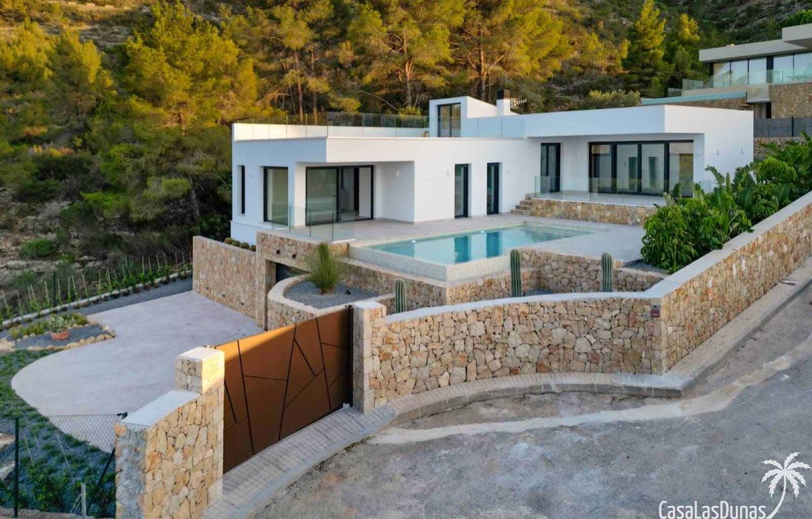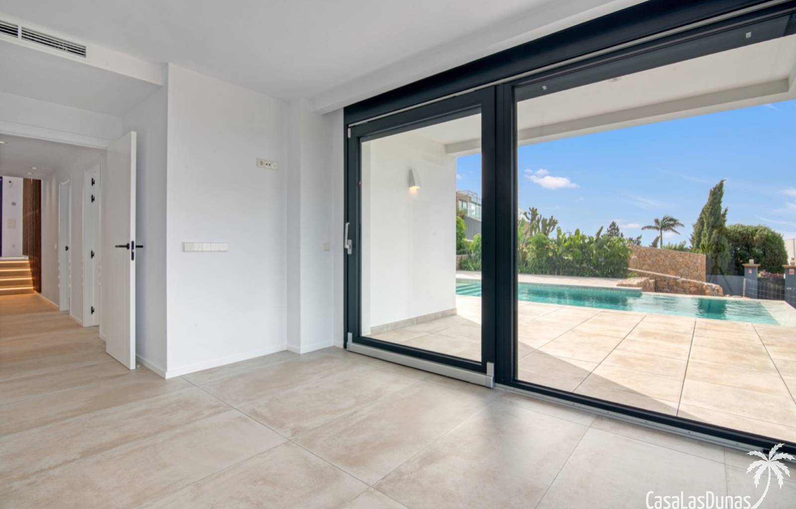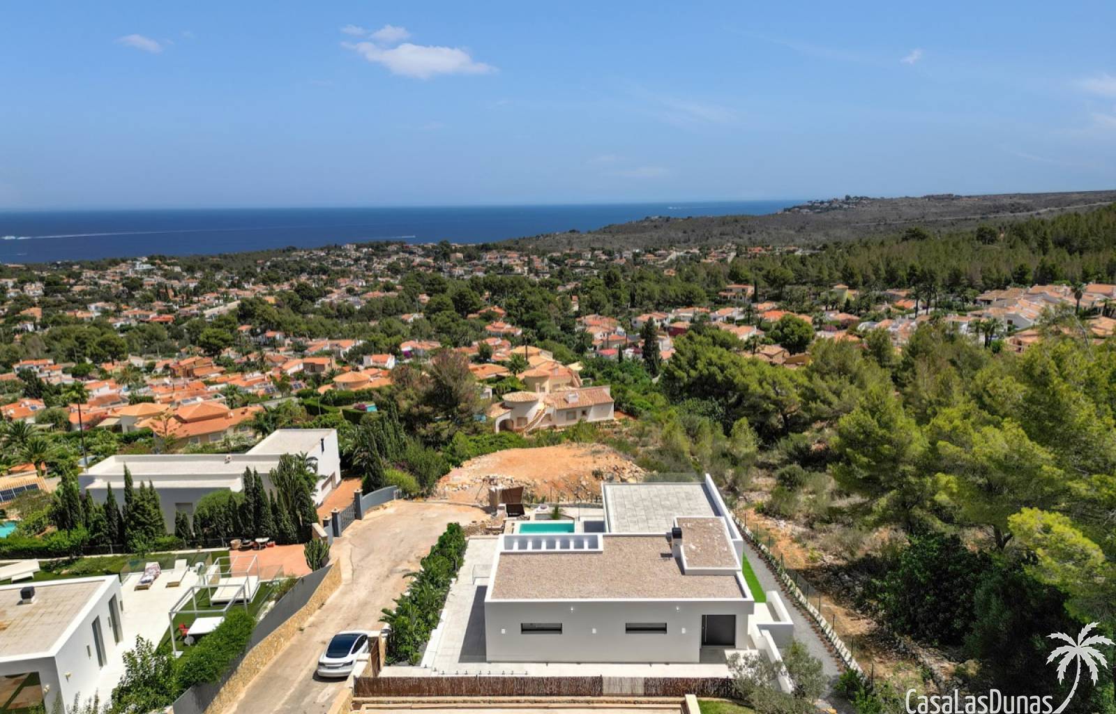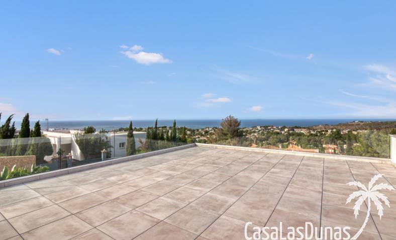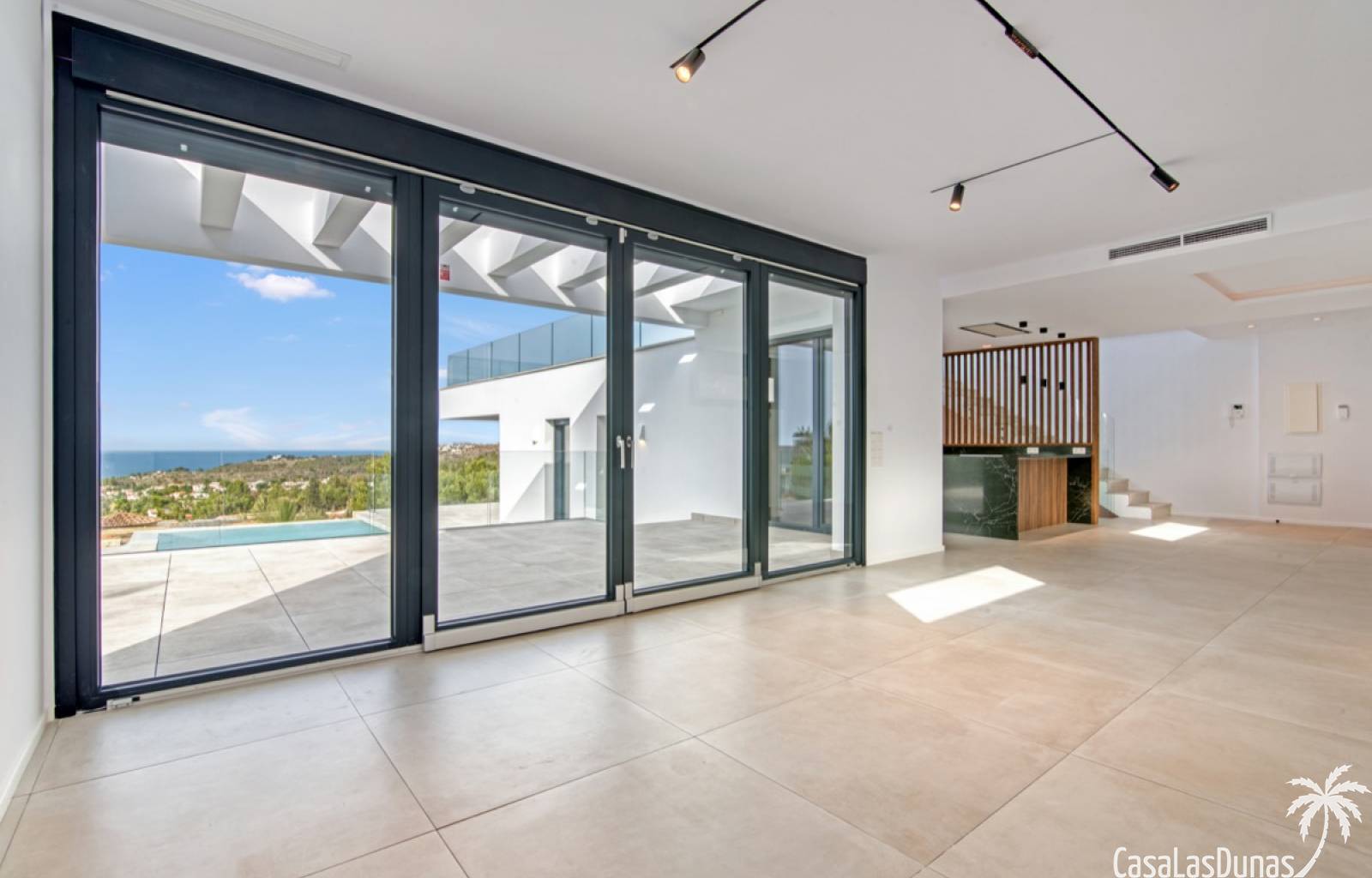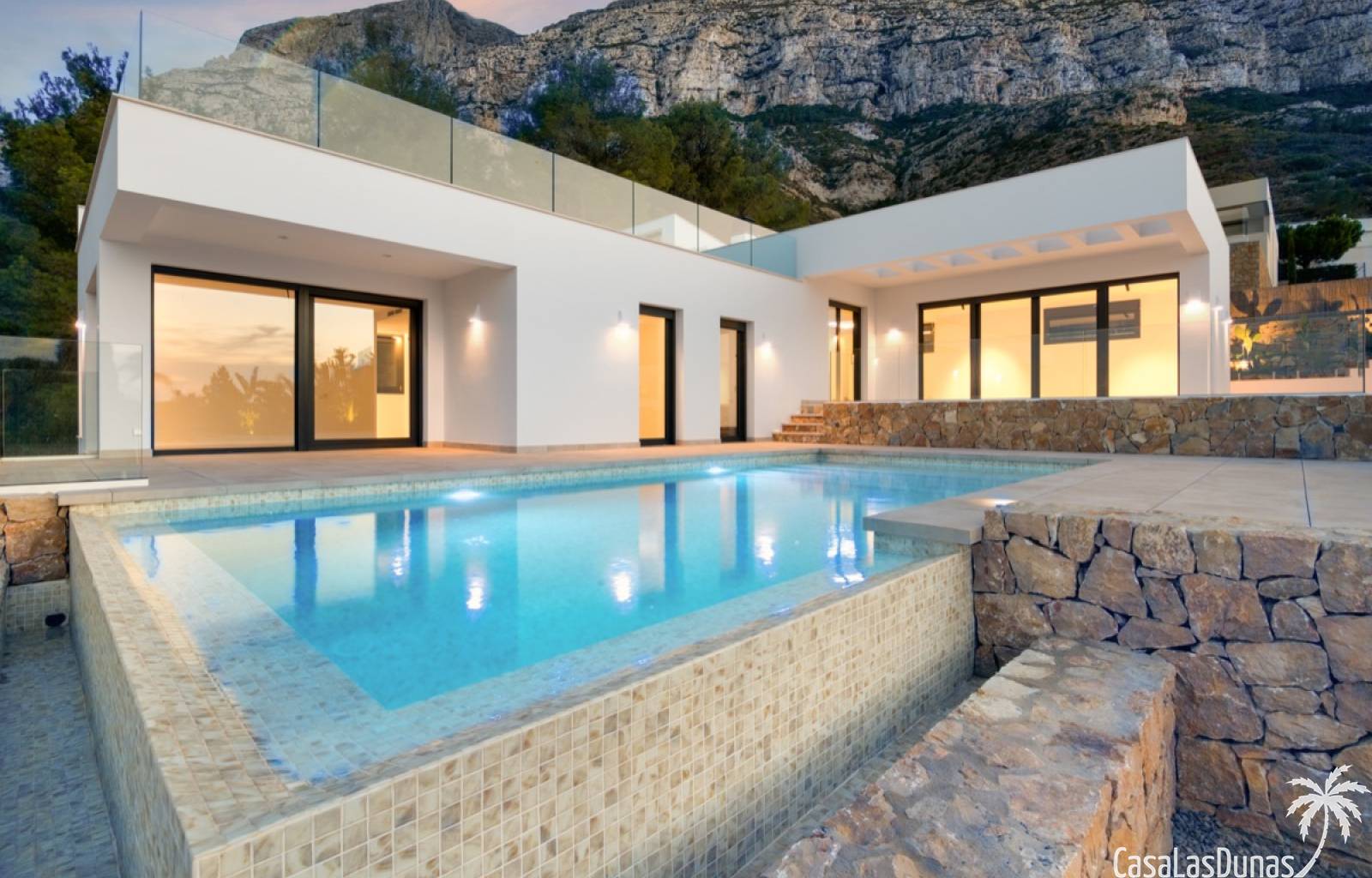 Villa de lujo a estrenar con impresionantes vistas al mar, rodeada de naturaleza y lindando con el Parque Natural del Montgó. La casa está construida con los mejores materiales del mercado y acabados de alta calidad, cuidando cada detalle, cuidadosamente pensado y diseñado por profesionales. La villa, con una superficie total de 295 m², se distribuye en dos plantas de la siguiente manera: Planta baja: amplio salón-comedor, cocina de diseño abierta equipada con electrodomésticos de última generación, dormitorio principal con baño en suite y vestidor, dos dormitorios y un baño completo. En esta planta, el salón, la cocina y los dormitorios tienen acceso directo a las terrazas y a la piscina. Desde esta planta también se accede a un amplio solárium con vistas panorámicas, desde donde se pueden disfrutar de espectaculares puestas de sol. El sótano cuenta con un espacio multifuncional que puede utilizarse como dormitorio, sala de fitness o home cinema, con un proyector preinstalado, un dormitorio adicional, un baño completo, un lavadero, una sala de máquinas y un amplio garaje. Esta villa está construida y equipada con tecnología de última generación y tiene una calificación energética A. Cuenta con calefacción por suelo radiante con aerotermia, sistema de recuperación de calor, aire acondicionado central con conductos de frío y calor y termostatos en cada estancia, persianas eléctricas, alarma, controles termostáticos electrónicos en los baños de la planta baja que permiten regular la temperatura y el caudal de agua, y preinstalación de persianas motorizadas. En el exterior, sobre una parcela de 850 m², podrás disfrutar de amplias terrazas, una piscina infinity de 8x4 m con iluminación LED a elegir entre 4 colores diferentes, y un precioso jardín con riego automático que requiere un mantenimiento mínimo.