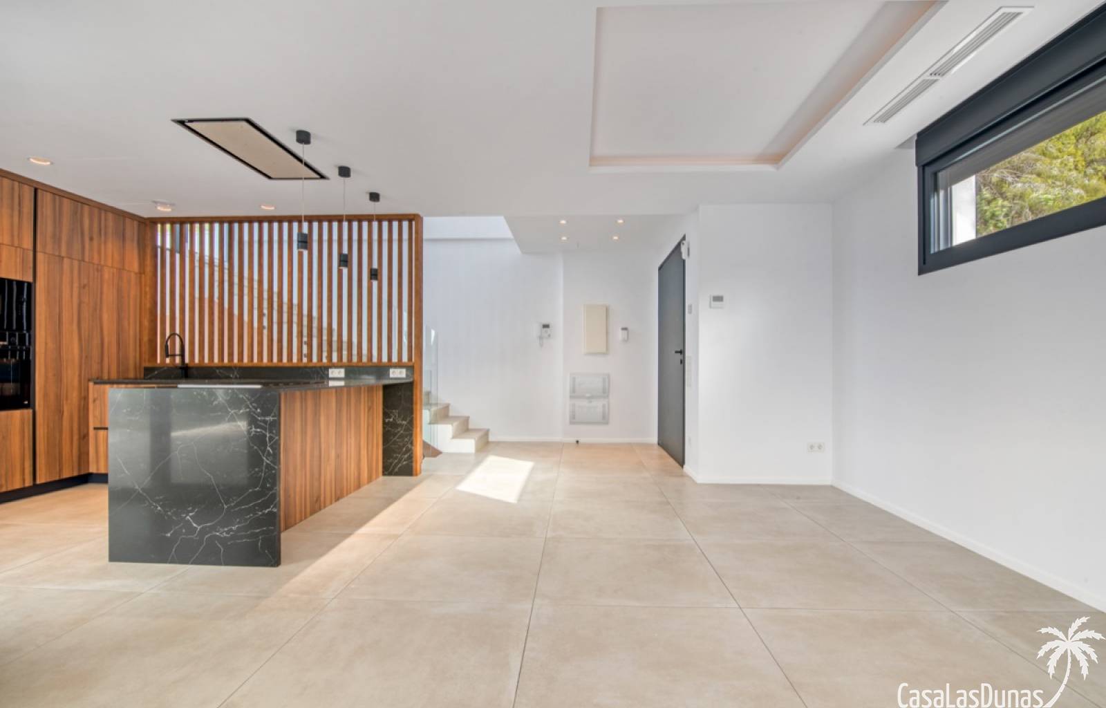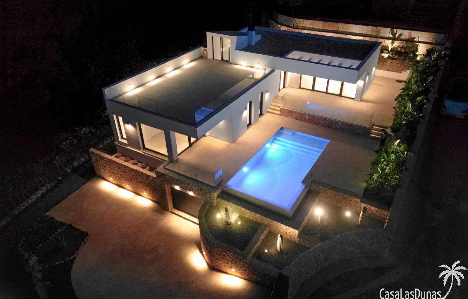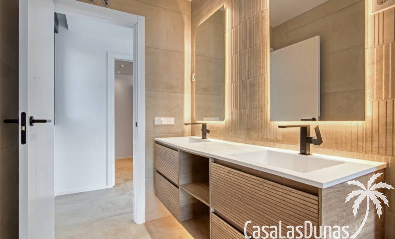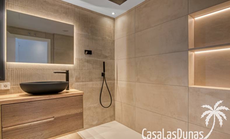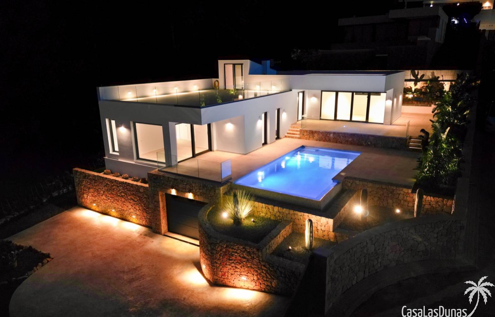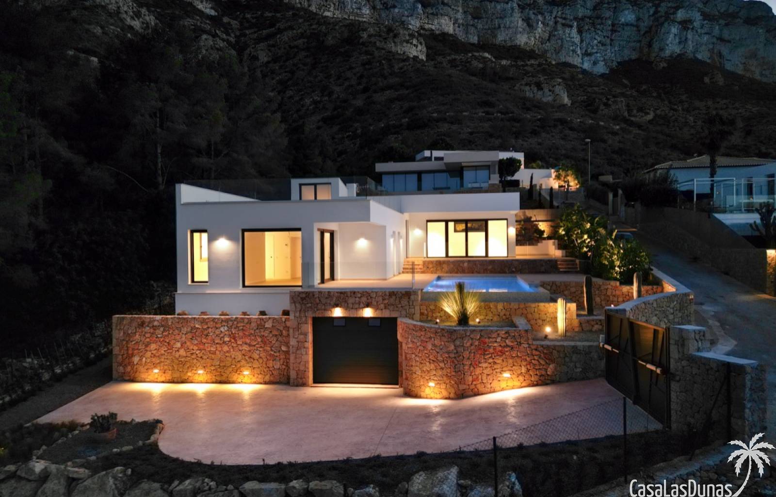 Villa de lujo a estrenar con impresionantes vistas al mar, rodeada de naturaleza y lindando con el Parque Natural del Montgó. La casa está construida con los mejores materiales del mercado y acabados de alta calidad, cuidando cada detalle, cuidadosamente pensado y diseñado por profesionales. La villa, con una superficie total de 295 m², se distribuye en dos plantas de la siguiente manera: Planta baja: amplio salón-comedor, cocina de diseño abierta equipada con electrodomésticos de última generación, dormitorio principal con baño en suite y vestidor, dos dormitorios y un baño completo. En esta planta, el salón, la cocina y los dormitorios tienen acceso directo a las terrazas y a la piscina. Desde esta planta también se accede a un amplio solárium con vistas panorámicas, desde donde se pueden disfrutar de espectaculares puestas de sol. El sótano cuenta con un espacio multifuncional que puede utilizarse como dormitorio, sala de fitness o home cinema, con un proyector preinstalado, un dormitorio adicional, un baño completo, un lavadero, una sala de máquinas y un amplio garaje. Esta villa está construida y equipada con tecnología de última generación y tiene una calificación energética A. Cuenta con calefacción por suelo radiante con aerotermia, sistema de recuperación de calor, aire acondicionado central con conductos de frío y calor y termostatos en cada estancia, persianas eléctricas, alarma, controles termostáticos electrónicos en los baños de la planta baja que permiten regular la temperatura y el caudal de agua, y preinstalación de persianas motorizadas. En el exterior, sobre una parcela de 850 m², podrás disfrutar de amplias terrazas, una piscina infinity de 8x4 m con iluminación LED a elegir entre 4 colores diferentes, y un precioso jardín con riego automático que requiere un mantenimiento mínimo.