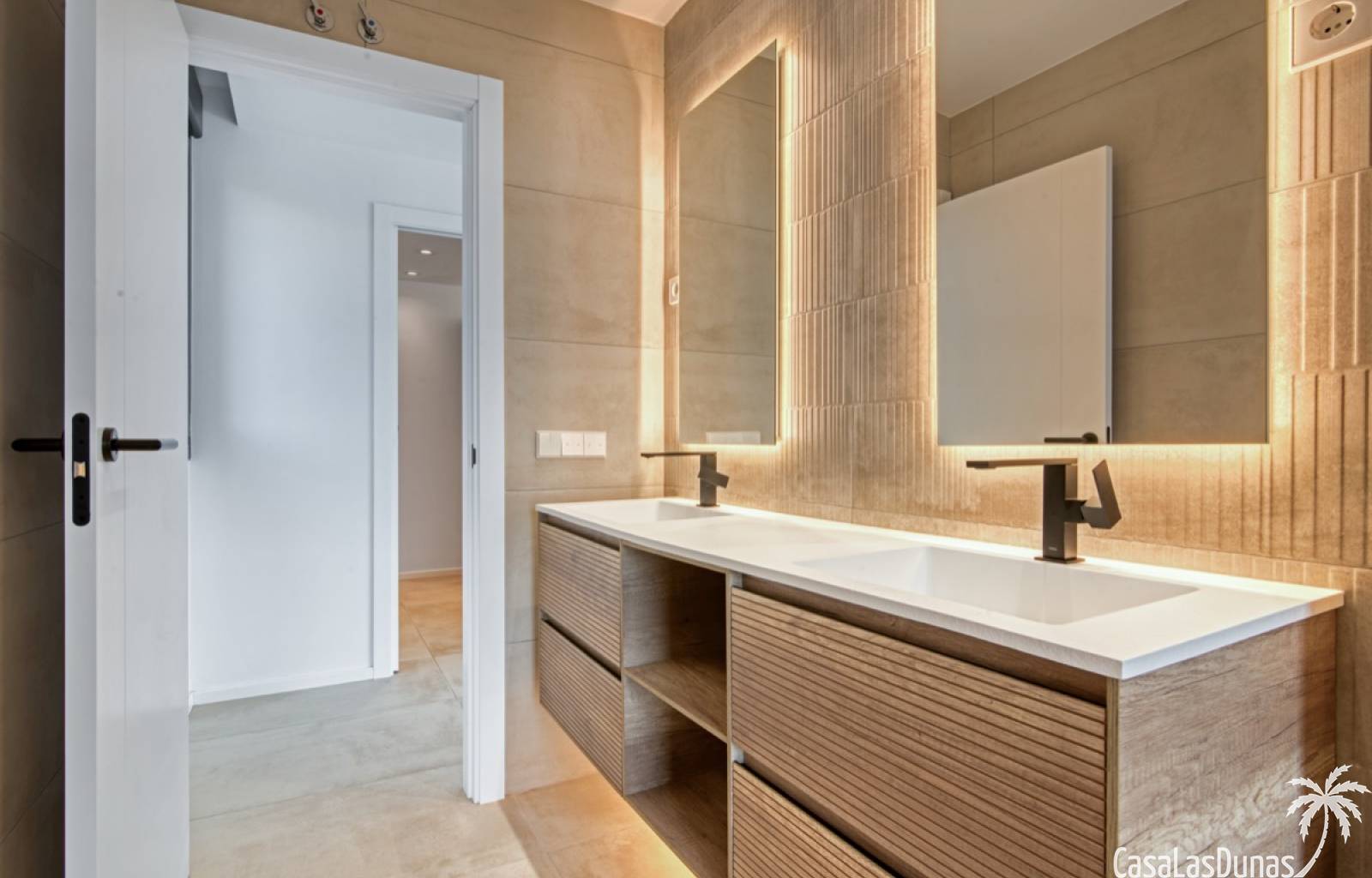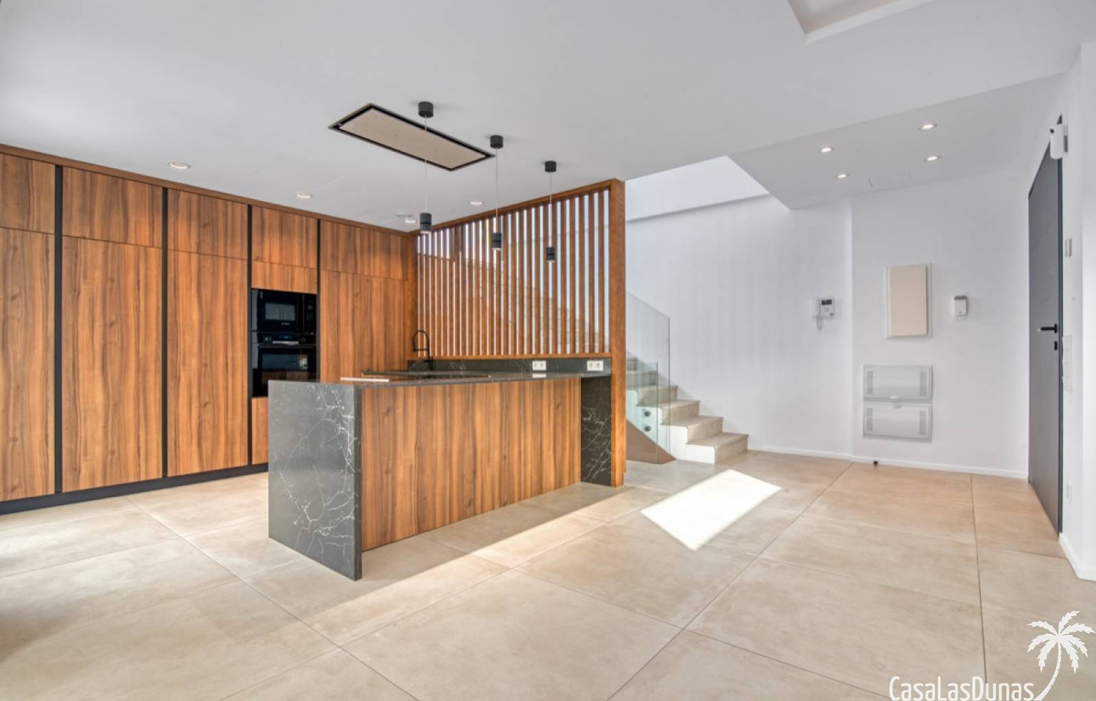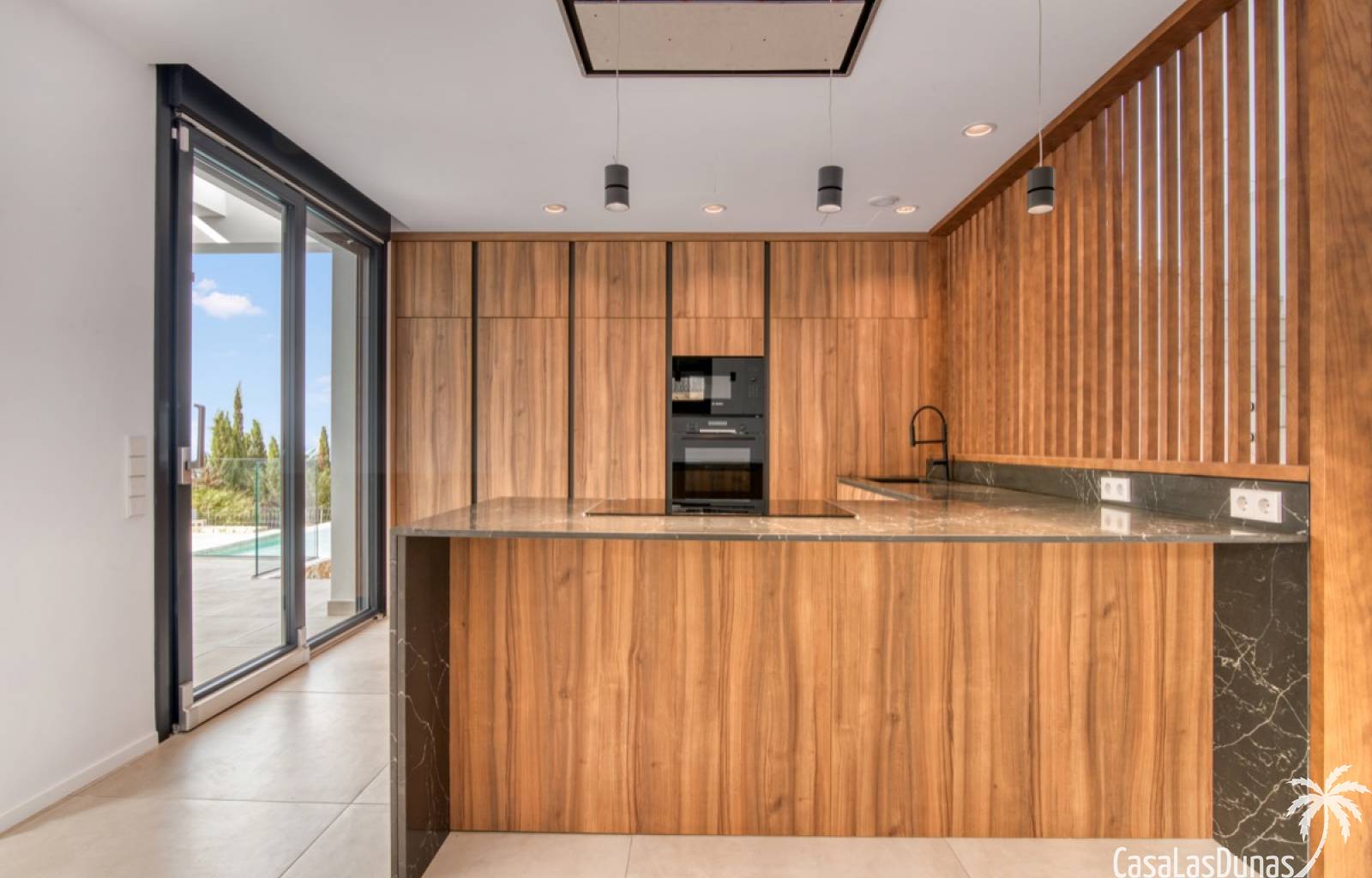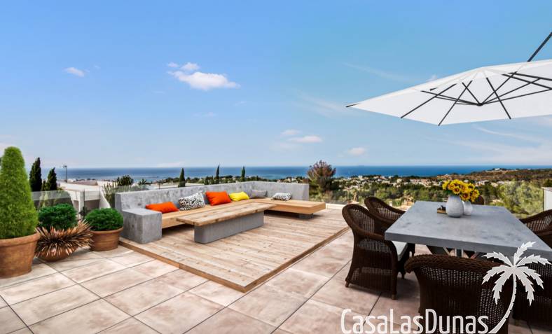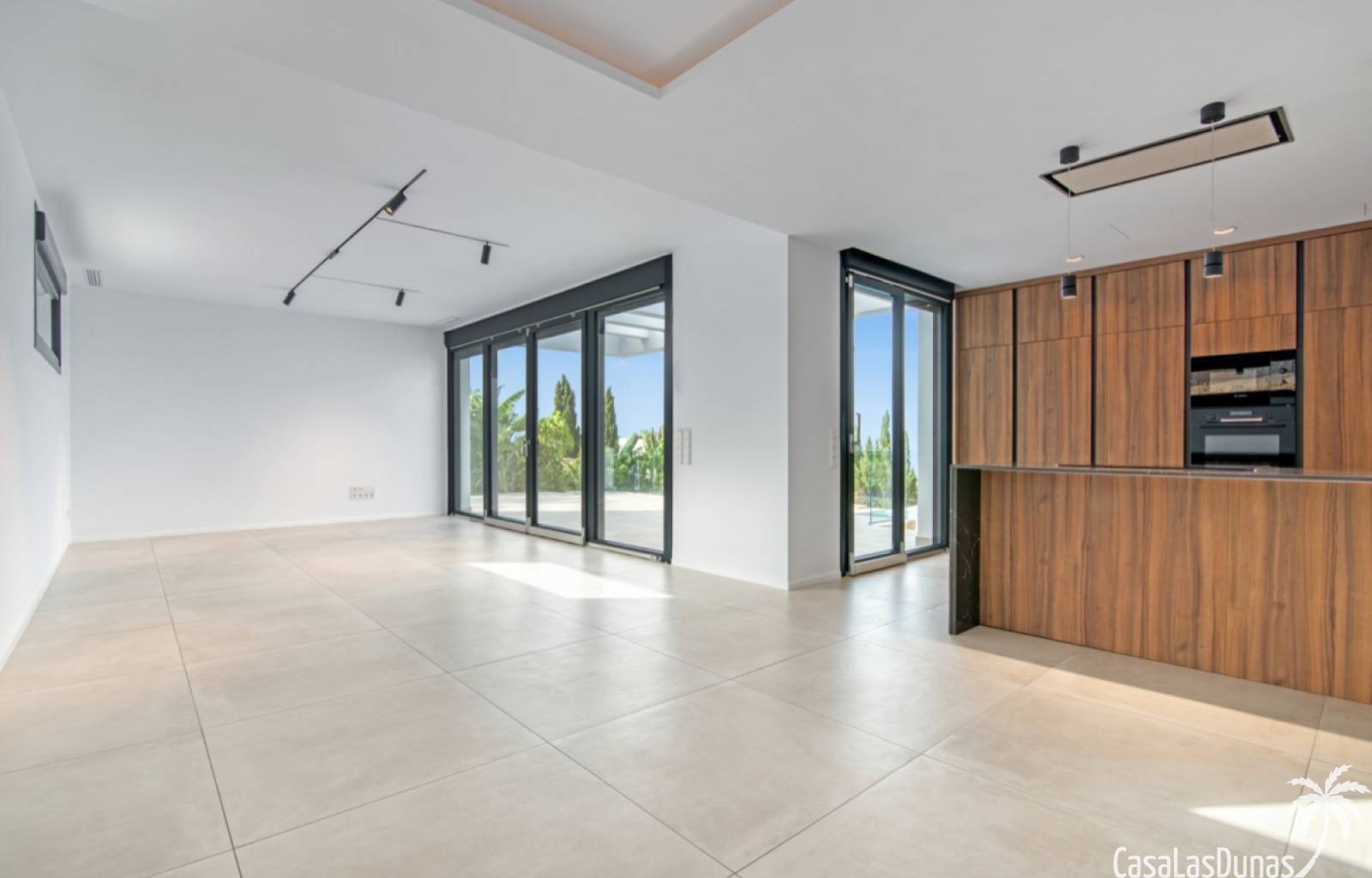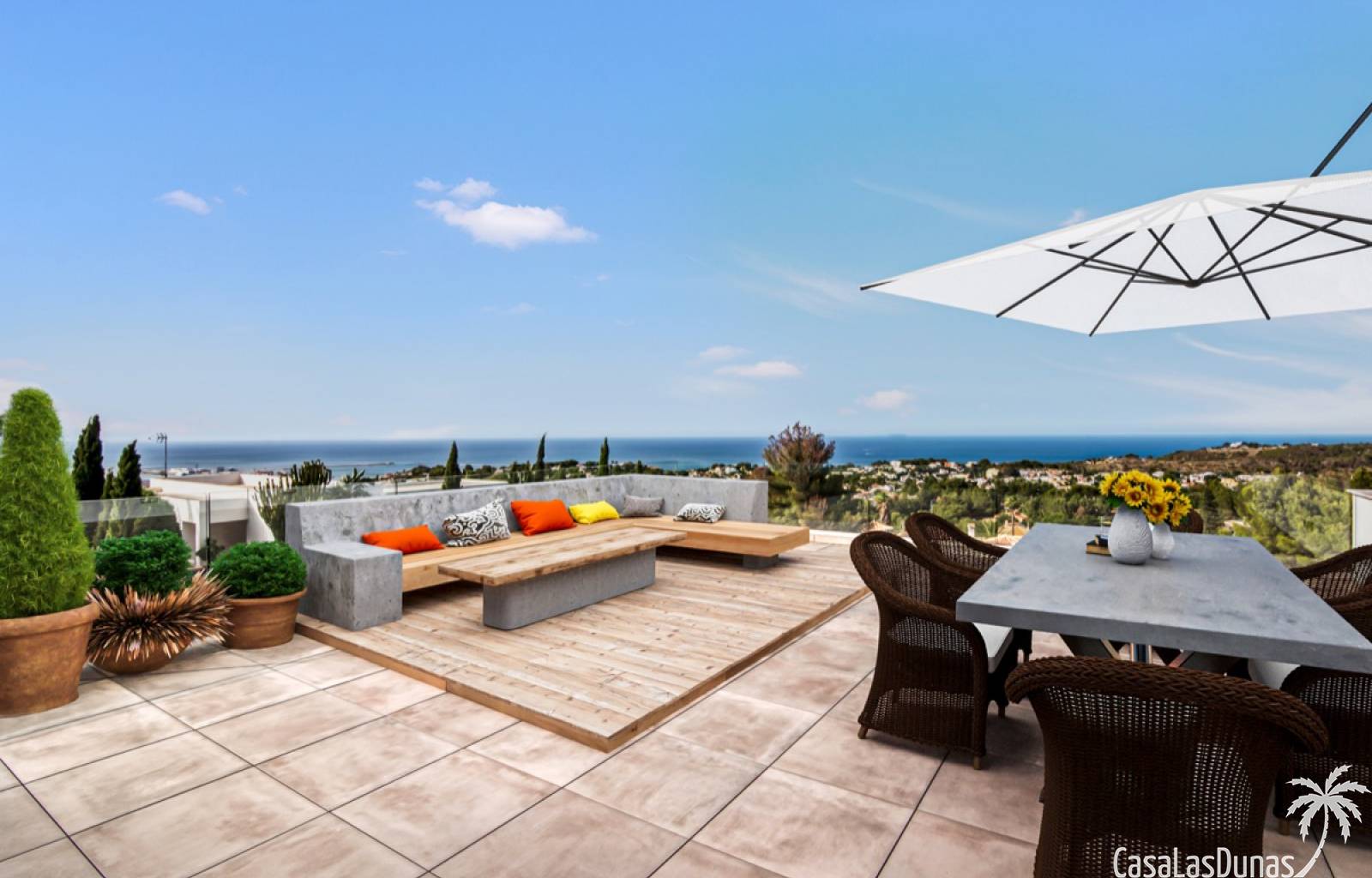 Villa de lujo a estrenar con impresionantes vistas al mar, rodeada de naturaleza y lindando con el Parque Natural del Montgó. La casa está construida con los mejores materiales del mercado y acabados de alta calidad, cuidando cada detalle, cuidadosamente pensado y diseñado por profesionales. La villa, con una superficie total de 295 m², se distribuye en dos plantas de la siguiente manera: Planta baja: amplio salón-comedor, cocina de diseño abierta equipada con electrodomésticos de última generación, dormitorio principal con baño en suite y vestidor, dos dormitorios y un baño completo. En esta planta, el salón, la cocina y los dormitorios tienen acceso directo a las terrazas y a la piscina. Desde esta planta también se accede a un amplio solárium con vistas panorámicas, desde donde se pueden disfrutar de espectaculares puestas de sol. El sótano cuenta con un espacio multifuncional que puede utilizarse como dormitorio, sala de fitness o home cinema, con un proyector preinstalado, un dormitorio adicional, un baño completo, un lavadero, una sala de máquinas y un amplio garaje. Esta villa está construida y equipada con tecnología de última generación y tiene una calificación energética A. Cuenta con calefacción por suelo radiante con aerotermia, sistema de recuperación de calor, aire acondicionado central con conductos de frío y calor y termostatos en cada estancia, persianas eléctricas, alarma, controles termostáticos electrónicos en los baños de la planta baja que permiten regular la temperatura y el caudal de agua, y preinstalación de persianas motorizadas. En el exterior, sobre una parcela de 850 m², podrás disfrutar de amplias terrazas, una piscina infinity de 8x4 m con iluminación LED a elegir entre 4 colores diferentes, y un precioso jardín con riego automático que requiere un mantenimiento mínimo.
