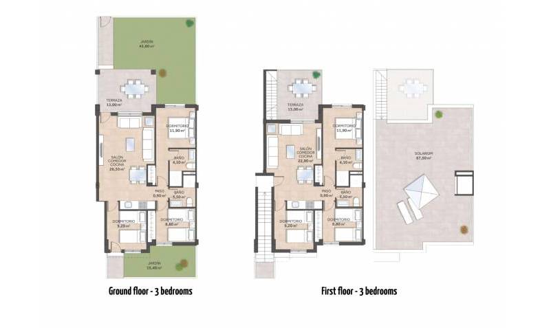 "Este proyecto está disponible opcionalmente con un plano que permite un tercer dormitorio".