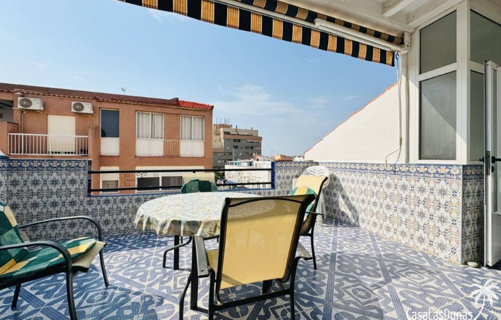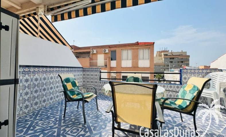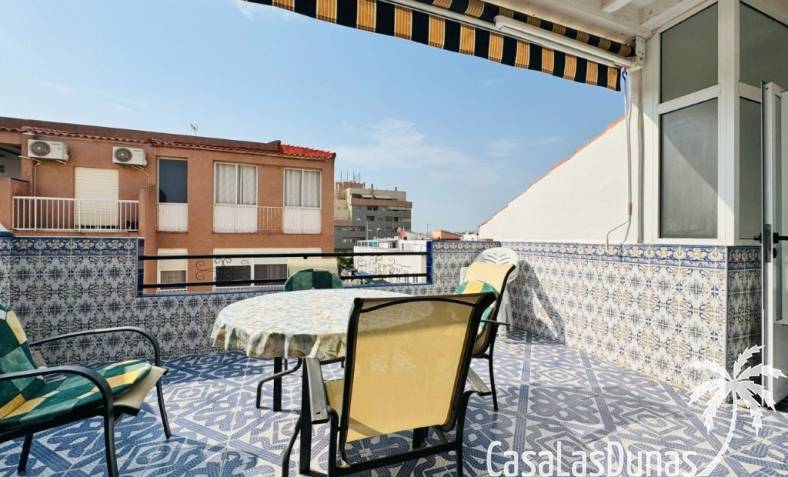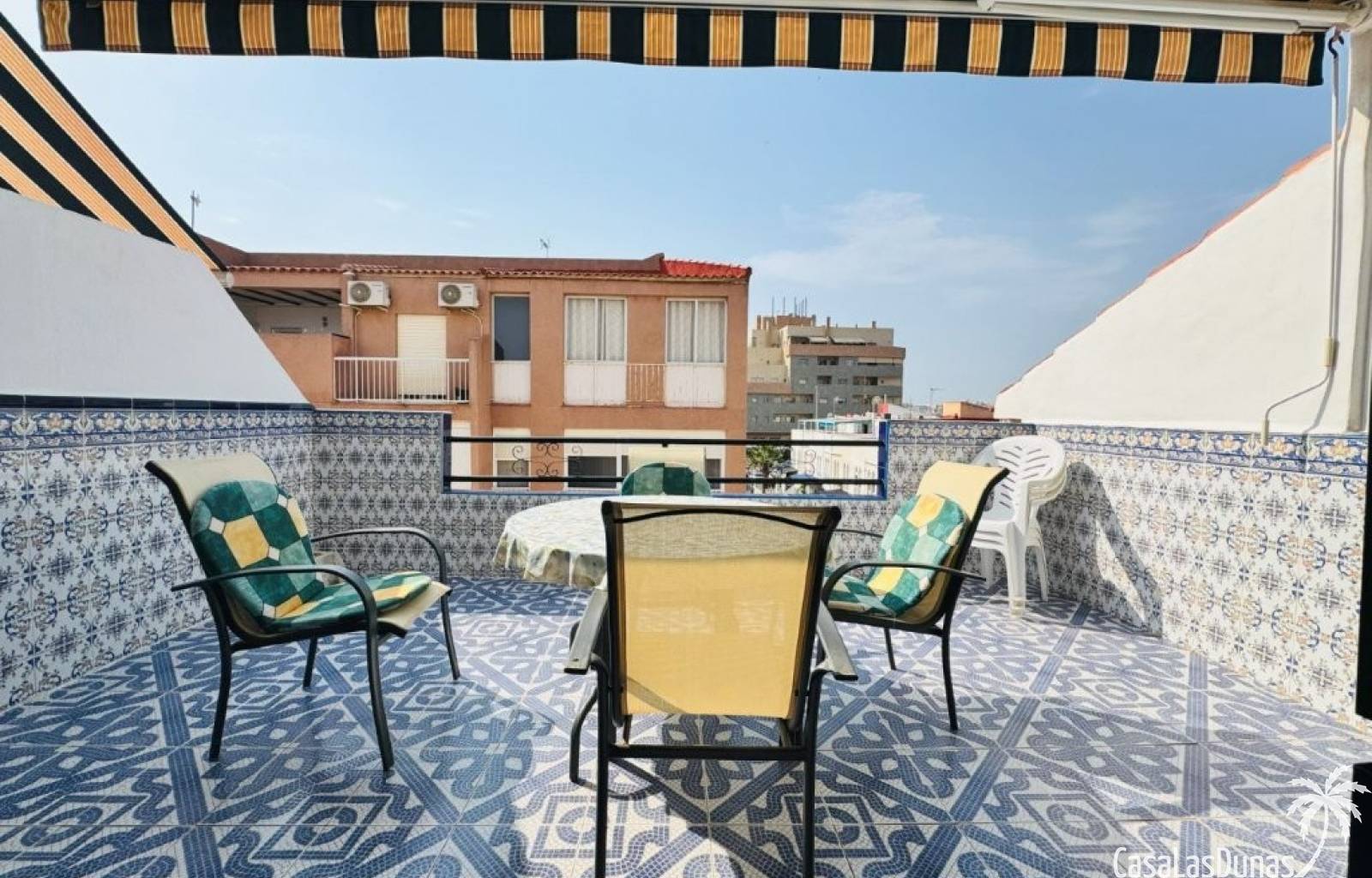 Es una vivienda situada en el pueblo de La Mata, a tan solo 300 metros de la playa centro, junto a todos los servicios. Se trata de un ático situado en la 3ª planta del edificio, con una amplia terraza y orientación Sur. Tiene una superficie de 60 m2 construidos distribuidos en 2 habitaciones, salón comedor, cocina, 1 baño completo y una amplia terraza. No tiene ascensor. La vivienda está impecable, baño y cocina reformados. Para entrar a vivir. Comunidad: 165 € al año Ibi: 155 €