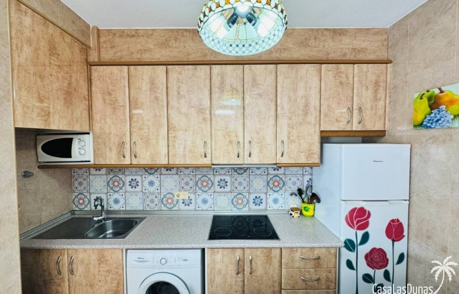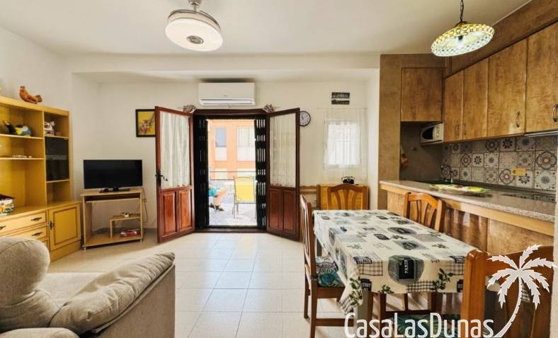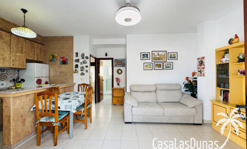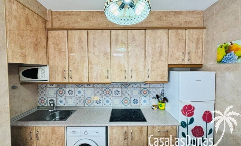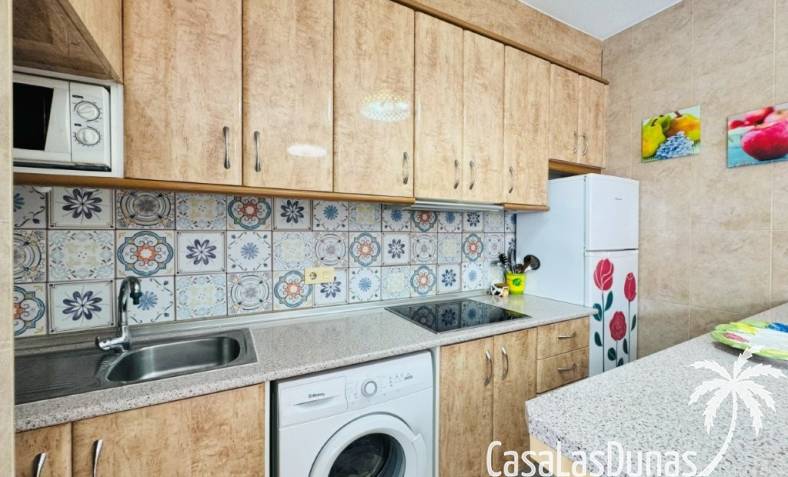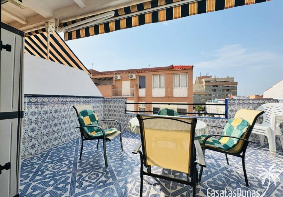 Es una vivienda situada en el pueblo de La Mata, a tan solo 300 metros de la playa centro, junto a todos los servicios. Se trata de un ático situado en la 3ª planta del edificio, con una amplia terraza y orientación Sur. Tiene una superficie de 60 m2 construidos distribuidos en 2 habitaciones, salón comedor, cocina, 1 baño completo y una amplia terraza. No tiene ascensor. La vivienda está impecable, baño y cocina reformados. Para entrar a vivir. Comunidad: 165 € al año Ibi: 155 €