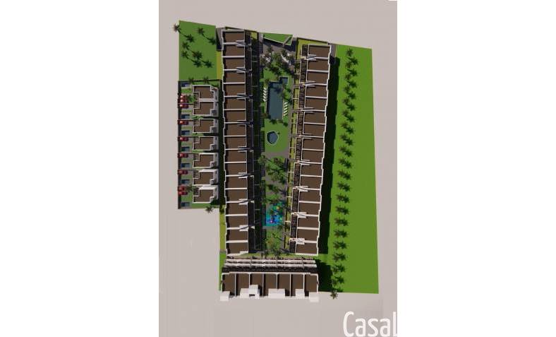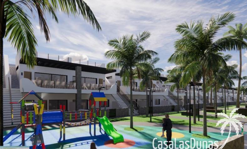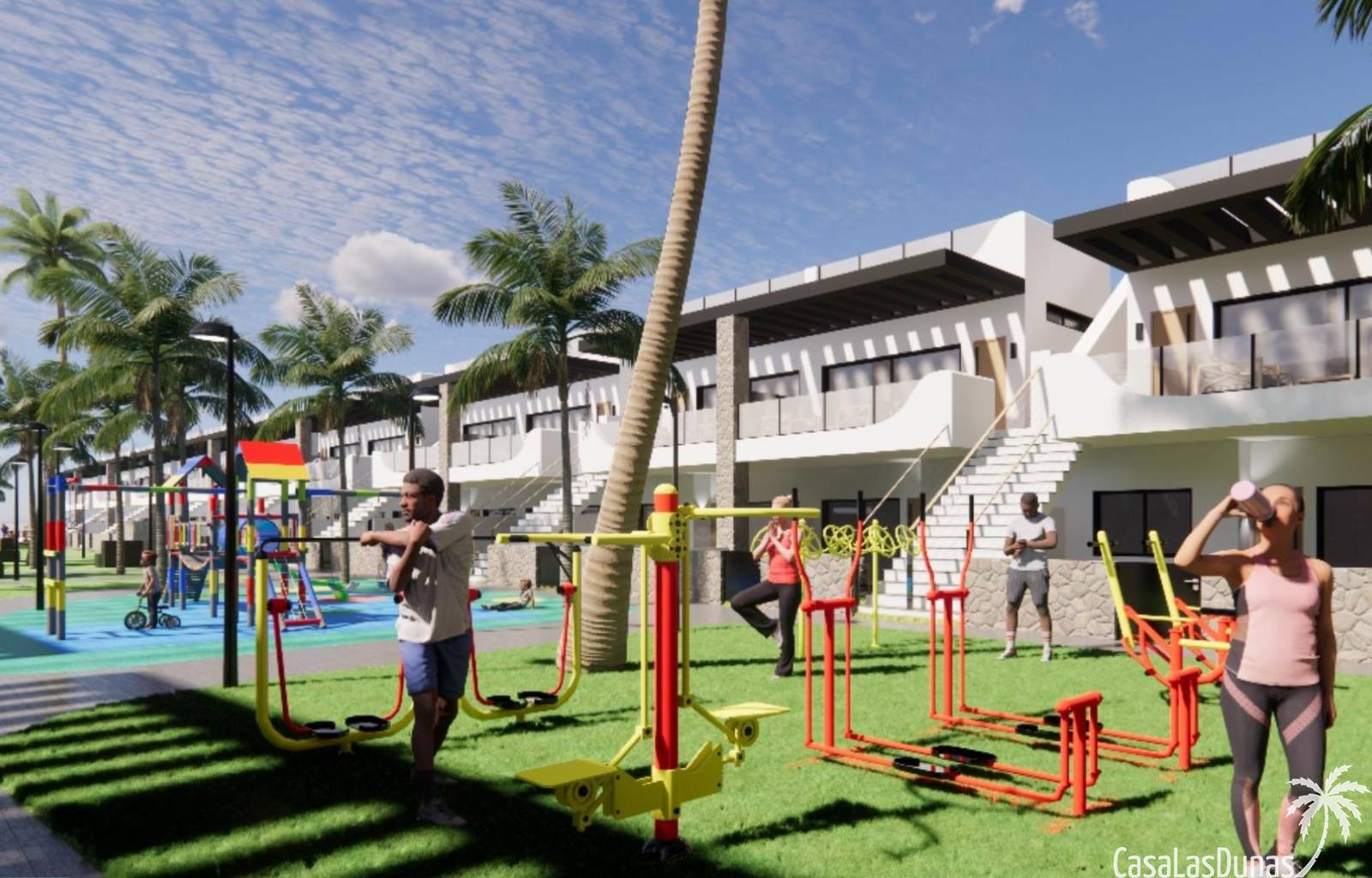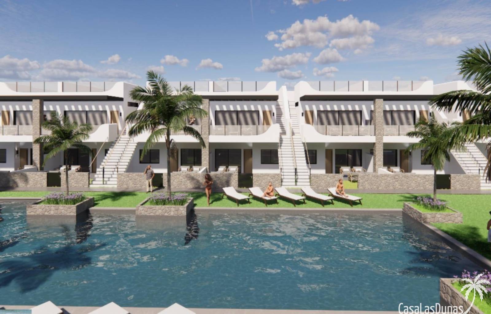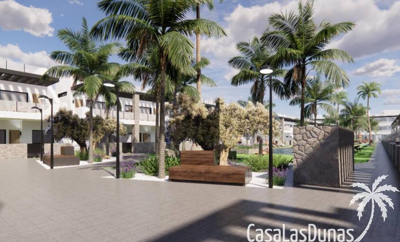Modernos 94 bungalows y apartamentos de 2 y 3 dormitorios, 2 baños, cocina americana con amplio salón, armarios empotrados.