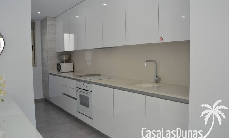 El luminoso salón se integra a la perfección con la cocina americana totalmente equipada, que incluye lavavajillas, horno, microondas, frigorífico/congelador y cafetera Nespresso. Grandes puertas correderas de cristal conectan el salón con el jardín, donde podrá disfrutar de una zona exterior privada y vallada con piscina, ducha exterior, tumbonas y una cómoda zona de estar. Hay aparcamiento disponible en la propiedad, tras una puerta cerrada con llave.