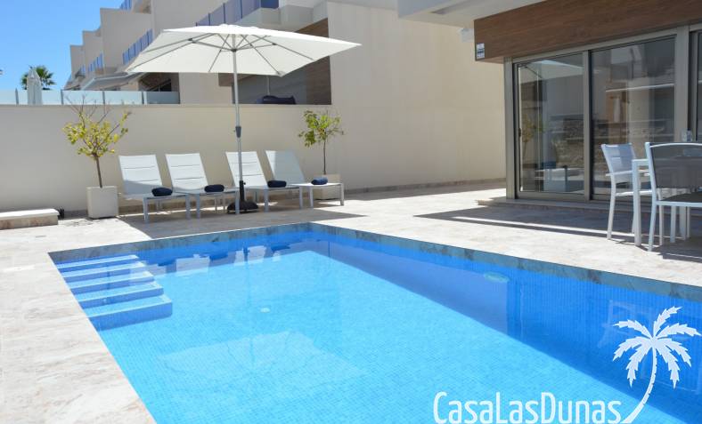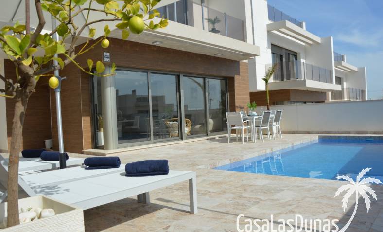 Esta elegante villa de 3 dormitorios y 3 baños ofrece comodidad, privacidad y acabados de alta calidad. Un dormitorio y un baño se encuentran en la planta baja, lo que la convierte en una propiedad ideal como residencia principal o para alojar a huéspedes de todas las edades.
