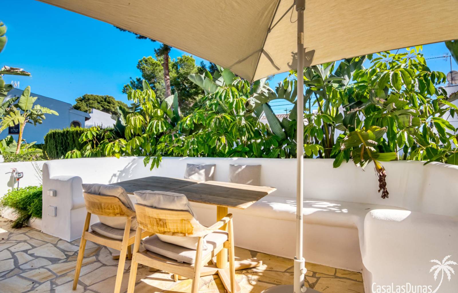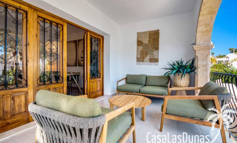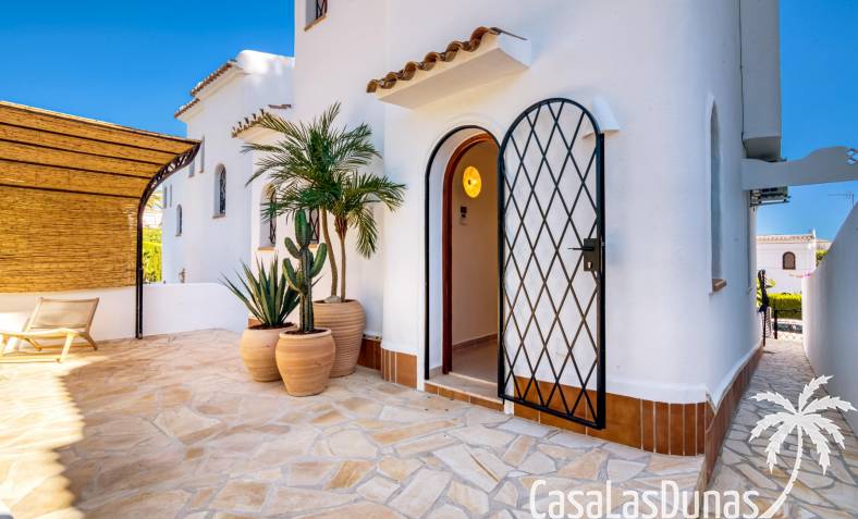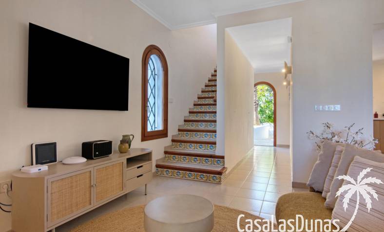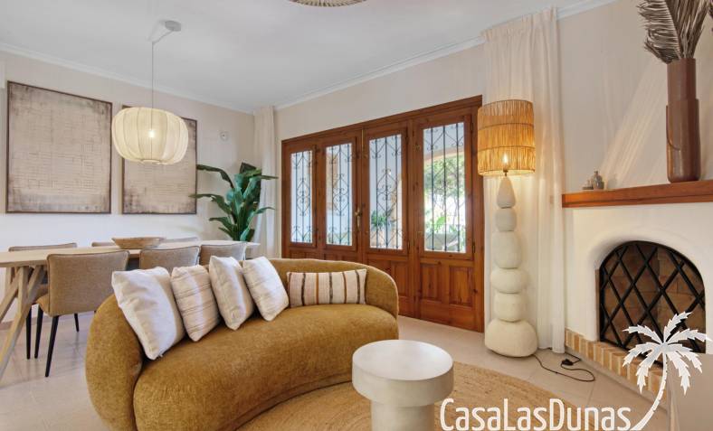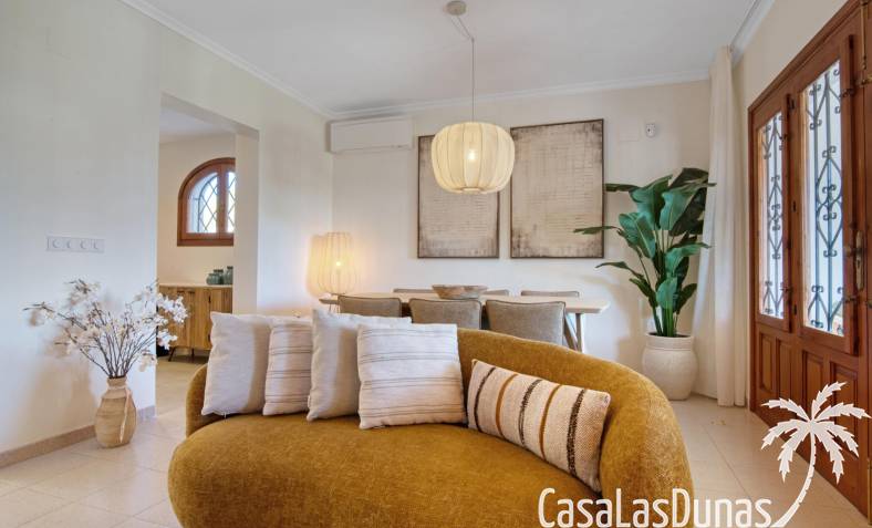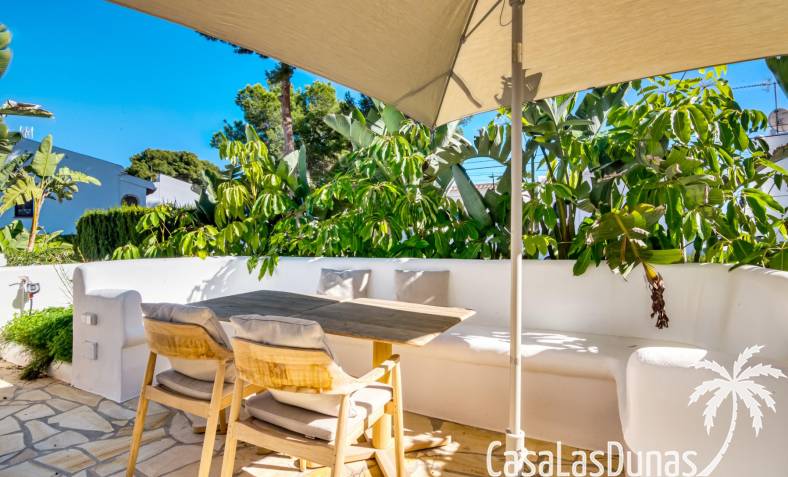 Descubre esta encantadora casa independiente recientemente reformada, ubicada a solo unos pasos de la playa y a un corto paseo del vibrante centro de Moraira. Con una distribución en dos plantas, esta vivienda ofrece un recibidor con aseo de cortesia, una moderna cocina que se abre al salón-comedor con chimenea. Desde aquí, se accede a una terraza cubierta y otra soleada, perfectas para relajarte bajo el sol.