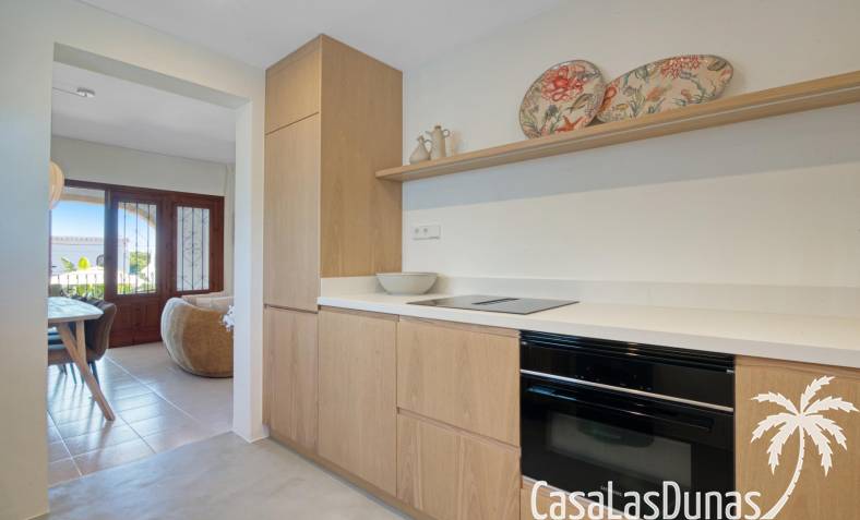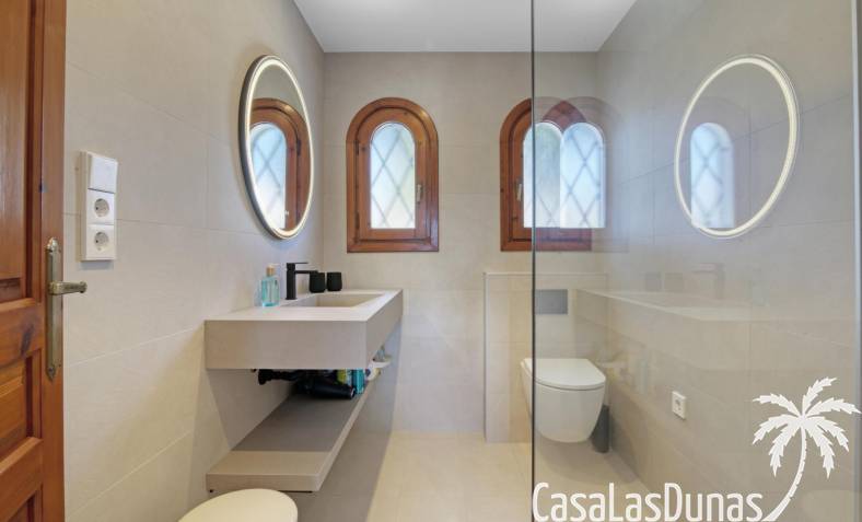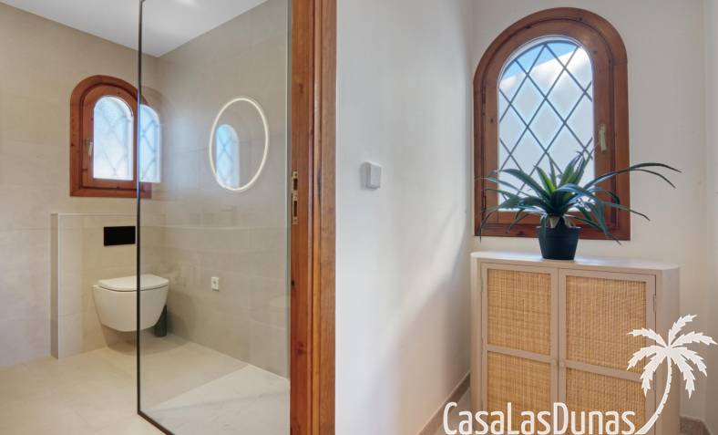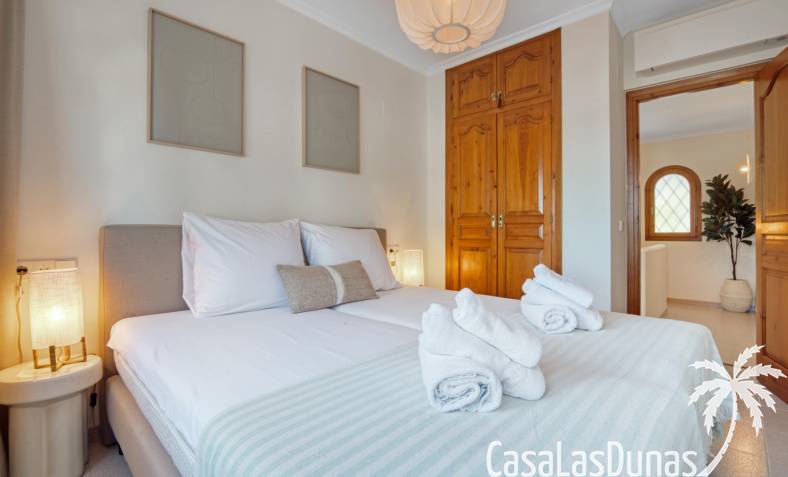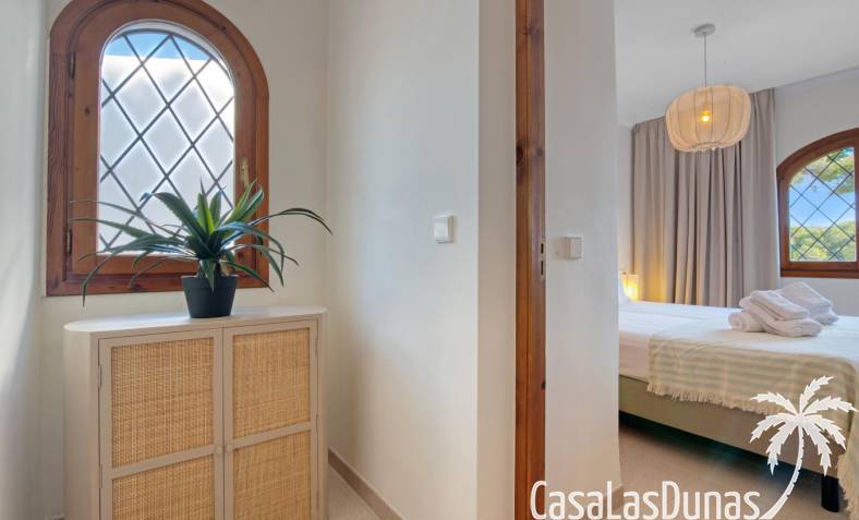 En la primera planta, hay dos cómodos dormitorios que cuentan con armarios empotrados y un baño moderno con ducha. Además, el balcón ofrece impresionantes vistas al mar, creando un ambiente perfecto para disfrutar de las puestas de sol. Con varias terrazas alrededor de la casa, tendrás múltiples espacios para disfrutar del aire libre y del clima cálido durante todo el año.