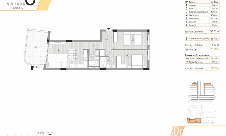 Este edificio residencial ofrece una cuidada selección de apartamentos de dos y tres habitaciones, incluyendo elegantes áticos, algunos con solárium privado. Todas las unidades presentan una arquitectura moderna y planos de planta abiertos y funcionales con amplias terrazas y cocinas americanas contemporáneas con acceso al exterior.
