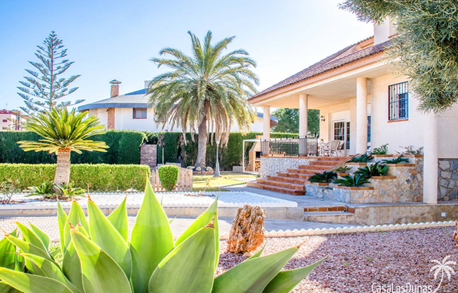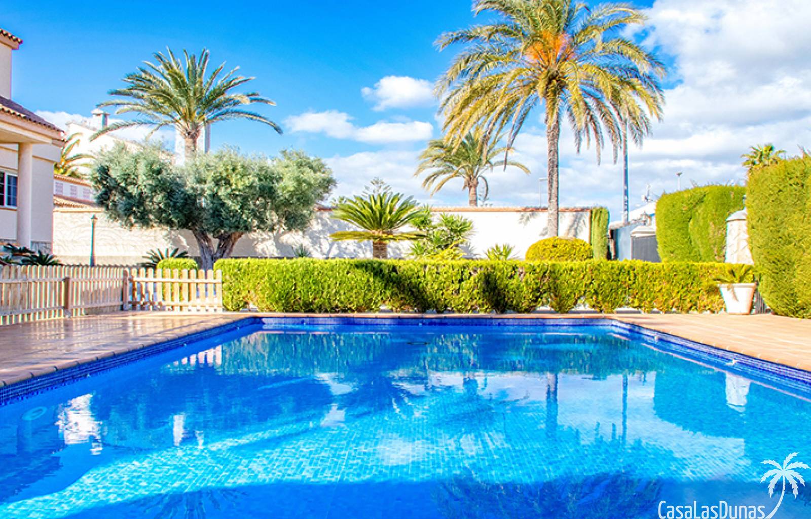 Tenemos en venta esta villa de lujo con parcela de 1.000 m2 y piscina privada. La casa está situada cerca del mar en Orihuela Costa y se encuentra en la popular zona de Mil Palmeras, a solo 200 metros de la playa. Esta vivienda consta de 2 plantas y tiene 2 salones grandes, cocina independiente, amplio comedor, terraza con vistas a la piscina, 4 dormitorios y 3 baños. La vivienda dispone de una biblioteca, sala de billar con barra, lavandería, lavadero, garaje y se vende “lista para entrar". Esta propiedad ofrece muchos árboles hermosos, zona de barbacoa y recreación, plaza de aparcamiento abierto.Las playas de Costa Blanca están a poca distancia de esta propiedad, así como todos los servicios, como supermercados, farmacias, bancos, etc. Nuestros lujosos campos de golf también se encuentran a poca distancia en auto.Esta propiedad está cerca de todos los servicios, preciosa zona de Mil Palmeras y cerca de Torre de la Horadada, a menos de un minuto a pie de las playas de arena de la Costa Blanca Sur. Está a 10 minutos en coche de los campos de golf de Campoamor, Villamartín, Las Ramblas y Lo Romero y a 45 minutos del campo de golf La Manga. Bien conectado por la red de carreteras, los aeropuertos de Murcia y de Alicante están a 45 minutos cada uno.