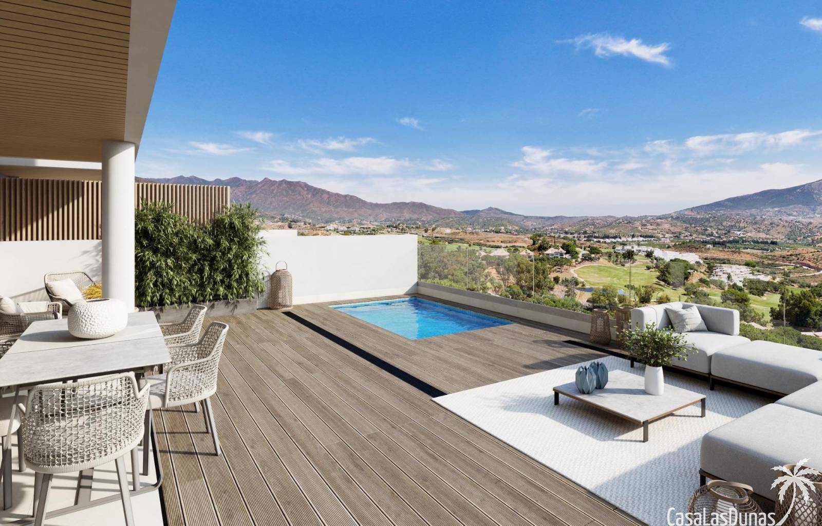 Este excepcional complejo residencial de nueva construcción está situado en primera línea del famoso complejo La Cala Golf Resort y ofrece vistas panorámicas al campo de golf y al mar en una de las zonas más codiciadas de la Costa del Sol. Situado en un tranquilo enclave natural, el complejo se encuentra a solo 5 km, unos 10 minutos en coche, de las playas de arena y el animado paseo marítimo de La Cala de Mijas. Esta privilegiada ubicación combina tranquilidad, naturaleza y fácil acceso a la vida costera.