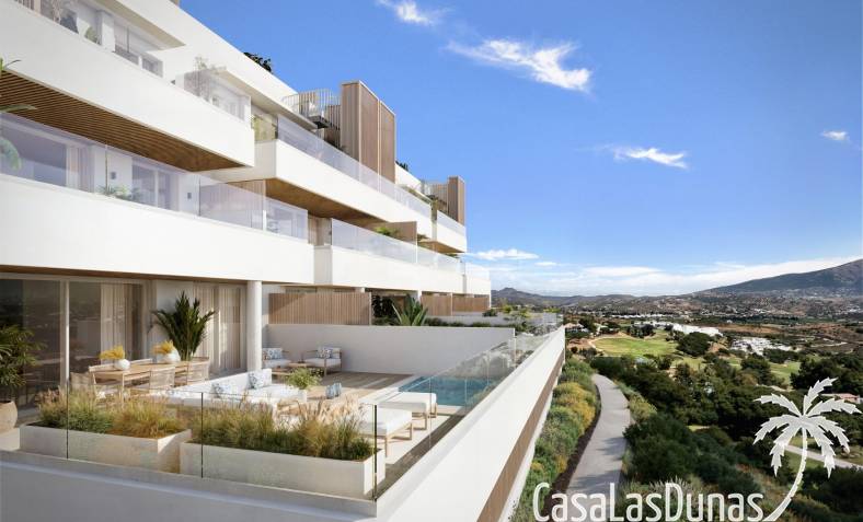 Apartamentos de nueva construcción frente al campo de golf con vistas al mar en La Cala de Mijas