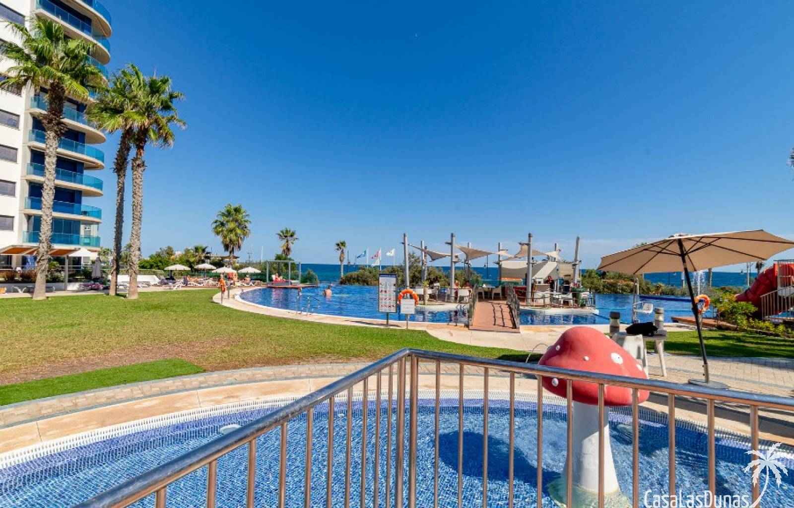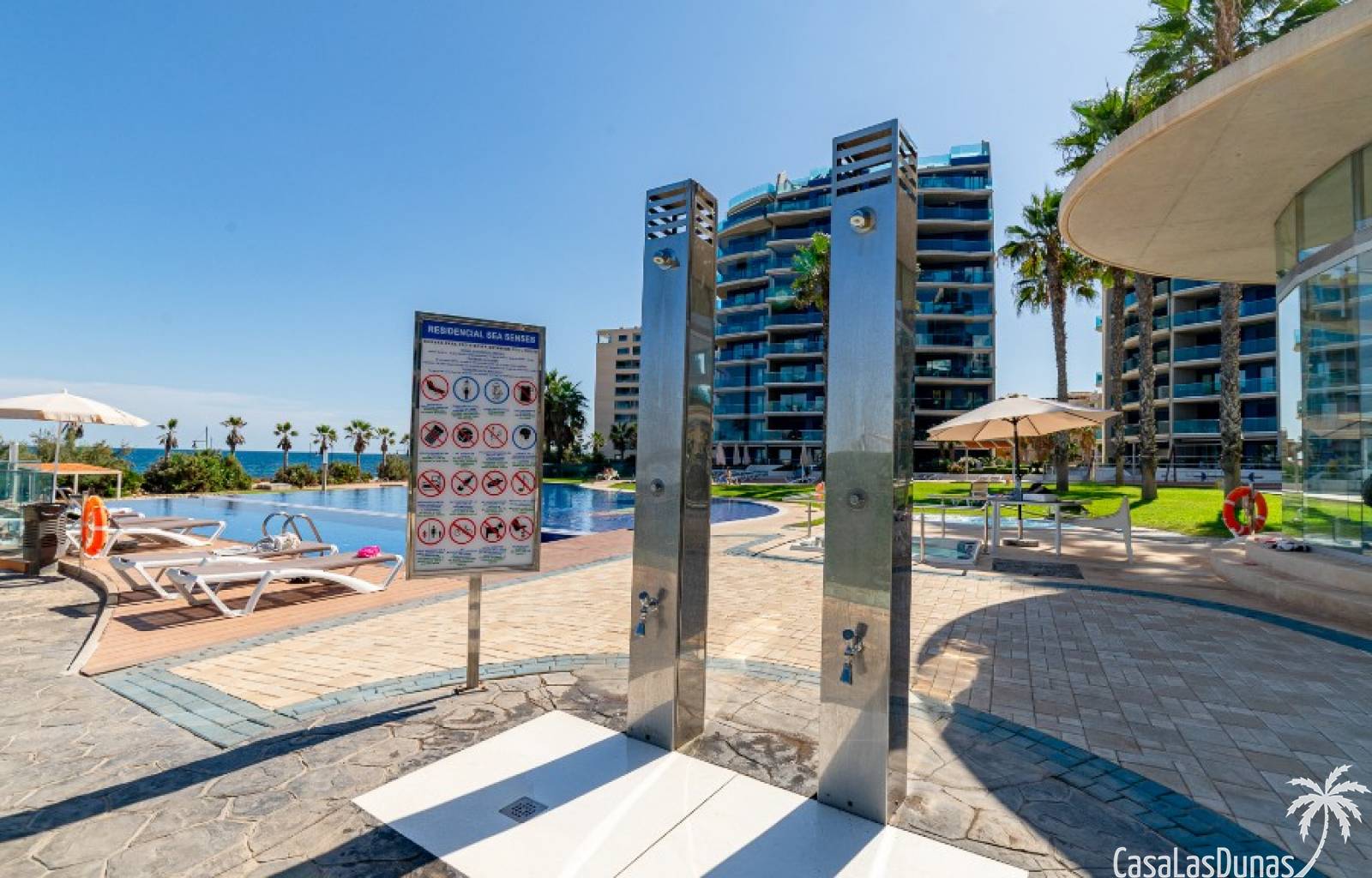 El complejo Sea Senses cuenta con una cuidada zona protegida con piscinas infinitas. Una de las piscinas está climatizada y la otra cuenta con jacuzzi, toboganes y una cama de masaje subacuático. Cerca hay una cafetería-isla Chill Out con dos bares y cafeterías. El complejo cuenta con pistas deportivas, gimnasio con vistas al mar, spa con saunas turca y finlandesa, parques infantiles con casitas y toboganes, mesas de ping pong, zona wifi y aparcamiento subterráneo.