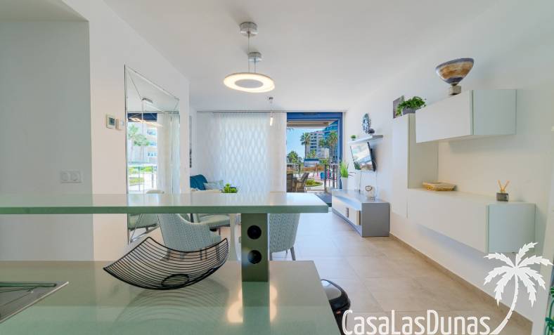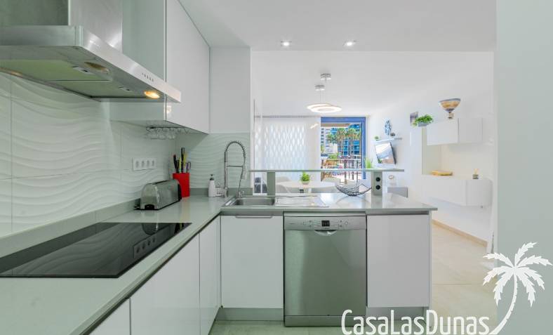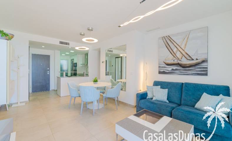 Este nuevo apartamento cuenta con una amplia terraza con impresionantes vistas. Dispone de 2 dormitorios con camas grandes, 2 baños, un amplio salón y una cocina americana.