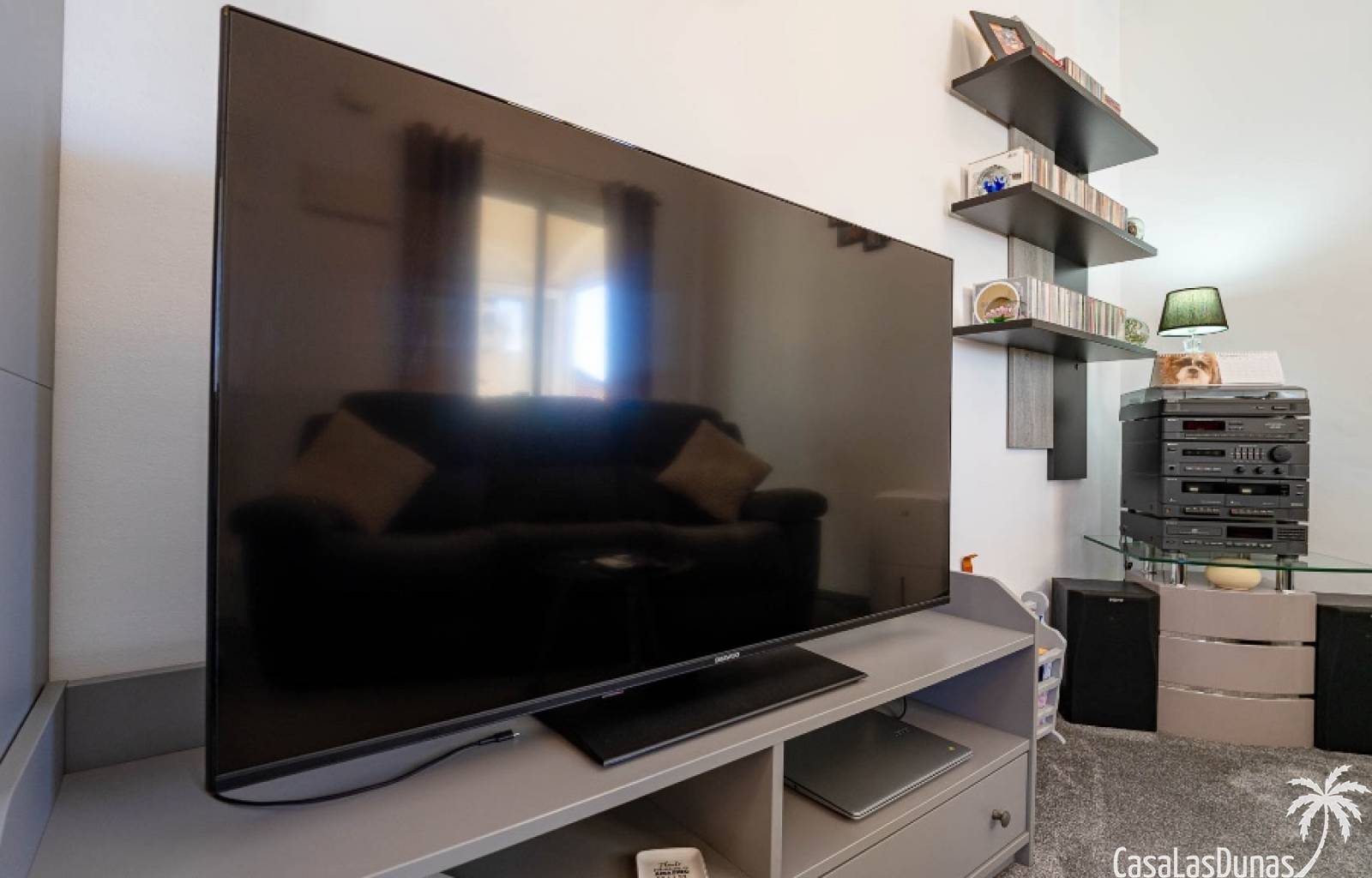 Se vende chalet de 2 dormitorios, 2 baños con orientación sur en Las Palmeras Los Altos. La villa consta de un sótano que cuenta con garaje y trastero. Esta zona podría ser fácilmente utilizado como un alojamiento adicional. La vivienda tiene una cocina moderna, salon , terraza soleada con toldo y solarium