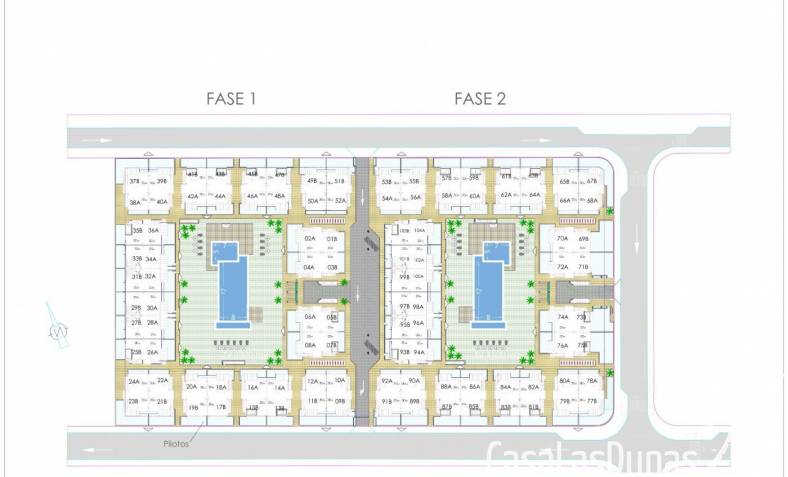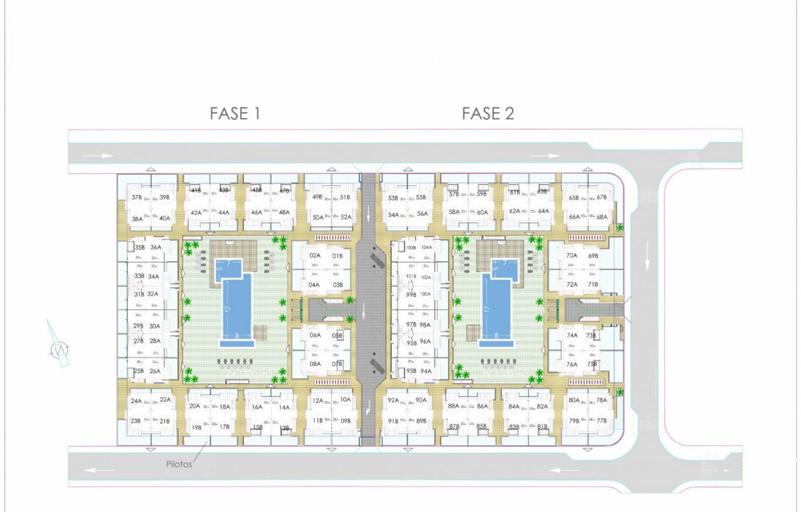 El complejo consta de 104 bungalows de 2 y 3 dormitorios, los bungalows de la última planta tienen solariums privados con vistas panorámicas a la laguna salada y los bungalows de la planta baja tienen grandes terrazas con vistas a la zona verde.