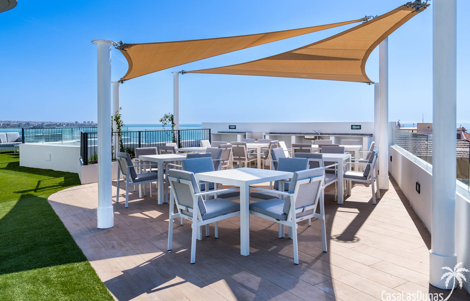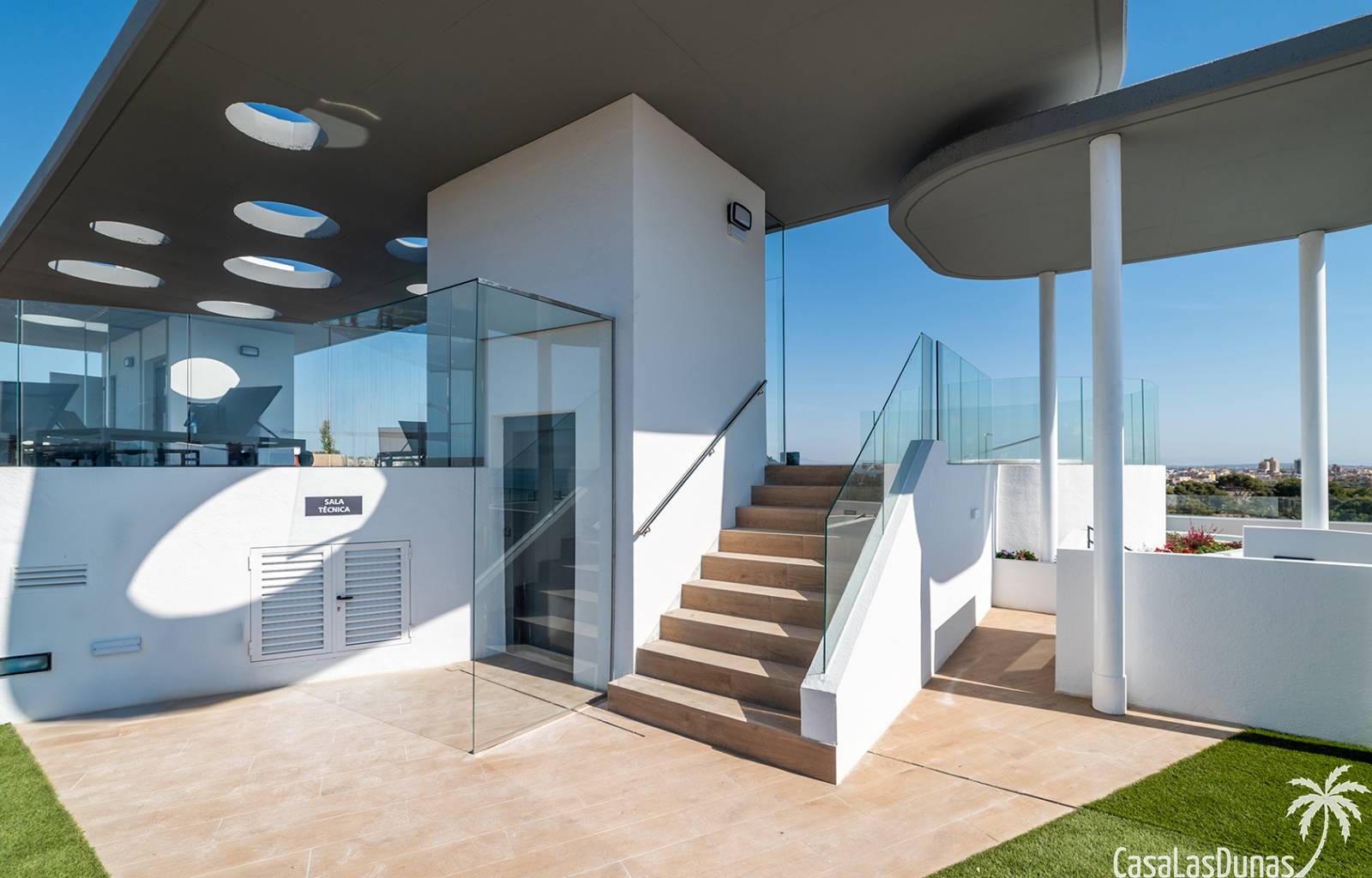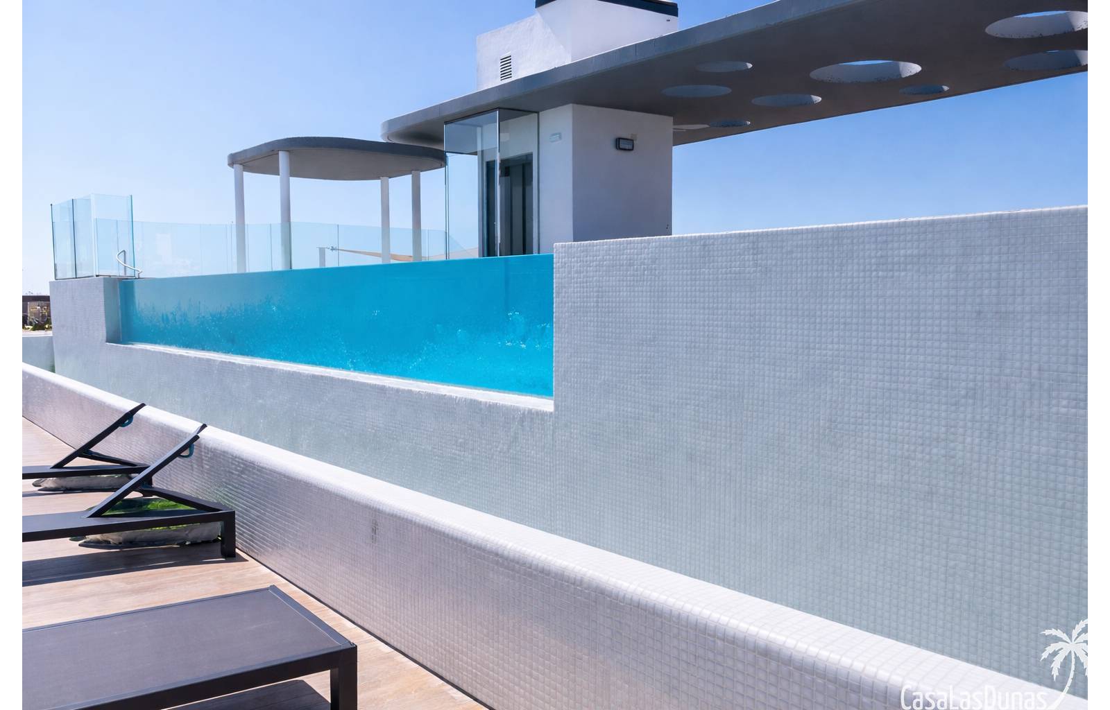 La azotea del complejo cuenta con una elegante zona comunitaria donde la relajación es el protagonista. Aquí podrá disfrutar de una piscina infinita con camas de agua, un jacuzzi y una acogedora zona chill-out. La vista panorámica de 360° garantiza amaneceres y atardeceres impresionantes. Las zonas comunes son modernas y están bien cuidadas, el edificio cuenta con ascensor y su ubicación cerca de la playa y de una reserva natural protegida hace que este proyecto sea aún más atractivo.
