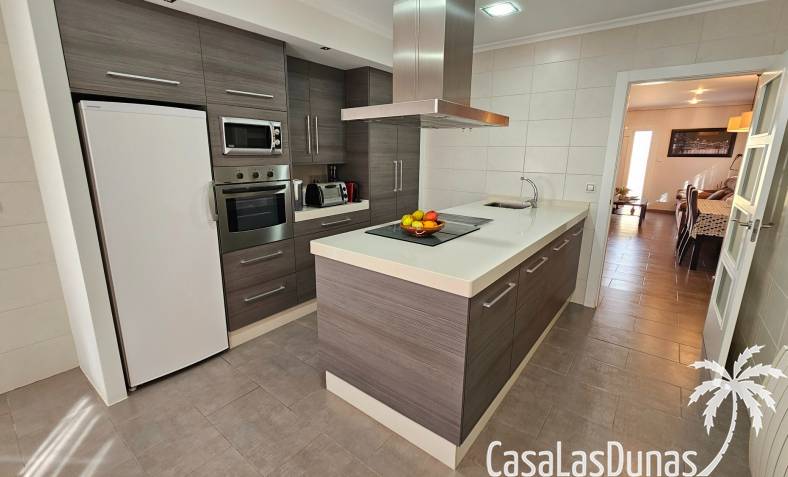 Junto a la cocina hay un pequeño lavadero con lavadora y congelador. En esta misma planta hay un dormitorio con vestidor. Una elegante escalera conduce a la primera planta, donde se encuentran otros dos amplios dormitorios y un amplio baño. La casa siempre ha estado en muy buen estado, por lo que se encuentra en excelentes condiciones. Se vende completamente amueblada, excepto efectos personales. ¿Le interesa esta propiedad y le gustaría visitarla? ¡Contáctenos pronto!