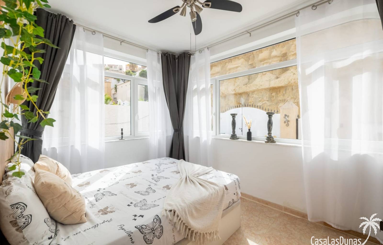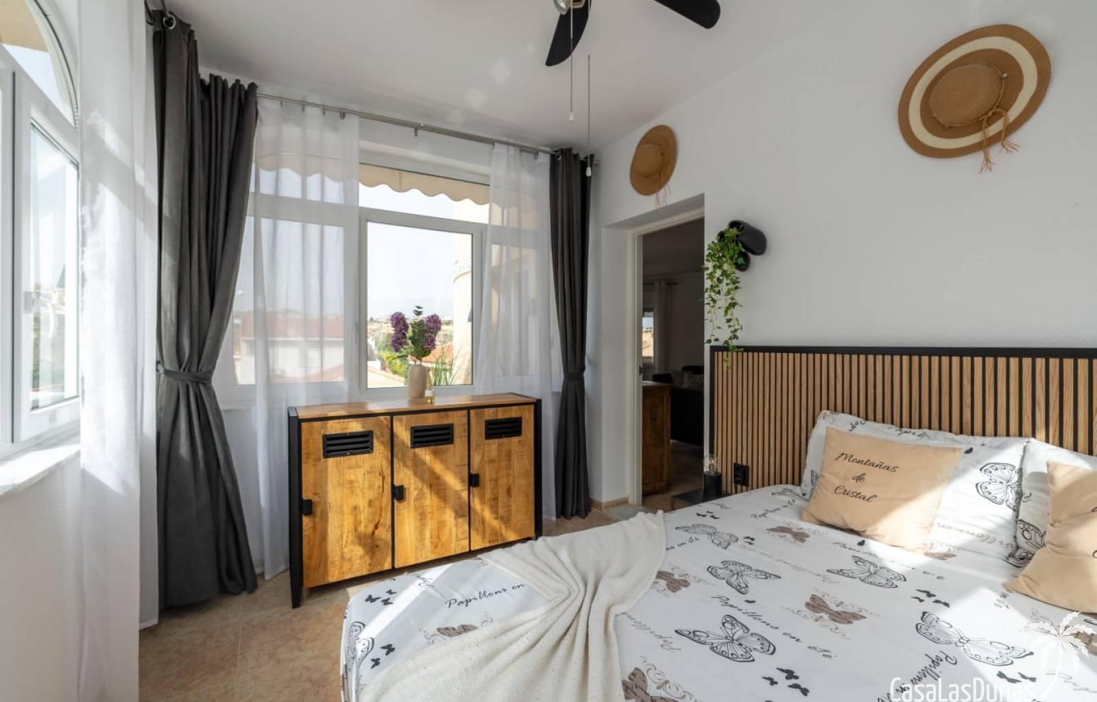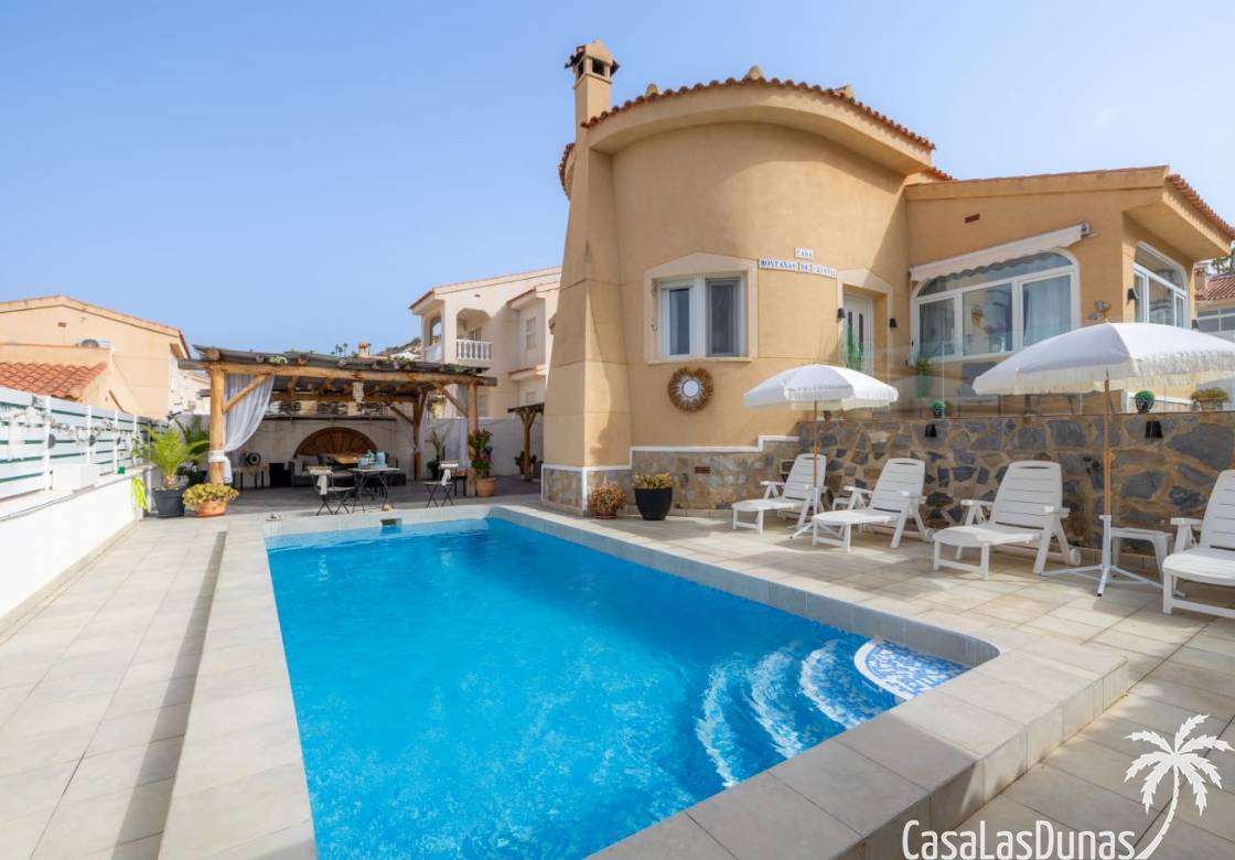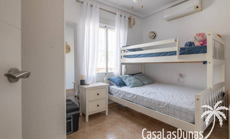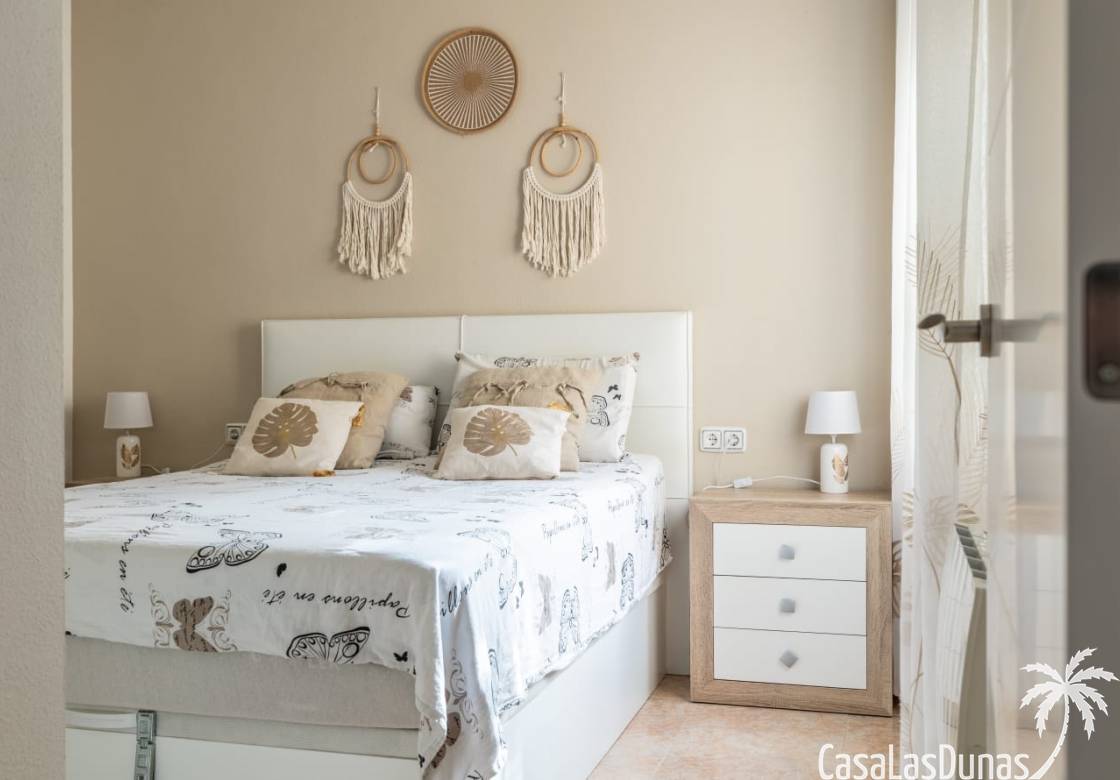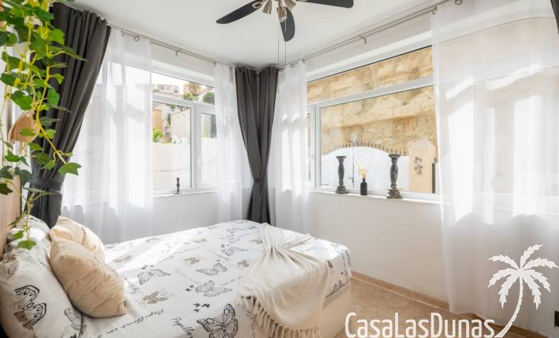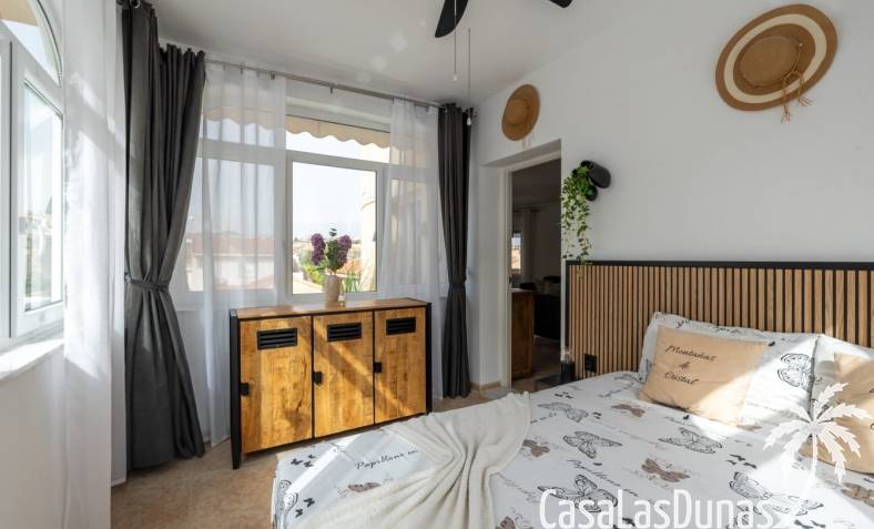 Al llegar, se accede al salón por la puerta principal. El amplio salón y la moderna cocina están totalmente equipados. Caminando hacia la parte trasera de la casa, encontrará acceso al primer dormitorio con baño en suite. Sin olvidar el jardín, que cuenta con una piscina privada y varias zonas de estar encantadoras para disfrutar del sol español.