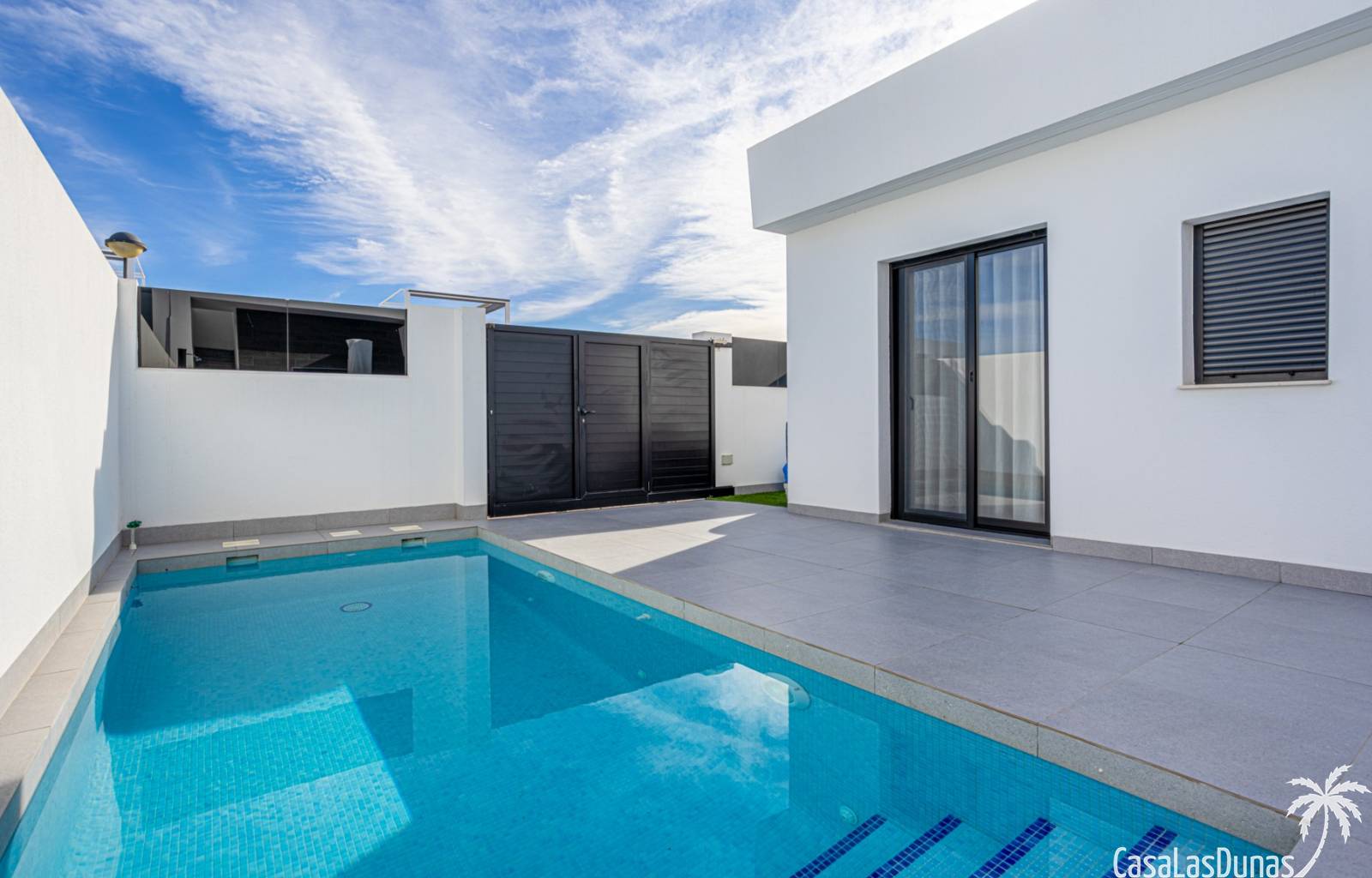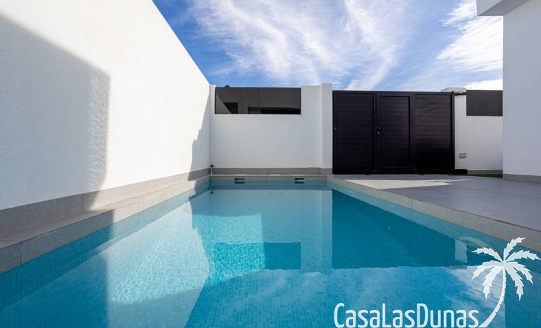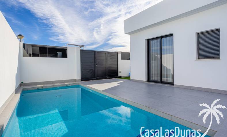 Construida sobre una parcela privada de 151,71 m², la propiedad tiene una superficie construida de 85 m², distribuidos en una sola planta. Esto la convierte en una villa práctica, accesible y de fácil mantenimiento. Gracias a su orientación este, la villa disfruta de una luz natural óptima, lo que proporciona luminosidad durante todo el día.
