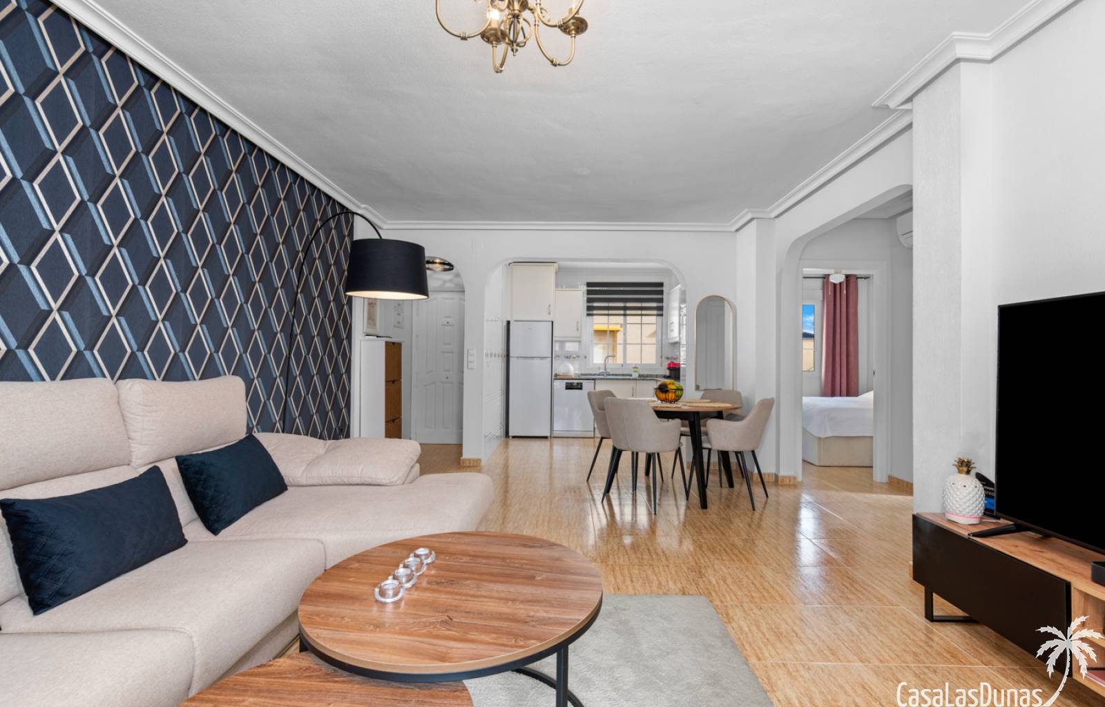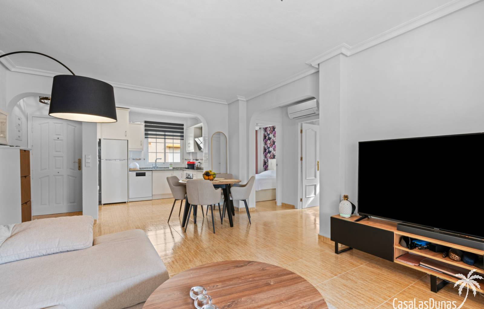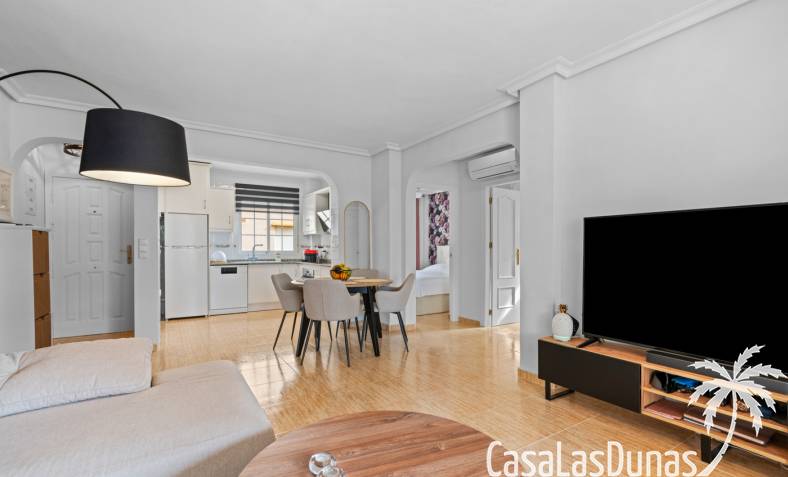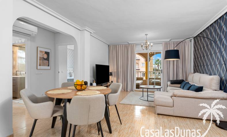 Apartamento de 2 dormitorios y 1 baño en Residencial Zodiaco Beach III, a sólo 2,5 kilómetros de la playa. La propiedad tiene una solución de planta abierta, con una cocina totalmente equipada es y una sala de estar que se abre a un balcón de 12m2 con un montón de espacio para sentarse y toldos. El apartamento cuenta con 1 baño y 2 dormitorios exteriores cuidadosamente decoradas con armarios empotrados y ventiladores de techo.