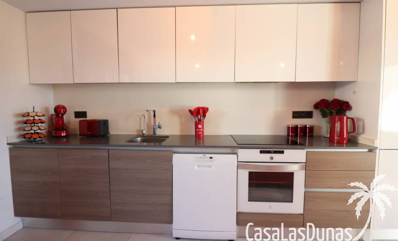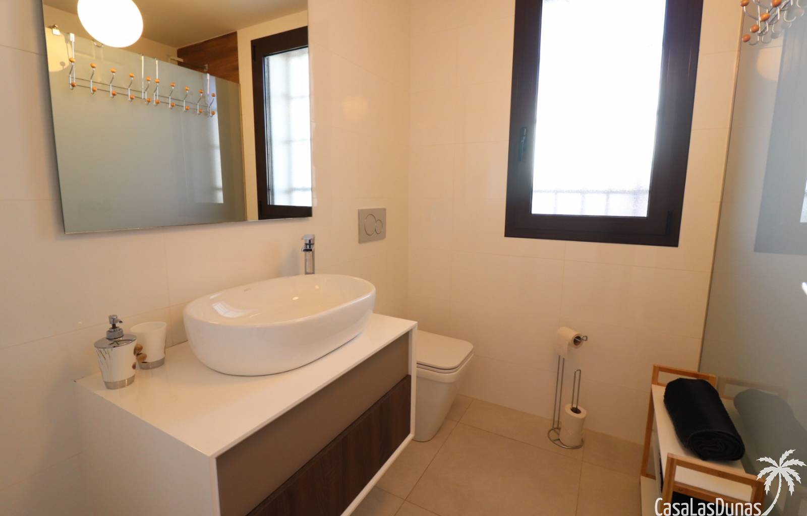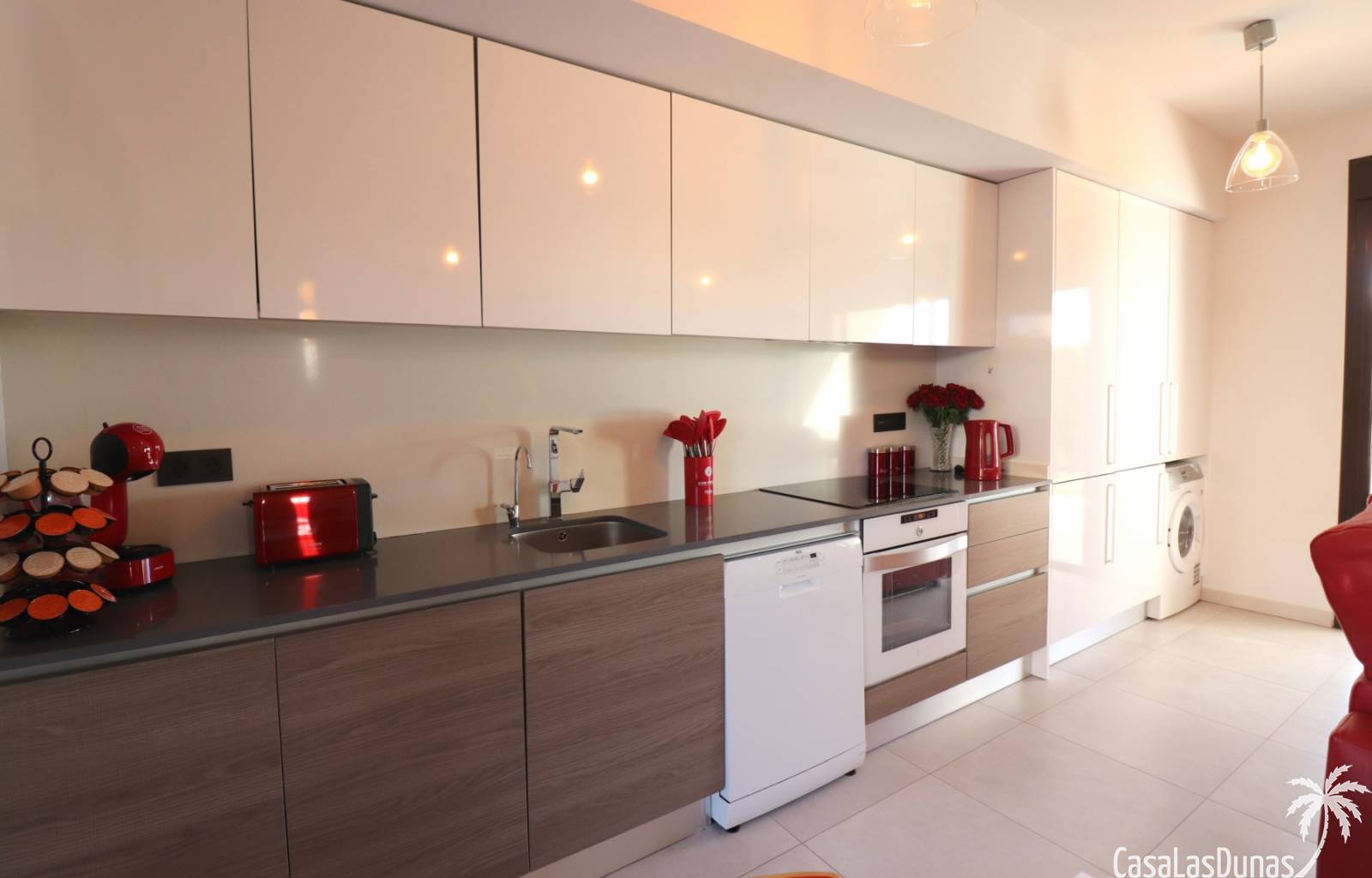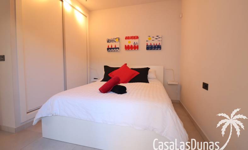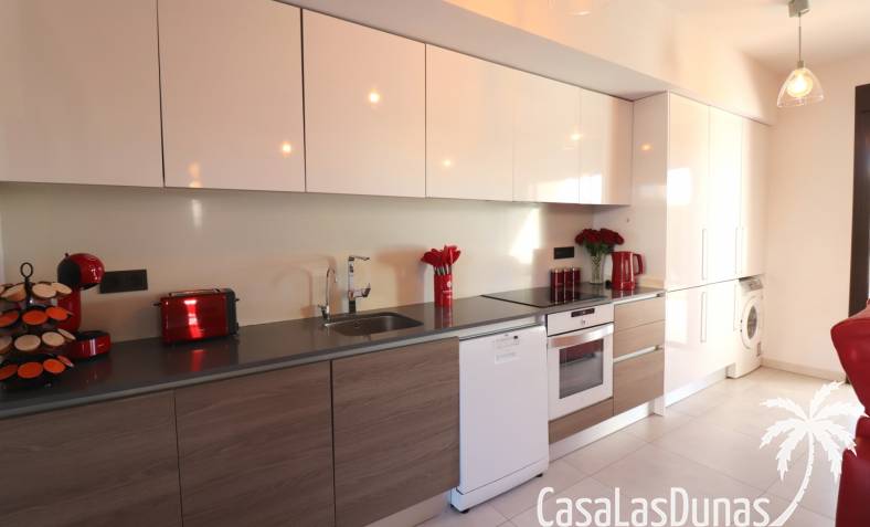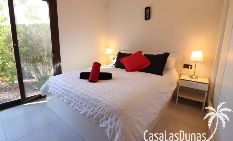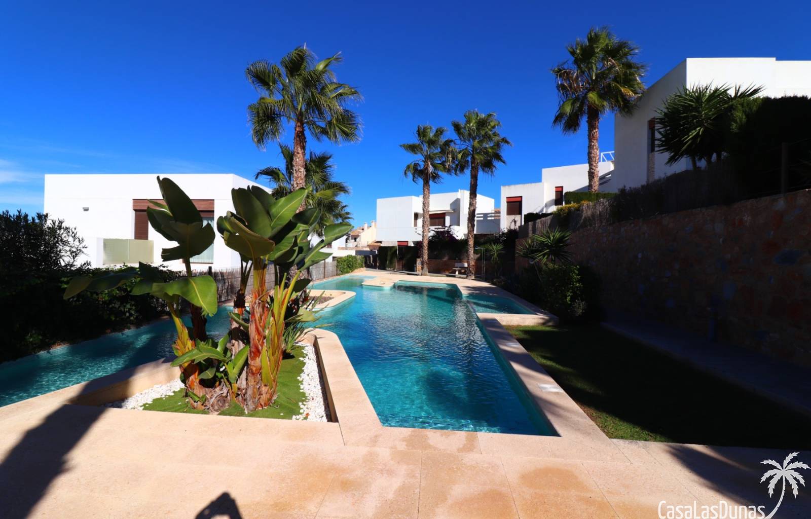 Este apartamento en planta baja de dos dormitorios con orientación oeste en La Finca 5* Hotel, Spa & Golf Resort se encuentra en una de las zonas más prestigiosas de la Costa Blanca Sur. Bares, tiendas y restaurantes están a solo 15 minutos a pie, mientras que el pueblo de Algorfa está a 5 minutos en coche. Las localidades de Almoradí y Benijófar están a unos 10 minutos, y varias playas de la costa, incluyendo Orihuela Costa, están a solo 20 minutos. La propiedad cuenta con un amplio y luminoso salón de planta abierta con puertas correderas de doble acristalamiento que dan al jardín trasero y a la terraza cubierta, además de otras puertas acristaladas que dan al jardín delantero, que también cuenta con una terraza parcialmente cubierta, perfecta para comer al aire libre o relajarse. La moderna cocina equipada es elegante y funcional, complementando el estilo contemporáneo de la vivienda. Hay dos dormitorios dobles, ambos con armarios empotrados y acceso directo al jardín, además de dos modernos cuartos de baño con ducha, uno de ellos en suite con el dormitorio principal. Los jardines están cuidadosamente diseñados con una combinación de baldosas, zonas de guijarros, césped artificial y atractivos bordes de helechos que brindan privacidad. Las características adicionales incluyen aire acondicionado, sistema de riego y acceso a una hermosa piscina comunitaria. Una casa con una ubicación privilegiada y un equipamiento impecable en el exclusivo La Finca Resort, ideal para vacaciones, inversión o residencia permanente en la Costa Blanca Sur.