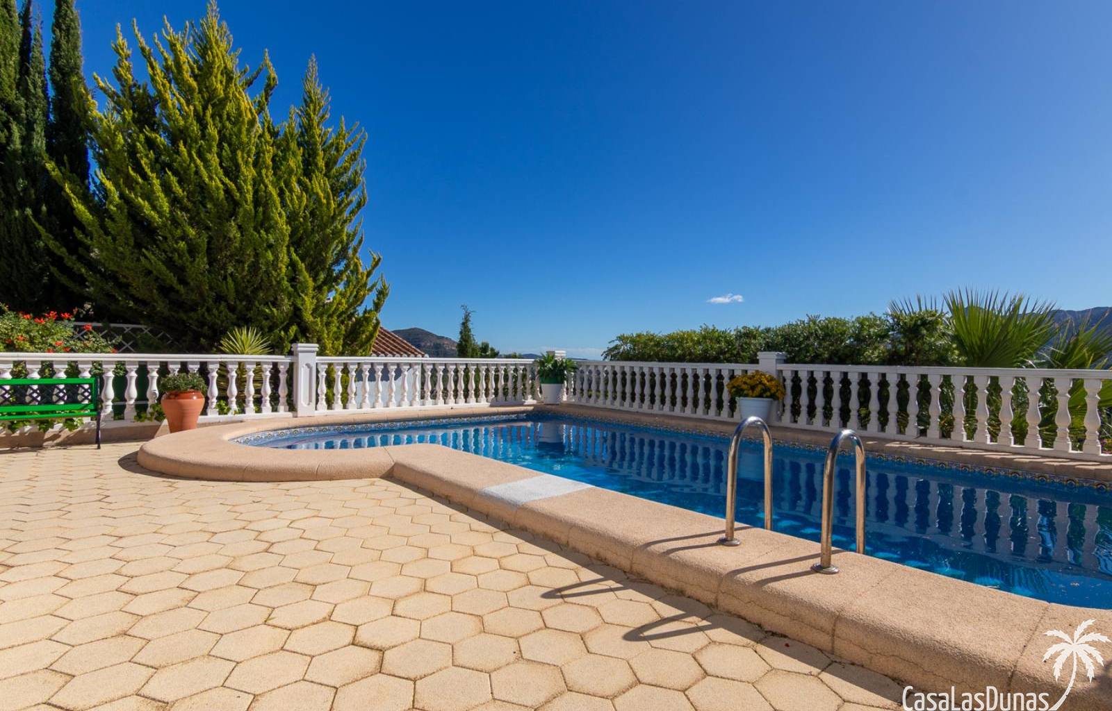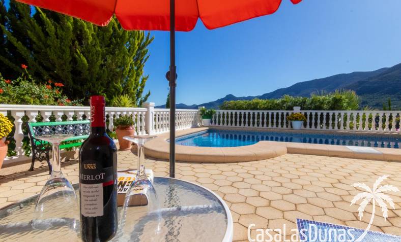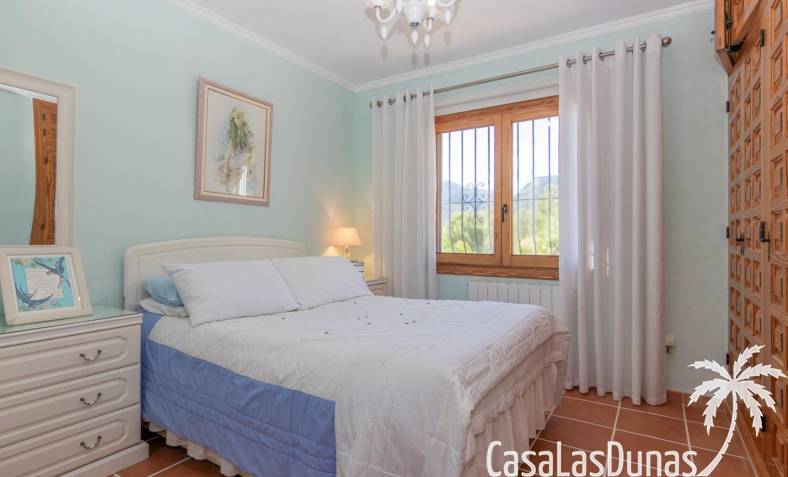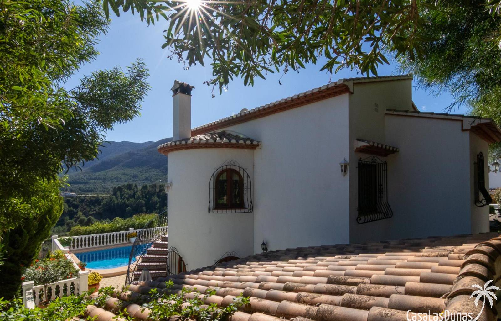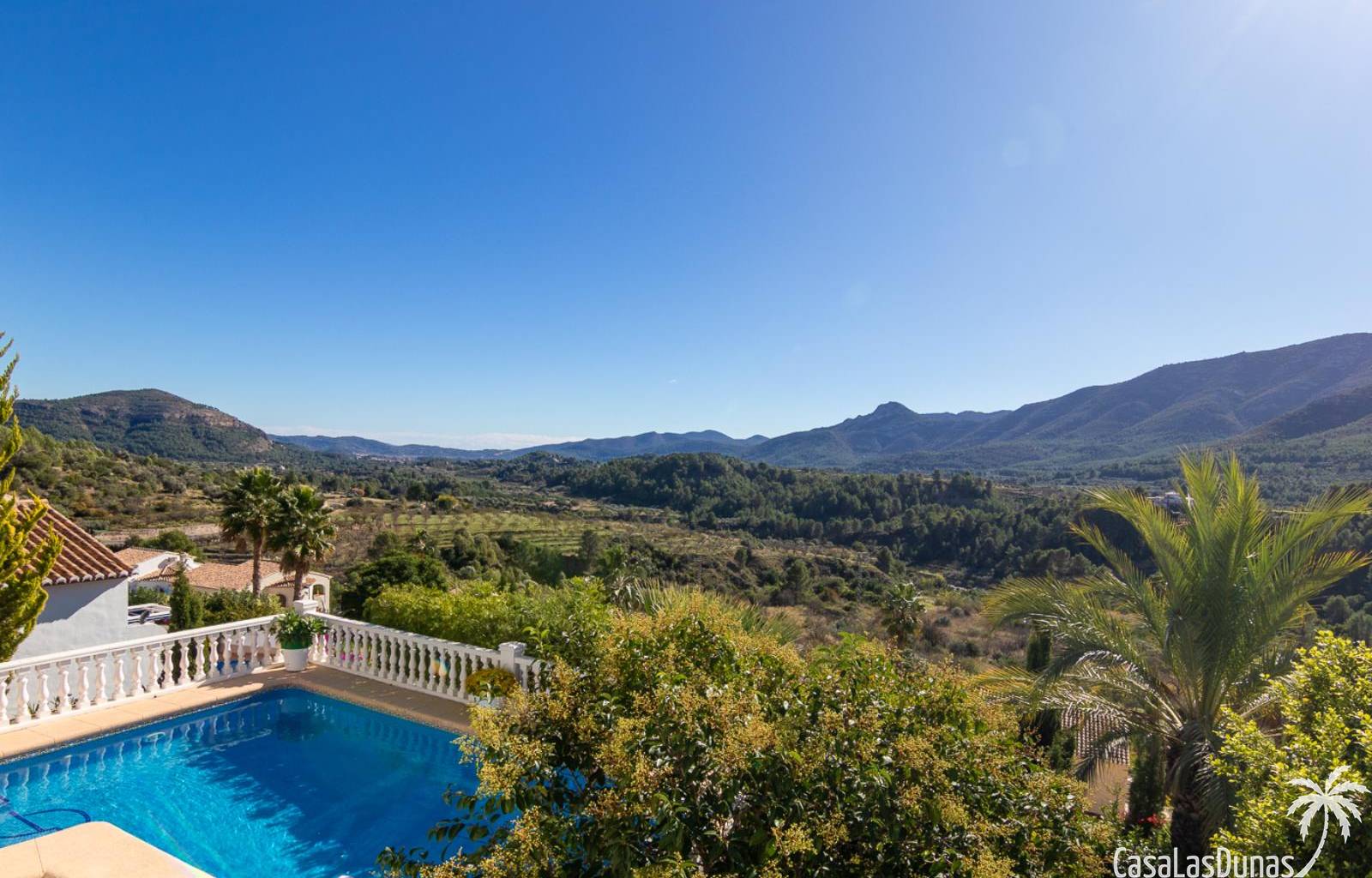 Experimente la paz y la serenidad de esta villa, enclavada entre los pueblos de Murla y Benigembla, en el valle del Jalón, en perfecta armonía con la naturaleza. Situada en una parcela de 833 m², la villa ofrece casi 200 m² de espacio habitable, con un luminoso salón, una cocina totalmente equipada, dos dormitorios y dos baños, además de una amplia terraza parcialmente cubierta con vistas panorámicas. En la planta baja se encuentra un apartamento independiente con dos dormitorios y dos baños, ideal para invitados o para alquiler vacacional. En el exterior, encontrará una piscina de 8x4 metros, una cocina de verano, un garaje, aparcamiento cubierto y un jardín bien cuidado con riego automático, perfecto para relajarse y disfrutar del estilo de vida mediterráneo.