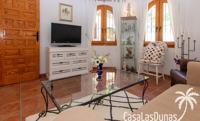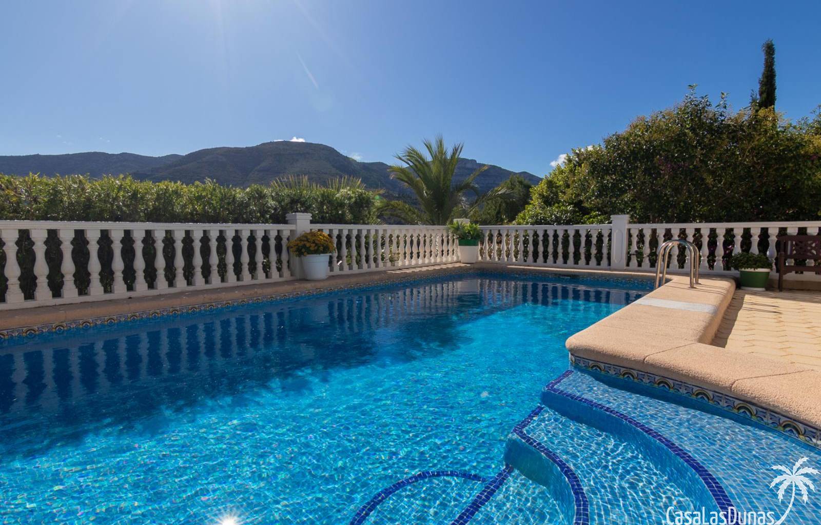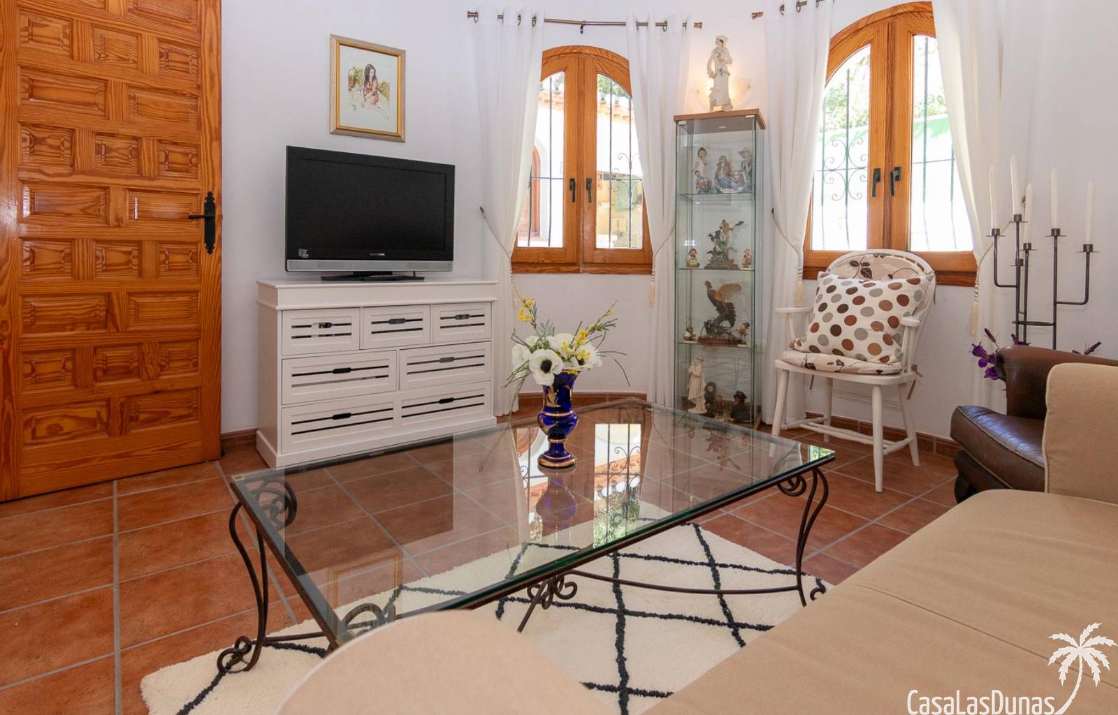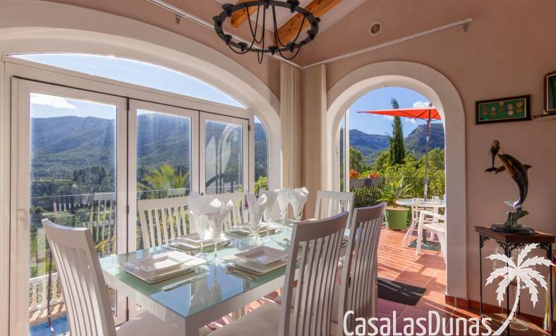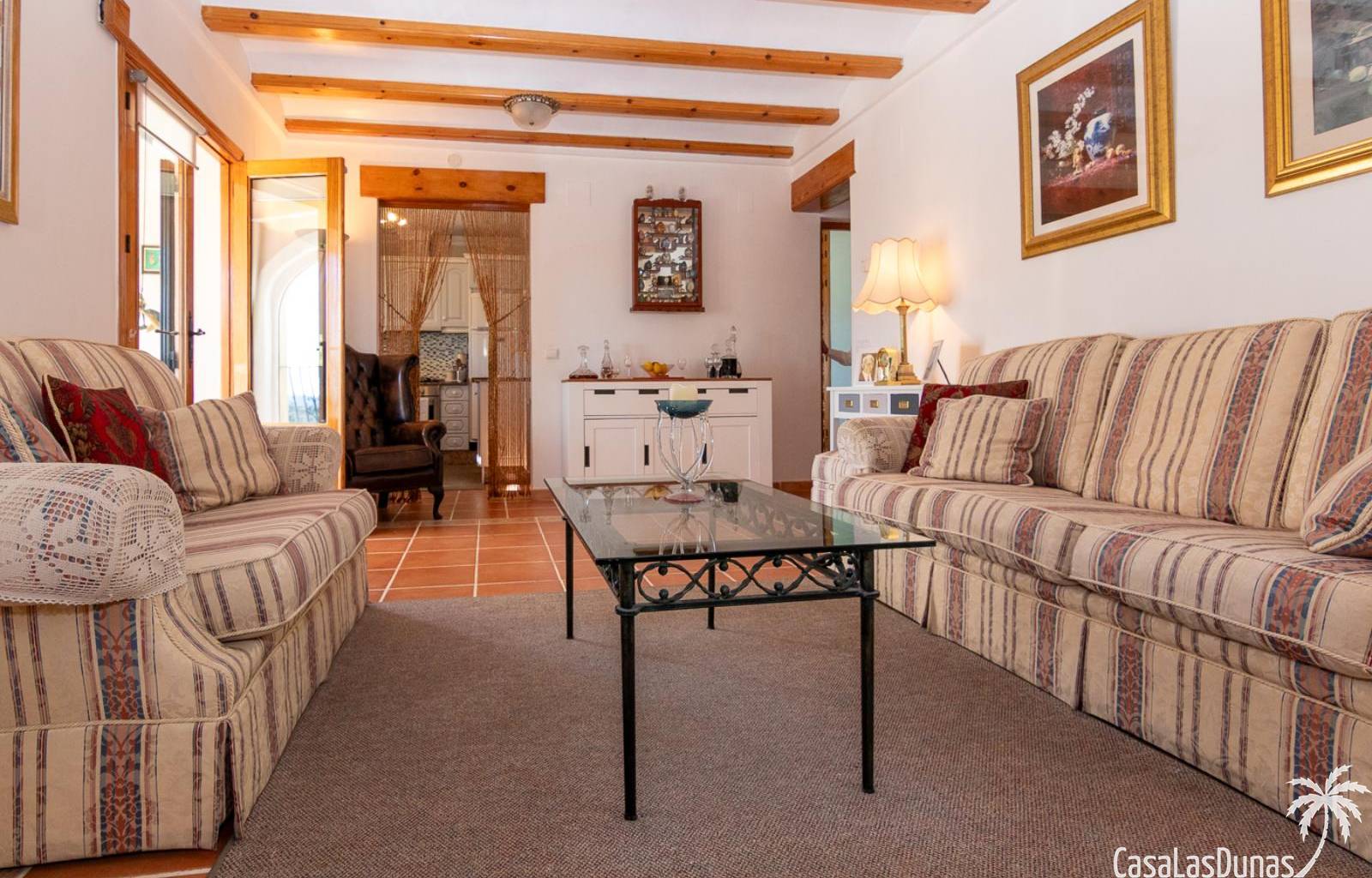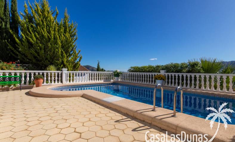 Experimente la paz y la serenidad de esta villa, enclavada entre los pueblos de Murla y Benigembla, en el valle del Jalón, en perfecta armonía con la naturaleza. Situada en una parcela de 833 m², la villa ofrece casi 200 m² de espacio habitable, con un luminoso salón, una cocina totalmente equipada, dos dormitorios y dos baños, además de una amplia terraza parcialmente cubierta con vistas panorámicas. En la planta baja se encuentra un apartamento independiente con dos dormitorios y dos baños, ideal para invitados o para alquiler vacacional. En el exterior, encontrará una piscina de 8x4 metros, una cocina de verano, un garaje, aparcamiento cubierto y un jardín bien cuidado con riego automático, perfecto para relajarse y disfrutar del estilo de vida mediterráneo.