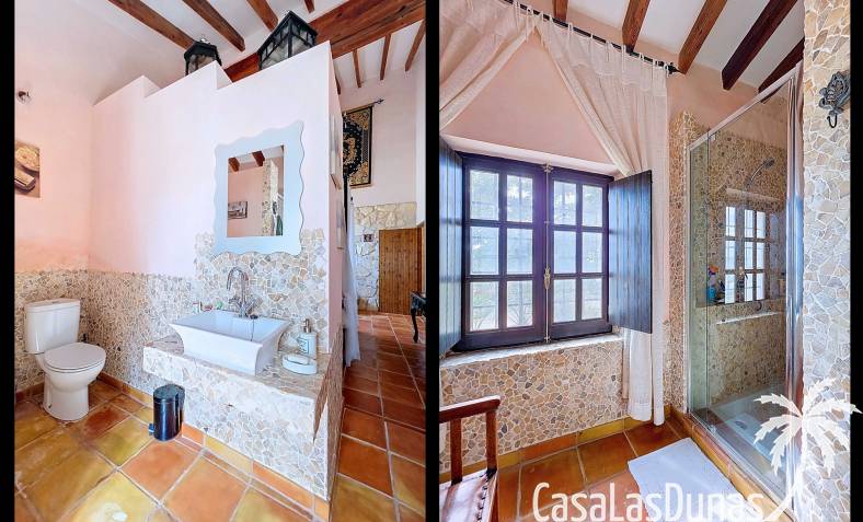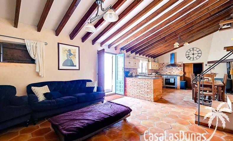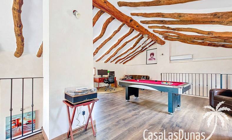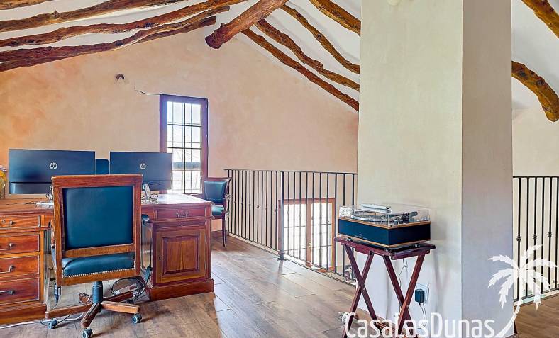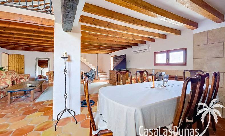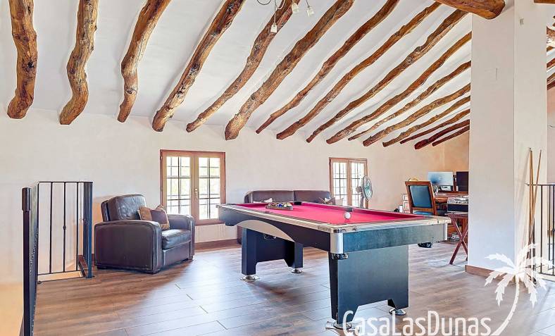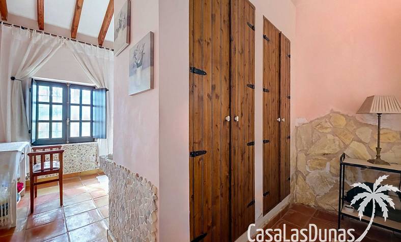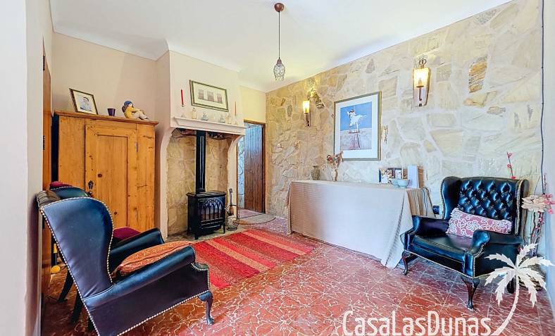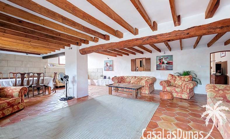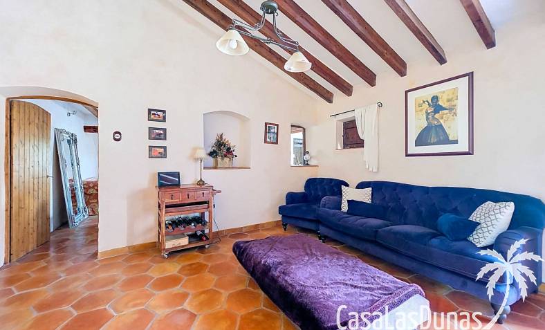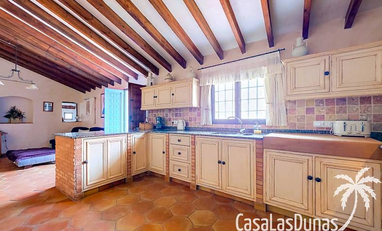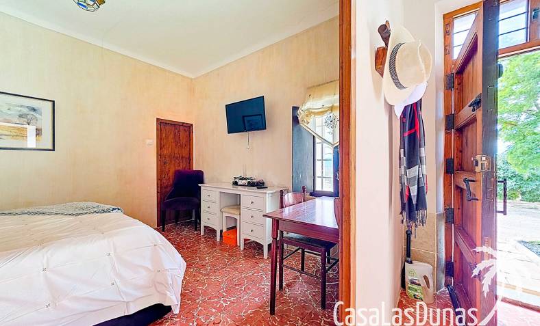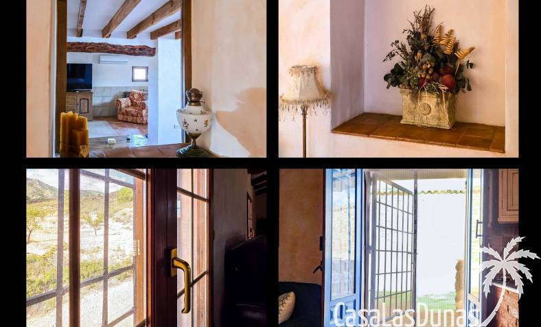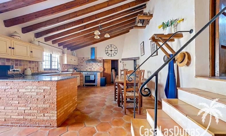 Amplia casa de campo, restaurada y modernizada conservando su carácter auténtico A los pies de la Sierra del Carche, rodeada de viñedos y campos de almendros y olivos, se encuentra esta excepcional y amplia casa de campo. Antiguamente una bodega con establos, ha sido restaurada con esmero por la familia de los actuales propietarios, utilizando materiales naturales. Se han conservado los suelos, puertas y detalles originales antiguos. Se han reutilizado baldosas de terracota y se han restaurado, tratado y nutrido con aceites naturales casi 150 vigas de madera. Toda la restauración se llevó a cabo bajo un principio: mantener la esencia de la casa y, al mismo tiempo, hacerla habitable y práctica. La distribución fue diseñada para que las estancias fluyan de manera natural. El resultado es una vivienda en la que cada persona dispone de su propio espacio generoso, pero que a la vez se siente auténtica, acogedora y equilibrada pese a sus amplias dimensiones. Esta vivienda está en venta en exclusiva, lo que significa que todos los documentos han sido revisados previamente y que todo está en orden o se puede regularizar. La vivienda La casa se distribuye en varios niveles. Desde la entrada se accede a un amplio pasillo con un dormitorio a cada lado. El pasillo desemboca en una gran estancia con zona de estar y chimenea. Aquí también hay un baño independiente y acceso a un dormitorio espacioso con baño en suite. El techo alto de esta habitación es un verdadero punto de atracción, y cuenta con armarios empotrados. Desde la zona de estar hay acceso tanto a una parte superior como a una inferior de la casa. En el nivel superior se encuentra una gran cocina-comedor con despensa y estufa de leña, además de acceso a la zona exterior recientemente reformada con piscina tipo plunge, perfecta para disfrutar del sol español con total privacidad. Desde la cocina —que también dispone de una zona de estar— se accede a un enorme salón que conecta con un segundo salón en un nivel superior (suelo renovado en 2025 y con techo aislado). Por supuesto, estas estancias pueden destinarse a otros usos. Desde la cocina, una escalera y un pasillo conducen a otro dormitorio con baño propio (con bañera y ducha). En la parte inferior (al nivel de la entrada) hay un salón con estufa y un horno de pan original, un dormitorio y otro baño privado. Garaje / trastero Adosado a la vivienda hay un amplio garaje o zona de almacenamiento/taller. Gracias a su entrada independiente, podría convertirse fácilmente en oficina, estudio o gimnasio. Instalaciones Toda la casa cuenta con gruesos muros tradicionales que ayudan a mantener una temperatura interior estable. Además de las estufas, hay calefacción eléctrica en los dormitorios y aire acondicionado (frío/calor). Gran parte de la vivienda tiene doble acristalamiento. Está conectada a la red de agua y electricidad. En 2025 se instalaron dos termos nuevos. Ubicación La casa se encuentra en una pequeña y tranquila pedanía entre Pinoso y Jumilla, una preciosa zona rural donde aún se respira la auténtica vida española. Tanto en Pinoso como en Jumilla encontrará todos los servicios diarios: supermercados, colegios, centro médico, instalaciones deportivas y una amplia oferta de restaurantes. Los alrededores ofrecen numerosas rutas para caminar, hacer senderismo o ciclismo, en un entorno de almendros, olivos y viñedos, bajo un agradable clima mediterráneo. Los aeropuertos de Alicante y Murcia, así como las playas, están a menos de una hora en coche. Esta espaciosa vivienda con cinco dormitorios, cuatro baños, varias zonas de estar, garaje y un fantástico espacio exterior está lista para recibir a sus nuevos propietarios, amantes de las casas con carácter y del confort moderno. ¡Contáctenos hoy para concertar una visita!