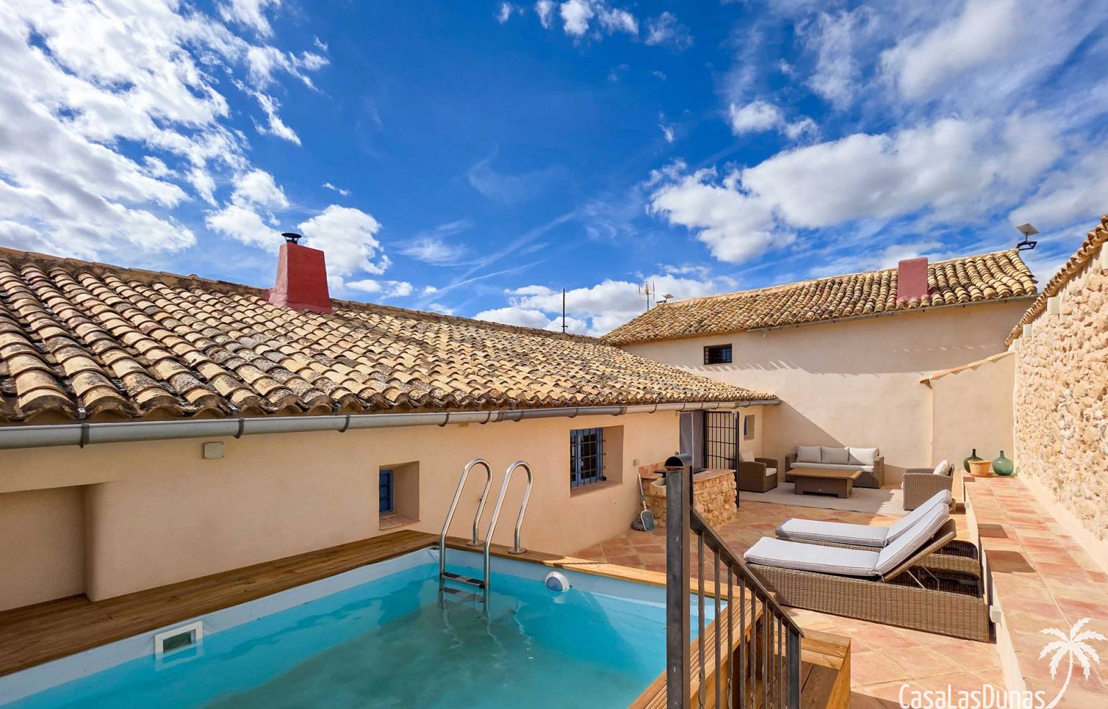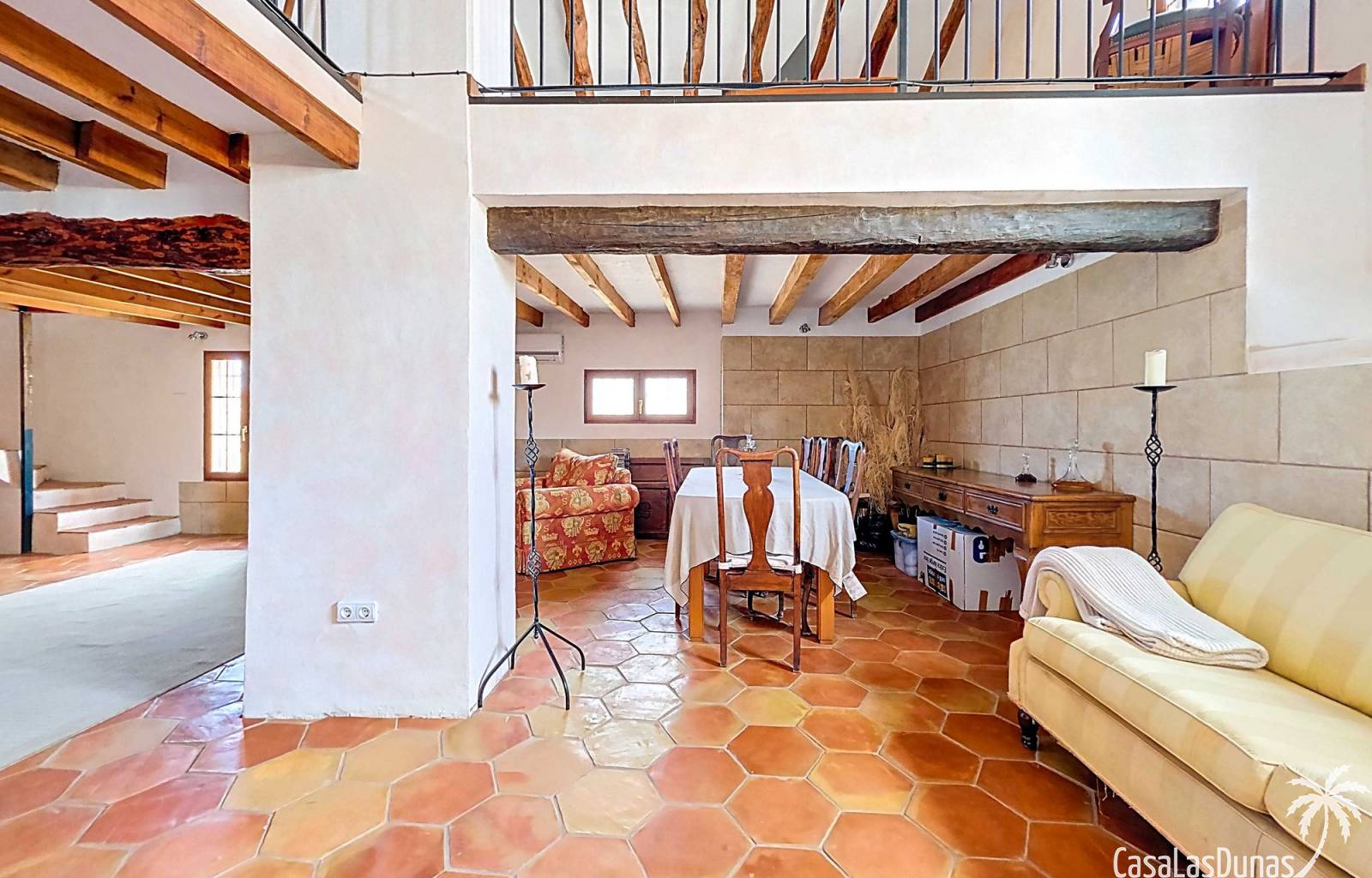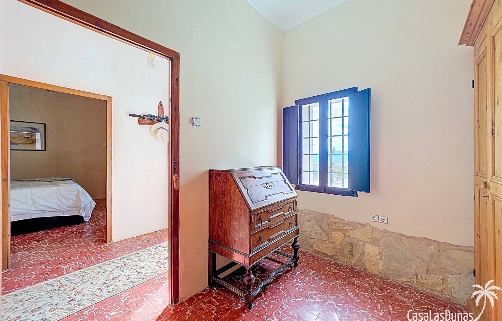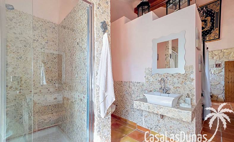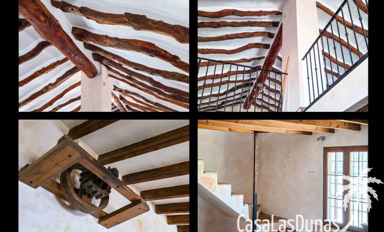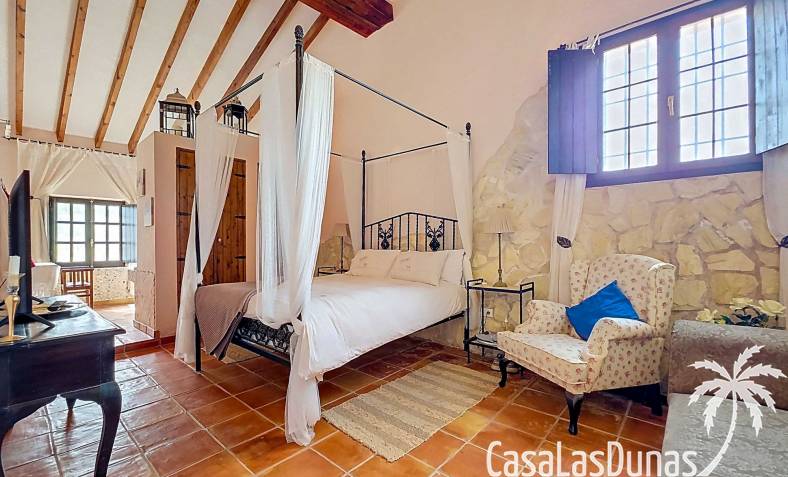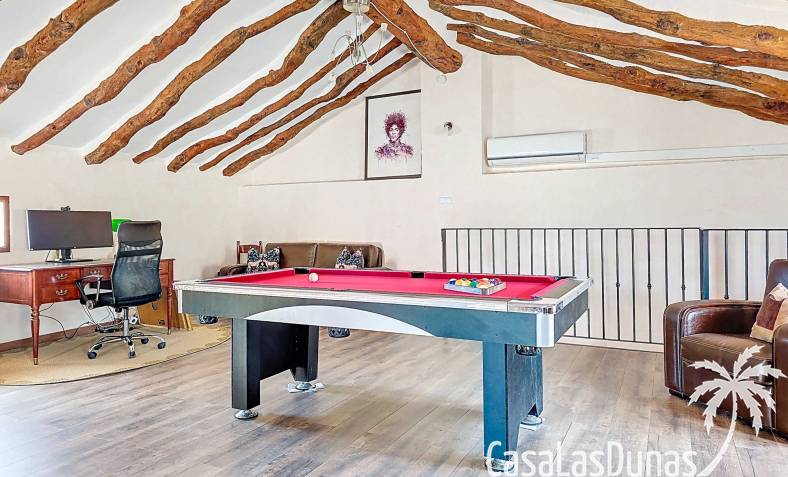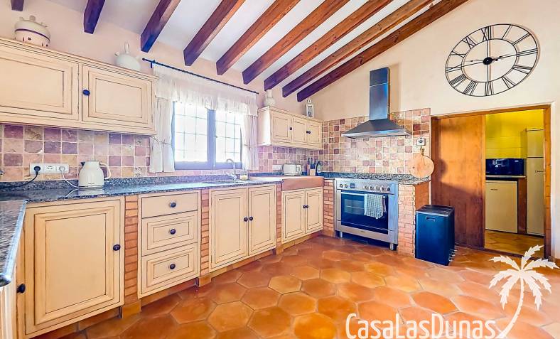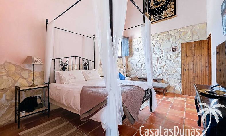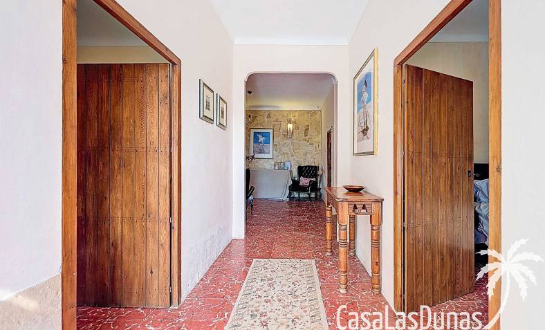 Amplia casa de campo, restaurada y modernizada conservando su carácter auténtico A los pies de la Sierra del Carche, rodeada de viñedos y campos de almendros y olivos, se encuentra esta excepcional y amplia casa de campo. Antiguamente una bodega con establos, ha sido restaurada con esmero por la familia de los actuales propietarios, utilizando materiales naturales. Se han conservado los suelos, puertas y detalles originales antiguos. Se han reutilizado baldosas de terracota y se han restaurado, tratado y nutrido con aceites naturales casi 150 vigas de madera. Toda la restauración se llevó a cabo bajo un principio: mantener la esencia de la casa y, al mismo tiempo, hacerla habitable y práctica. La distribución fue diseñada para que las estancias fluyan de manera natural. El resultado es una vivienda en la que cada persona dispone de su propio espacio generoso, pero que a la vez se siente auténtica, acogedora y equilibrada pese a sus amplias dimensiones. Esta vivienda está en venta en exclusiva, lo que significa que todos los documentos han sido revisados previamente y que todo está en orden o se puede regularizar. La vivienda La casa se distribuye en varios niveles. Desde la entrada se accede a un amplio pasillo con un dormitorio a cada lado. El pasillo desemboca en una gran estancia con zona de estar y chimenea. Aquí también hay un baño independiente y acceso a un dormitorio espacioso con baño en suite. El techo alto de esta habitación es un verdadero punto de atracción, y cuenta con armarios empotrados. Desde la zona de estar hay acceso tanto a una parte superior como a una inferior de la casa. En el nivel superior se encuentra una gran cocina-comedor con despensa y estufa de leña, además de acceso a la zona exterior recientemente reformada con piscina tipo plunge, perfecta para disfrutar del sol español con total privacidad. Desde la cocina —que también dispone de una zona de estar— se accede a un enorme salón que conecta con un segundo salón en un nivel superior (suelo renovado en 2025 y con techo aislado). Por supuesto, estas estancias pueden destinarse a otros usos. Desde la cocina, una escalera y un pasillo conducen a otro dormitorio con baño propio (con bañera y ducha). En la parte inferior (al nivel de la entrada) hay un salón con estufa y un horno de pan original, un dormitorio y otro baño privado. Garaje / trastero Adosado a la vivienda hay un amplio garaje o zona de almacenamiento/taller. Gracias a su entrada independiente, podría convertirse fácilmente en oficina, estudio o gimnasio. Instalaciones Toda la casa cuenta con gruesos muros tradicionales que ayudan a mantener una temperatura interior estable. Además de las estufas, hay calefacción eléctrica en los dormitorios y aire acondicionado (frío/calor). Gran parte de la vivienda tiene doble acristalamiento. Está conectada a la red de agua y electricidad. En 2025 se instalaron dos termos nuevos. Ubicación La casa se encuentra en una pequeña y tranquila pedanía entre Pinoso y Jumilla, una preciosa zona rural donde aún se respira la auténtica vida española. Tanto en Pinoso como en Jumilla encontrará todos los servicios diarios: supermercados, colegios, centro médico, instalaciones deportivas y una amplia oferta de restaurantes. Los alrededores ofrecen numerosas rutas para caminar, hacer senderismo o ciclismo, en un entorno de almendros, olivos y viñedos, bajo un agradable clima mediterráneo. Los aeropuertos de Alicante y Murcia, así como las playas, están a menos de una hora en coche. Esta espaciosa vivienda con cinco dormitorios, cuatro baños, varias zonas de estar, garaje y un fantástico espacio exterior está lista para recibir a sus nuevos propietarios, amantes de las casas con carácter y del confort moderno. ¡Contáctenos hoy para concertar una visita!
