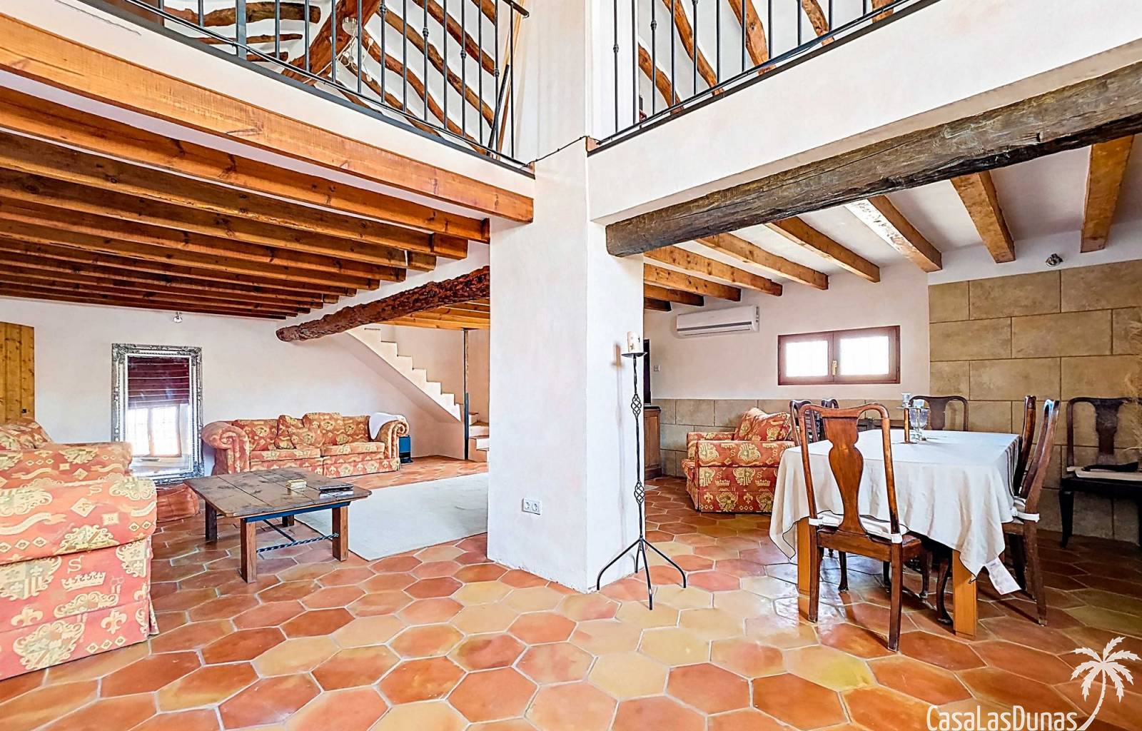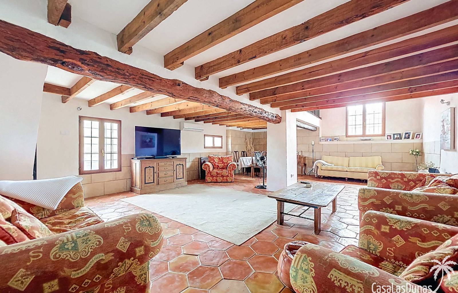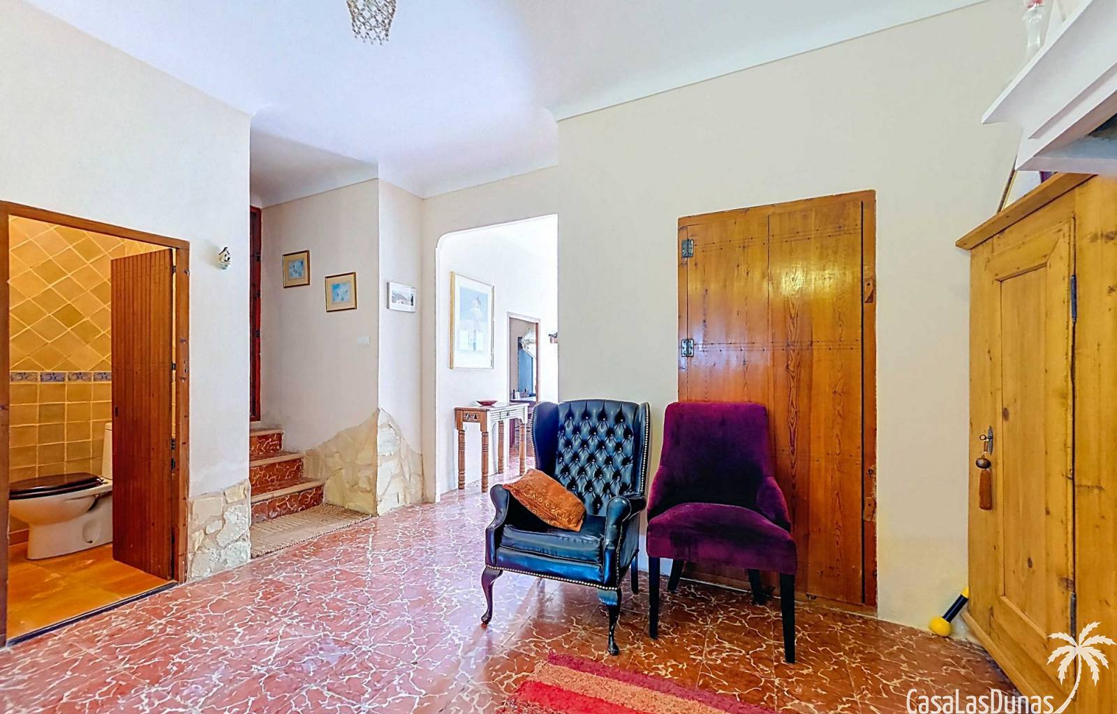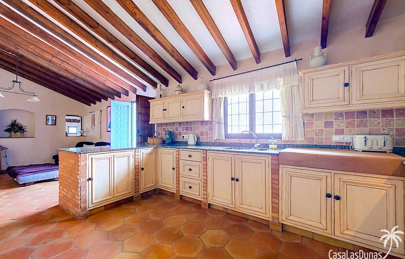 Amplia casa de campo, restaurada y modernizada conservando su carácter auténtico A los pies de la Sierra del Carche, rodeada de viñedos y campos de almendros y olivos, se encuentra esta excepcional y amplia casa de campo. Antiguamente una bodega con establos, ha sido restaurada con esmero por la familia de los actuales propietarios, utilizando materiales naturales. Se han conservado los suelos, puertas y detalles originales antiguos. Se han reutilizado baldosas de terracota y se han restaurado, tratado y nutrido con aceites naturales casi 150 vigas de madera. Toda la restauración se llevó a cabo bajo un principio: mantener la esencia de la casa y, al mismo tiempo, hacerla habitable y práctica. La distribución fue diseñada para que las estancias fluyan de manera natural. El resultado es una vivienda en la que cada persona dispone de su propio espacio generoso, pero que a la vez se siente auténtica, acogedora y equilibrada pese a sus amplias dimensiones. Esta vivienda está en venta en exclusiva, lo que significa que todos los documentos han sido revisados previamente y que todo está en orden o se puede regularizar. La vivienda La casa se distribuye en varios niveles. Desde la entrada se accede a un amplio pasillo con un dormitorio a cada lado. El pasillo desemboca en una gran estancia con zona de estar y chimenea. Aquí también hay un baño independiente y acceso a un dormitorio espacioso con baño en suite. El techo alto de esta habitación es un verdadero punto de atracción, y cuenta con armarios empotrados. Desde la zona de estar hay acceso tanto a una parte superior como a una inferior de la casa. En el nivel superior se encuentra una gran cocina-comedor con despensa y estufa de leña, además de acceso a la zona exterior recientemente reformada con piscina tipo plunge, perfecta para disfrutar del sol español con total privacidad. Desde la cocina —que también dispone de una zona de estar— se accede a un enorme salón que conecta con un segundo salón en un nivel superior (suelo renovado en 2025 y con techo aislado). Por supuesto, estas estancias pueden destinarse a otros usos. Desde la cocina, una escalera y un pasillo conducen a otro dormitorio con baño propio (con bañera y ducha). En la parte inferior (al nivel de la entrada) hay un salón con estufa y un horno de pan original, un dormitorio y otro baño privado. Garaje / trastero Adosado a la vivienda hay un amplio garaje o zona de almacenamiento/taller. Gracias a su entrada independiente, podría convertirse fácilmente en oficina, estudio o gimnasio. Instalaciones Toda la casa cuenta con gruesos muros tradicionales que ayudan a mantener una temperatura interior estable. Además de las estufas, hay calefacción eléctrica en los dormitorios y aire acondicionado (frío/calor). Gran parte de la vivienda tiene doble acristalamiento. Está conectada a la red de agua y electricidad. En 2025 se instalaron dos termos nuevos. Ubicación La casa se encuentra en una pequeña y tranquila pedanía entre Pinoso y Jumilla, una preciosa zona rural donde aún se respira la auténtica vida española. Tanto en Pinoso como en Jumilla encontrará todos los servicios diarios: supermercados, colegios, centro médico, instalaciones deportivas y una amplia oferta de restaurantes. Los alrededores ofrecen numerosas rutas para caminar, hacer senderismo o ciclismo, en un entorno de almendros, olivos y viñedos, bajo un agradable clima mediterráneo. Los aeropuertos de Alicante y Murcia, así como las playas, están a menos de una hora en coche. Esta espaciosa vivienda con cinco dormitorios, cuatro baños, varias zonas de estar, garaje y un fantástico espacio exterior está lista para recibir a sus nuevos propietarios, amantes de las casas con carácter y del confort moderno. ¡Contáctenos hoy para concertar una visita!