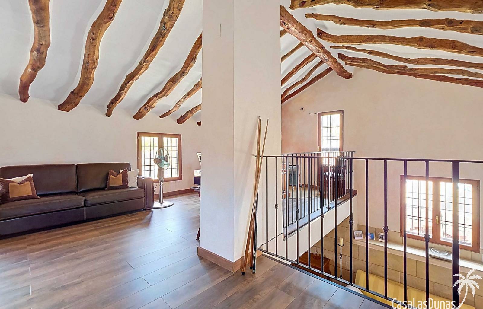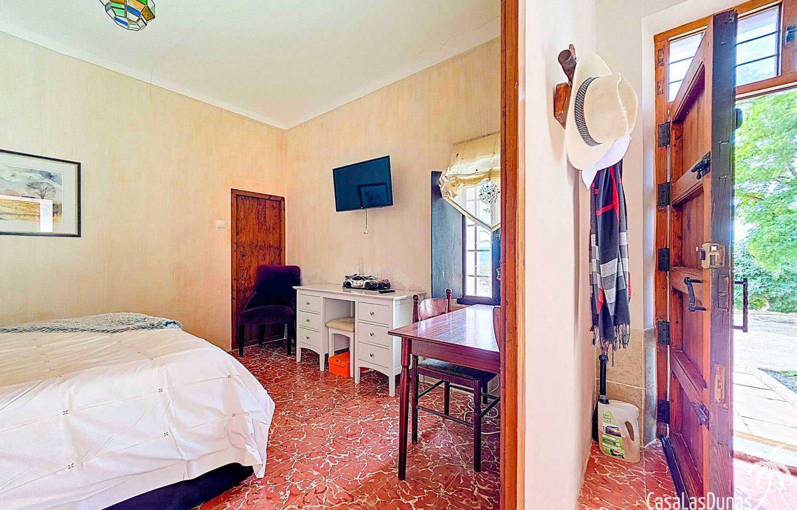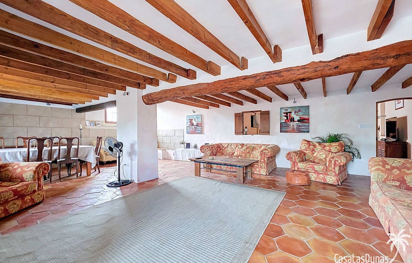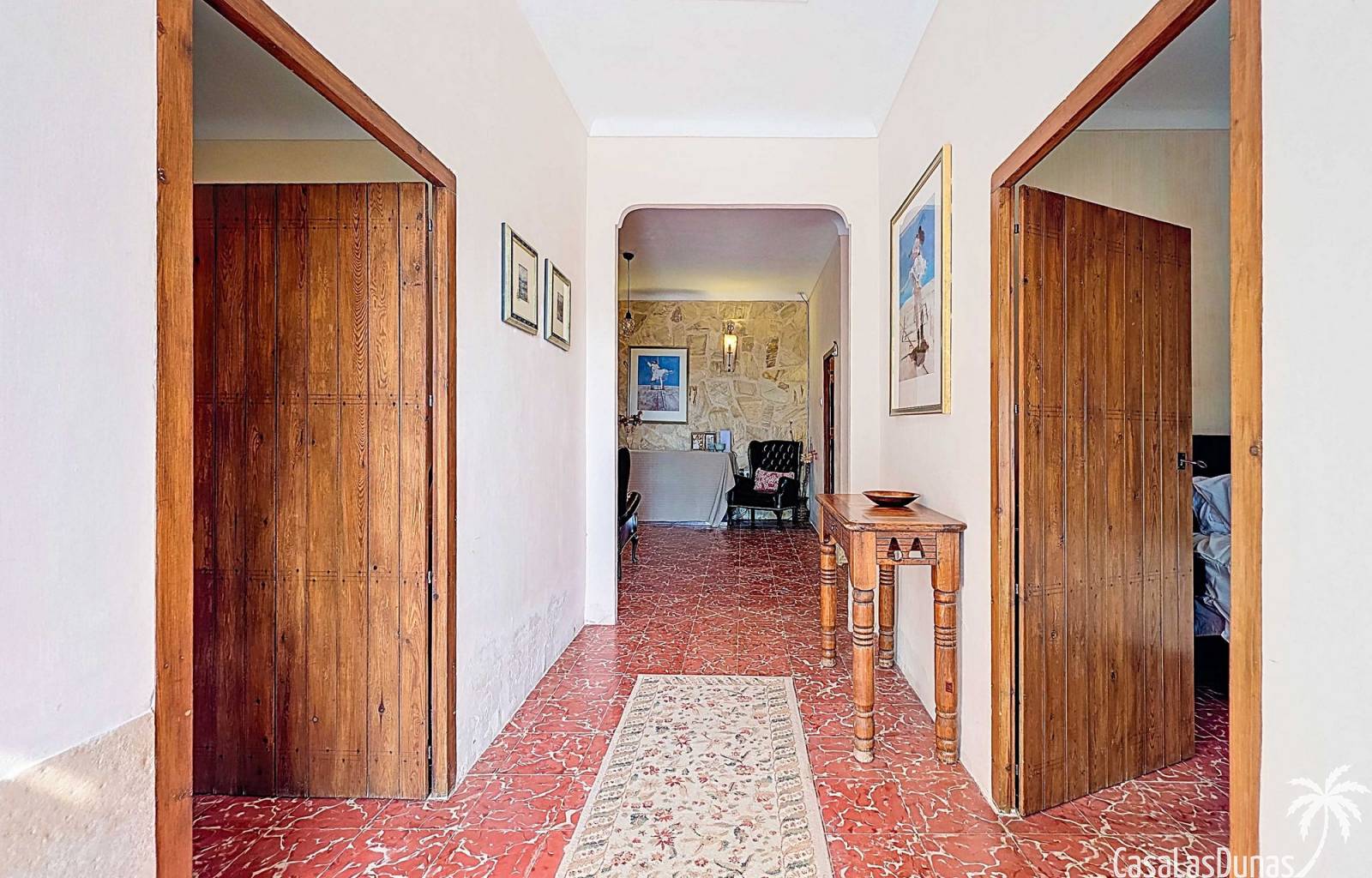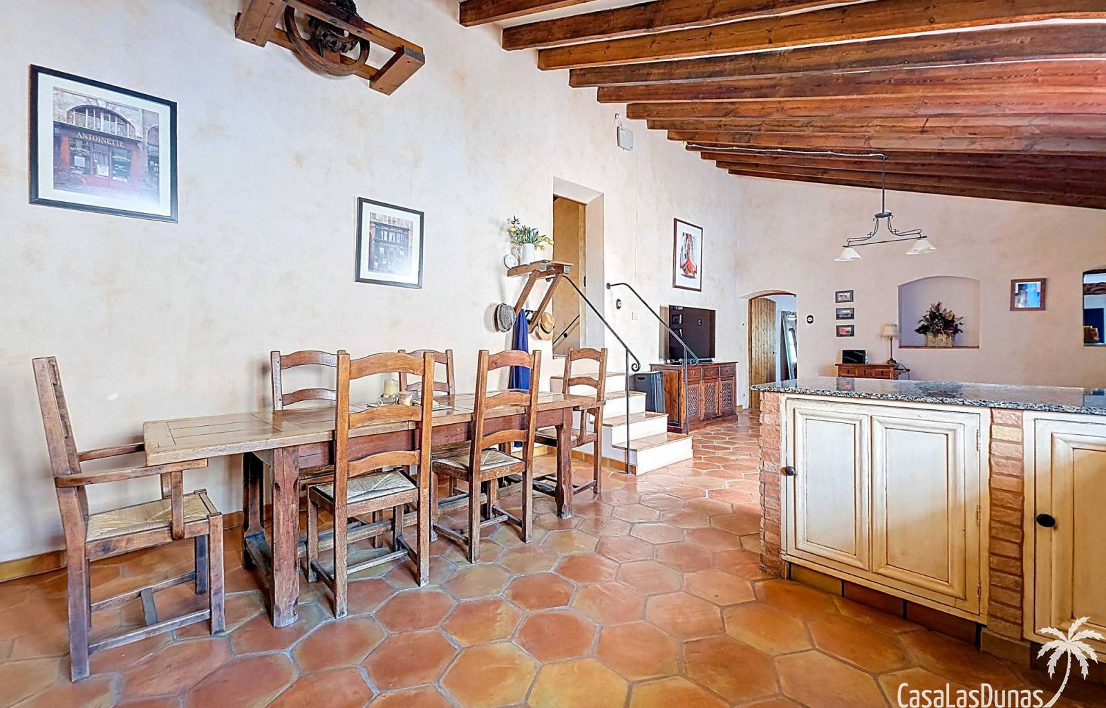 Amplia casa de campo, restaurada y modernizada conservando su carácter auténtico A los pies de la Sierra del Carche, rodeada de viñedos y campos de almendros y olivos, se encuentra esta excepcional y amplia casa de campo. Antiguamente una bodega con establos, ha sido restaurada con esmero por la familia de los actuales propietarios, utilizando materiales naturales. Se han conservado los suelos, puertas y detalles originales antiguos. Se han reutilizado baldosas de terracota y se han restaurado, tratado y nutrido con aceites naturales casi 150 vigas de madera. Toda la restauración se llevó a cabo bajo un principio: mantener la esencia de la casa y, al mismo tiempo, hacerla habitable y práctica. La distribución fue diseñada para que las estancias fluyan de manera natural. El resultado es una vivienda en la que cada persona dispone de su propio espacio generoso, pero que a la vez se siente auténtica, acogedora y equilibrada pese a sus amplias dimensiones. Esta vivienda está en venta en exclusiva, lo que significa que todos los documentos han sido revisados previamente y que todo está en orden o se puede regularizar. La vivienda La casa se distribuye en varios niveles. Desde la entrada se accede a un amplio pasillo con un dormitorio a cada lado. El pasillo desemboca en una gran estancia con zona de estar y chimenea. Aquí también hay un baño independiente y acceso a un dormitorio espacioso con baño en suite. El techo alto de esta habitación es un verdadero punto de atracción, y cuenta con armarios empotrados. Desde la zona de estar hay acceso tanto a una parte superior como a una inferior de la casa. En el nivel superior se encuentra una gran cocina-comedor con despensa y estufa de leña, además de acceso a la zona exterior recientemente reformada con piscina tipo plunge, perfecta para disfrutar del sol español con total privacidad. Desde la cocina —que también dispone de una zona de estar— se accede a un enorme salón que conecta con un segundo salón en un nivel superior (suelo renovado en 2025 y con techo aislado). Por supuesto, estas estancias pueden destinarse a otros usos. Desde la cocina, una escalera y un pasillo conducen a otro dormitorio con baño propio (con bañera y ducha). En la parte inferior (al nivel de la entrada) hay un salón con estufa y un horno de pan original, un dormitorio y otro baño privado. Garaje / trastero Adosado a la vivienda hay un amplio garaje o zona de almacenamiento/taller. Gracias a su entrada independiente, podría convertirse fácilmente en oficina, estudio o gimnasio. Instalaciones Toda la casa cuenta con gruesos muros tradicionales que ayudan a mantener una temperatura interior estable. Además de las estufas, hay calefacción eléctrica en los dormitorios y aire acondicionado (frío/calor). Gran parte de la vivienda tiene doble acristalamiento. Está conectada a la red de agua y electricidad. En 2025 se instalaron dos termos nuevos. Ubicación La casa se encuentra en una pequeña y tranquila pedanía entre Pinoso y Jumilla, una preciosa zona rural donde aún se respira la auténtica vida española. Tanto en Pinoso como en Jumilla encontrará todos los servicios diarios: supermercados, colegios, centro médico, instalaciones deportivas y una amplia oferta de restaurantes. Los alrededores ofrecen numerosas rutas para caminar, hacer senderismo o ciclismo, en un entorno de almendros, olivos y viñedos, bajo un agradable clima mediterráneo. Los aeropuertos de Alicante y Murcia, así como las playas, están a menos de una hora en coche. Esta espaciosa vivienda con cinco dormitorios, cuatro baños, varias zonas de estar, garaje y un fantástico espacio exterior está lista para recibir a sus nuevos propietarios, amantes de las casas con carácter y del confort moderno. ¡Contáctenos hoy para concertar una visita!