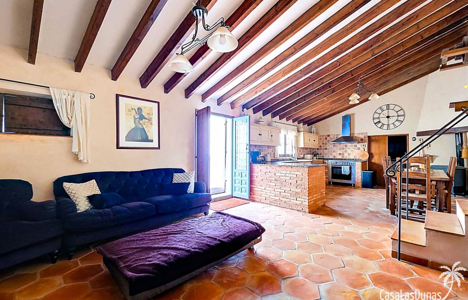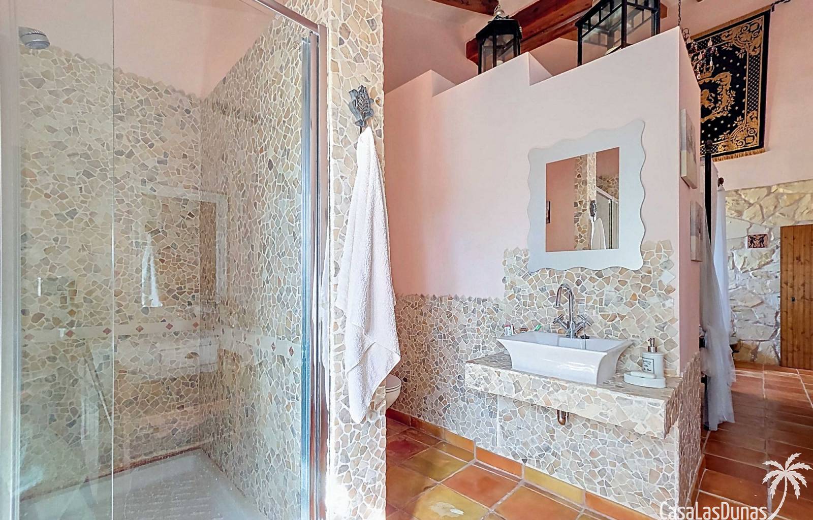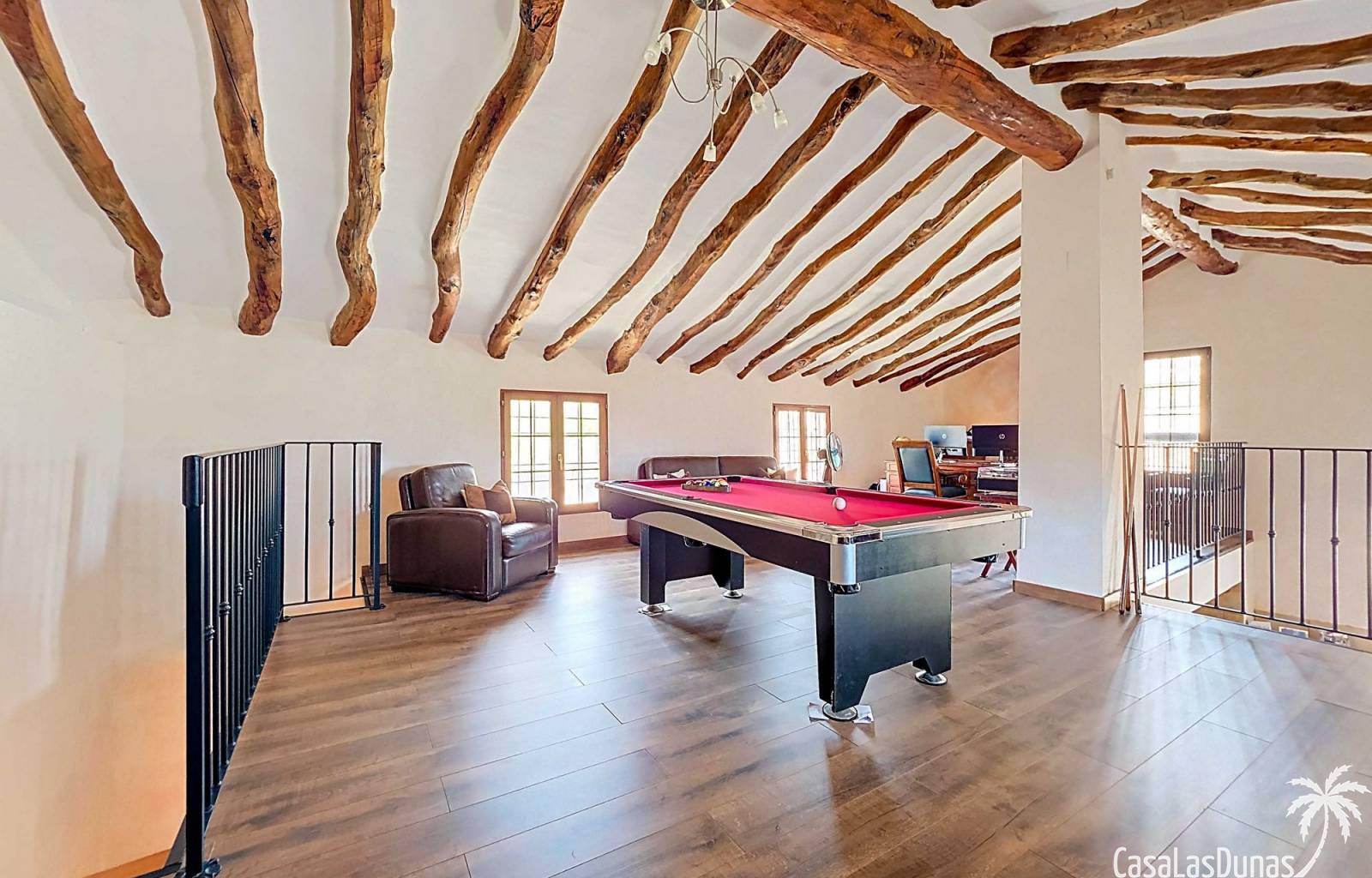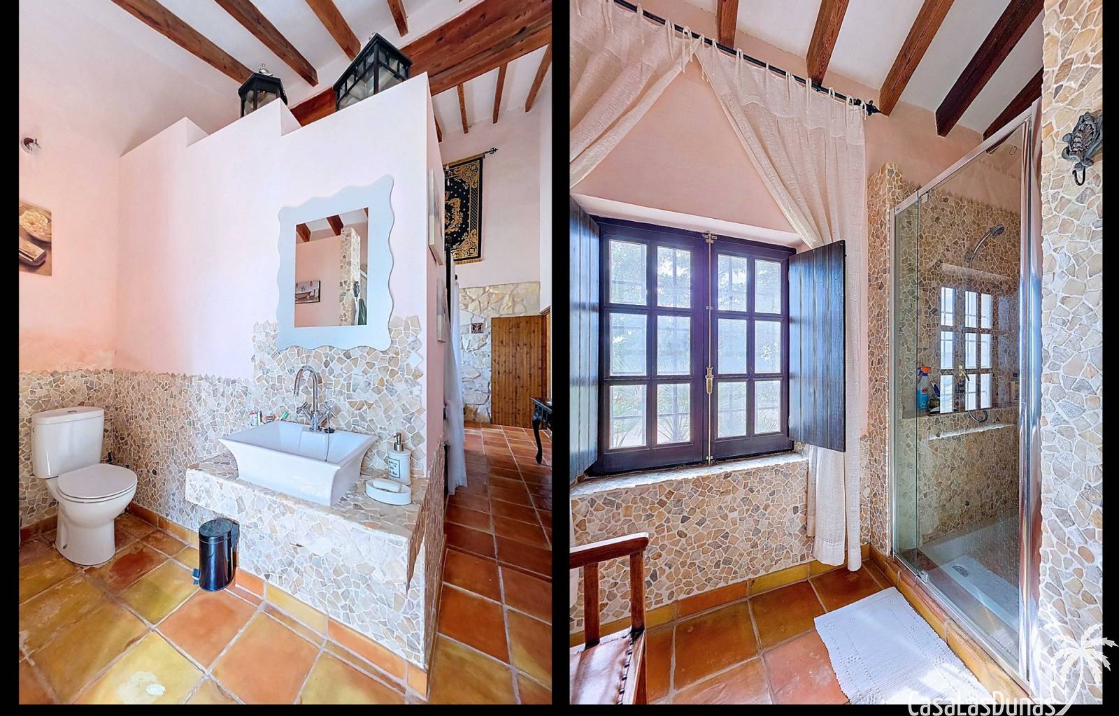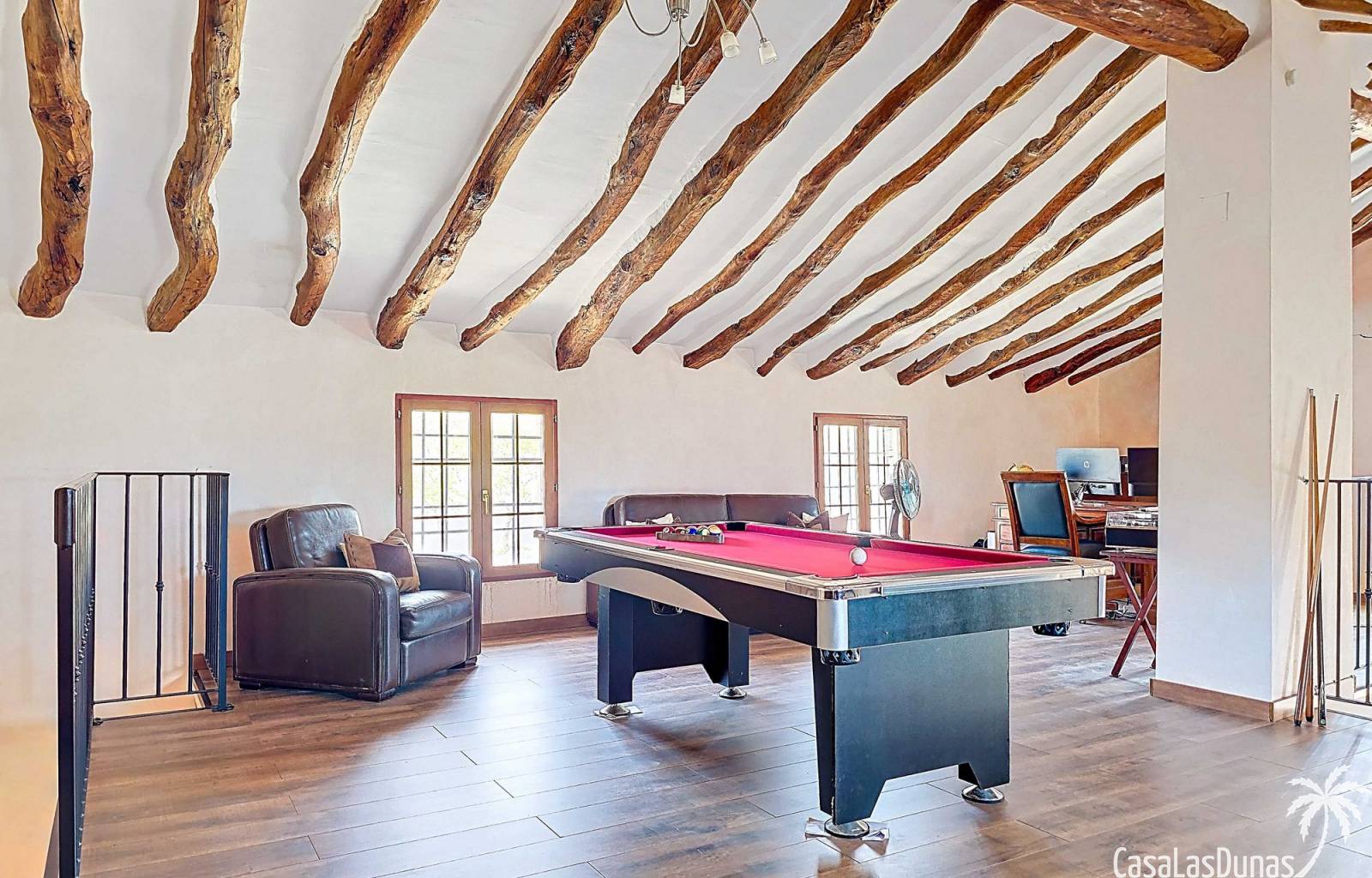 Amplia casa de campo, restaurada y modernizada conservando su carácter auténtico A los pies de la Sierra del Carche, rodeada de viñedos y campos de almendros y olivos, se encuentra esta excepcional y amplia casa de campo. Antiguamente una bodega con establos, ha sido restaurada con esmero por la familia de los actuales propietarios, utilizando materiales naturales. Se han conservado los suelos, puertas y detalles originales antiguos. Se han reutilizado baldosas de terracota y se han restaurado, tratado y nutrido con aceites naturales casi 150 vigas de madera. Toda la restauración se llevó a cabo bajo un principio: mantener la esencia de la casa y, al mismo tiempo, hacerla habitable y práctica. La distribución fue diseñada para que las estancias fluyan de manera natural. El resultado es una vivienda en la que cada persona dispone de su propio espacio generoso, pero que a la vez se siente auténtica, acogedora y equilibrada pese a sus amplias dimensiones. Esta vivienda está en venta en exclusiva, lo que significa que todos los documentos han sido revisados previamente y que todo está en orden o se puede regularizar. La vivienda La casa se distribuye en varios niveles. Desde la entrada se accede a un amplio pasillo con un dormitorio a cada lado. El pasillo desemboca en una gran estancia con zona de estar y chimenea. Aquí también hay un baño independiente y acceso a un dormitorio espacioso con baño en suite. El techo alto de esta habitación es un verdadero punto de atracción, y cuenta con armarios empotrados. Desde la zona de estar hay acceso tanto a una parte superior como a una inferior de la casa. En el nivel superior se encuentra una gran cocina-comedor con despensa y estufa de leña, además de acceso a la zona exterior recientemente reformada con piscina tipo plunge, perfecta para disfrutar del sol español con total privacidad. Desde la cocina —que también dispone de una zona de estar— se accede a un enorme salón que conecta con un segundo salón en un nivel superior (suelo renovado en 2025 y con techo aislado). Por supuesto, estas estancias pueden destinarse a otros usos. Desde la cocina, una escalera y un pasillo conducen a otro dormitorio con baño propio (con bañera y ducha). En la parte inferior (al nivel de la entrada) hay un salón con estufa y un horno de pan original, un dormitorio y otro baño privado. Garaje / trastero Adosado a la vivienda hay un amplio garaje o zona de almacenamiento/taller. Gracias a su entrada independiente, podría convertirse fácilmente en oficina, estudio o gimnasio. Instalaciones Toda la casa cuenta con gruesos muros tradicionales que ayudan a mantener una temperatura interior estable. Además de las estufas, hay calefacción eléctrica en los dormitorios y aire acondicionado (frío/calor). Gran parte de la vivienda tiene doble acristalamiento. Está conectada a la red de agua y electricidad. En 2025 se instalaron dos termos nuevos. Ubicación La casa se encuentra en una pequeña y tranquila pedanía entre Pinoso y Jumilla, una preciosa zona rural donde aún se respira la auténtica vida española. Tanto en Pinoso como en Jumilla encontrará todos los servicios diarios: supermercados, colegios, centro médico, instalaciones deportivas y una amplia oferta de restaurantes. Los alrededores ofrecen numerosas rutas para caminar, hacer senderismo o ciclismo, en un entorno de almendros, olivos y viñedos, bajo un agradable clima mediterráneo. Los aeropuertos de Alicante y Murcia, así como las playas, están a menos de una hora en coche. Esta espaciosa vivienda con cinco dormitorios, cuatro baños, varias zonas de estar, garaje y un fantástico espacio exterior está lista para recibir a sus nuevos propietarios, amantes de las casas con carácter y del confort moderno. ¡Contáctenos hoy para concertar una visita!