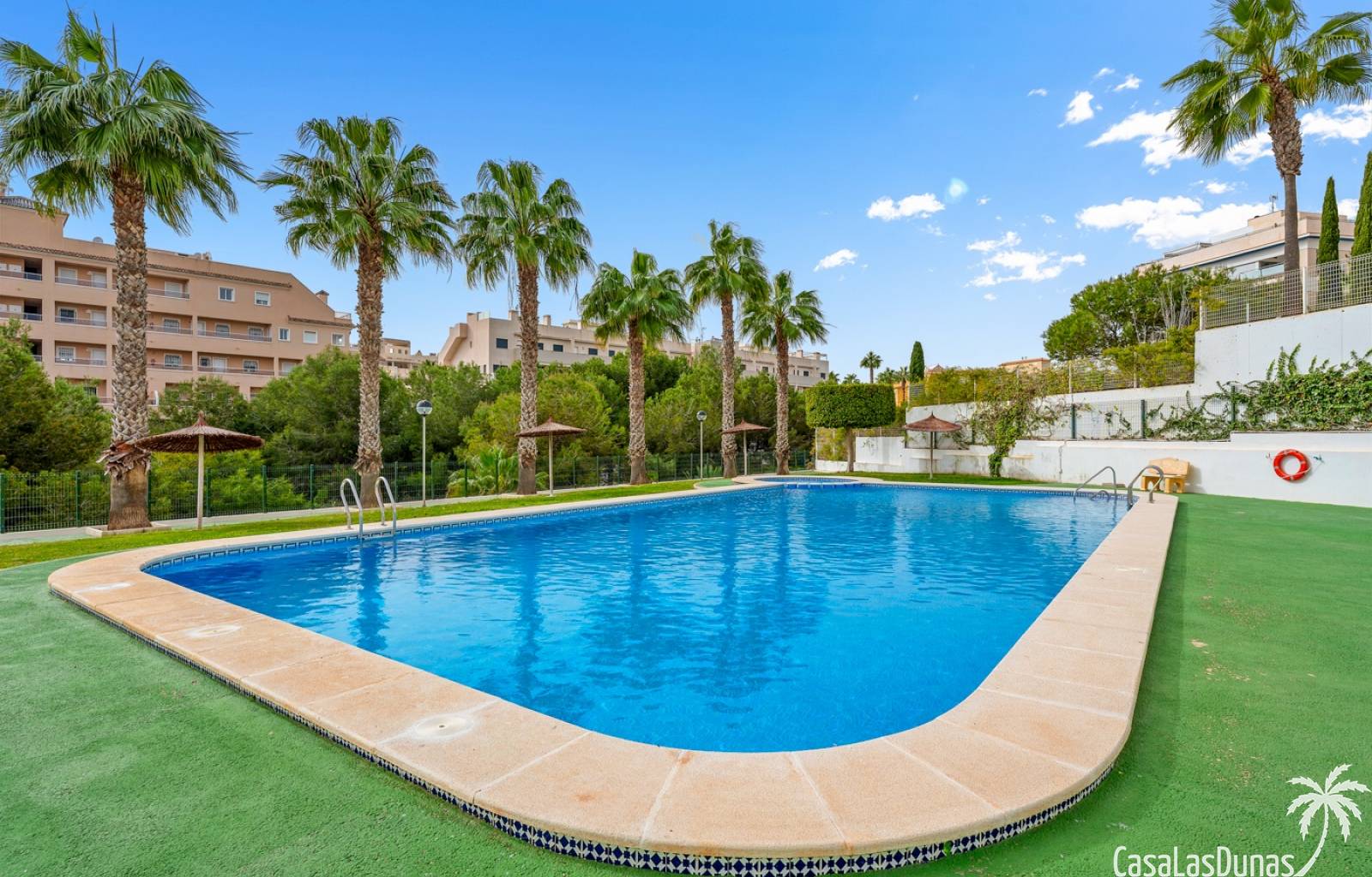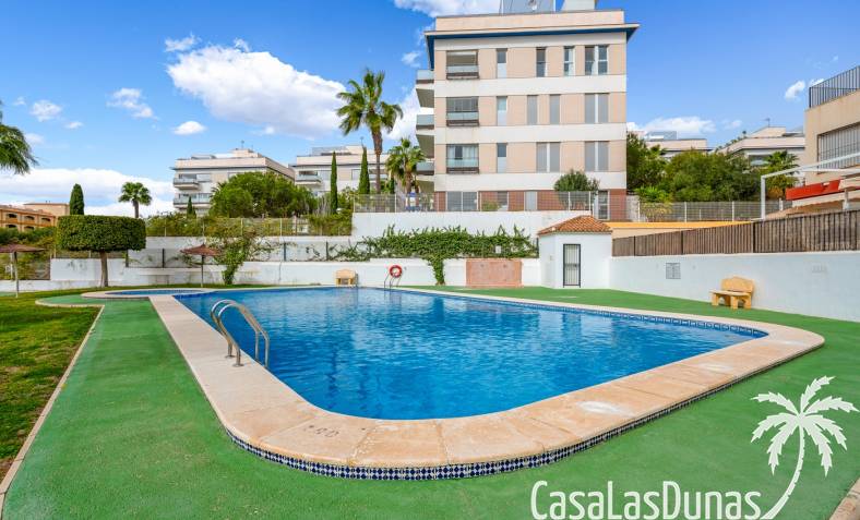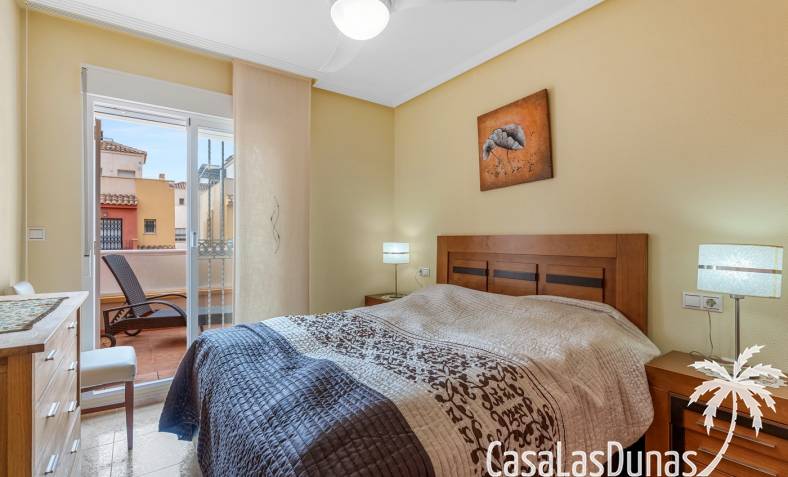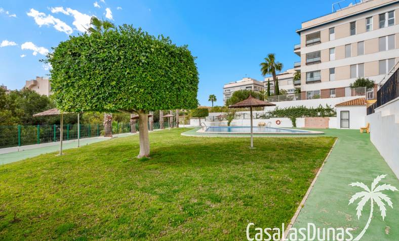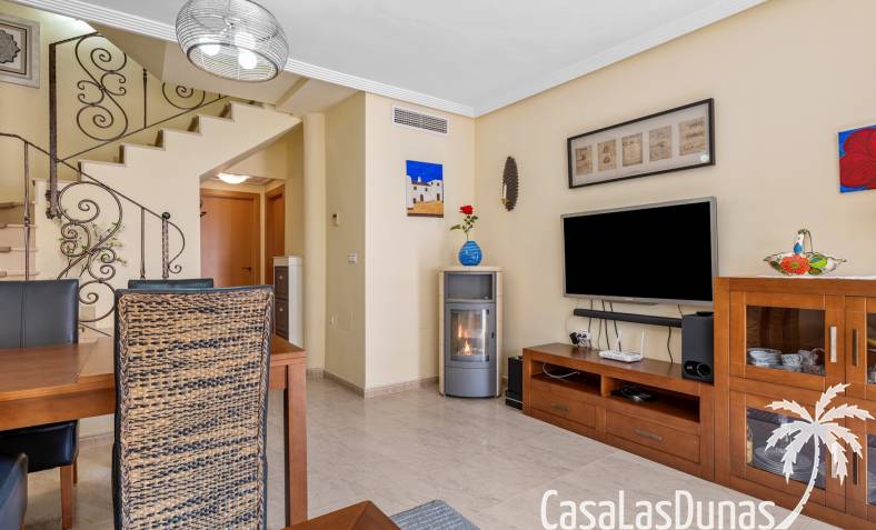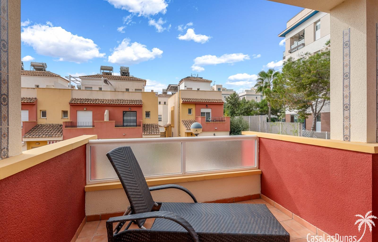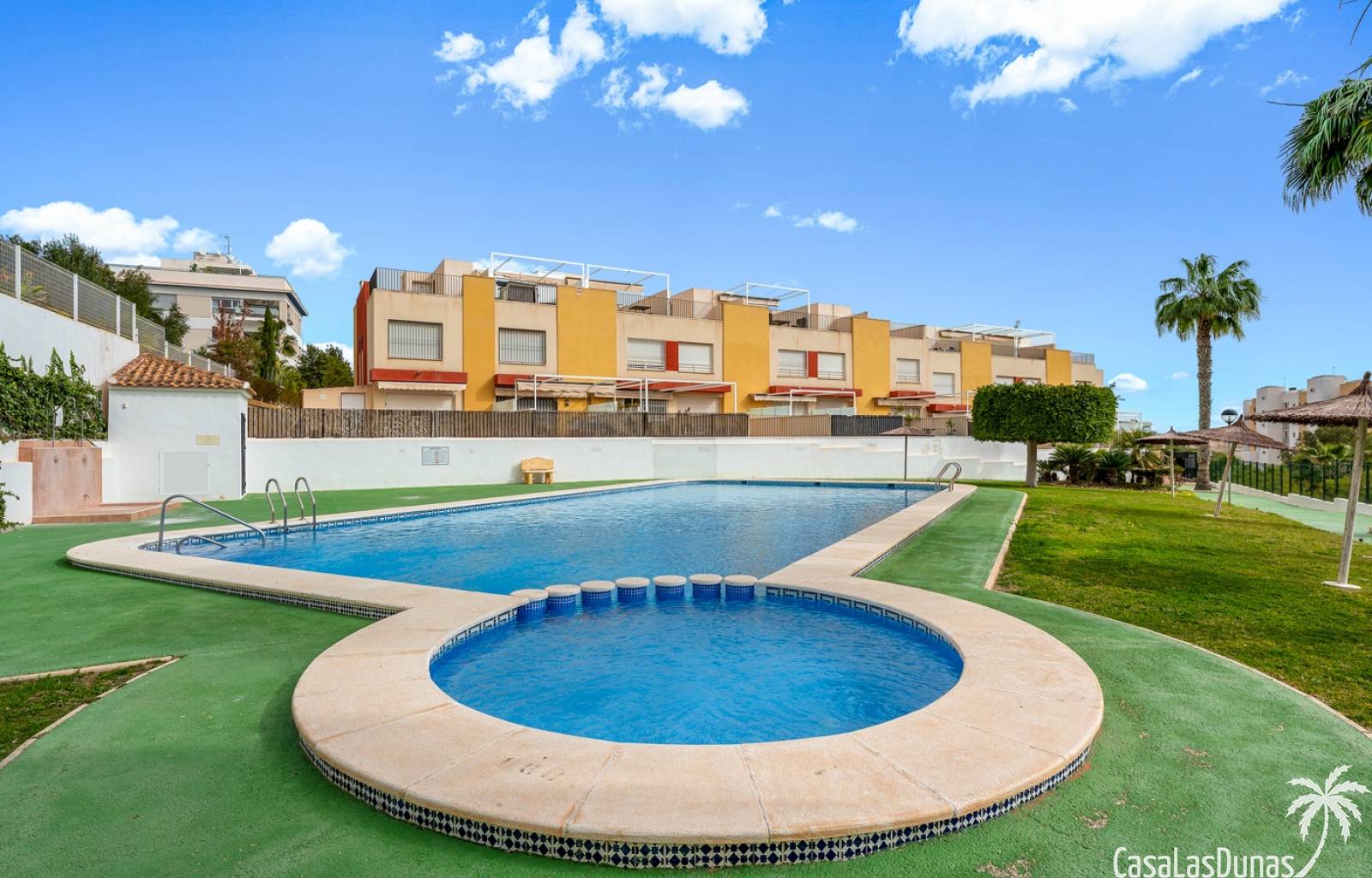 La propiedad forma parte de una urbanización cerrada con acceso a una hermosa piscina comunitaria, ideal para disfrutar del cálido clima mediterráneo.